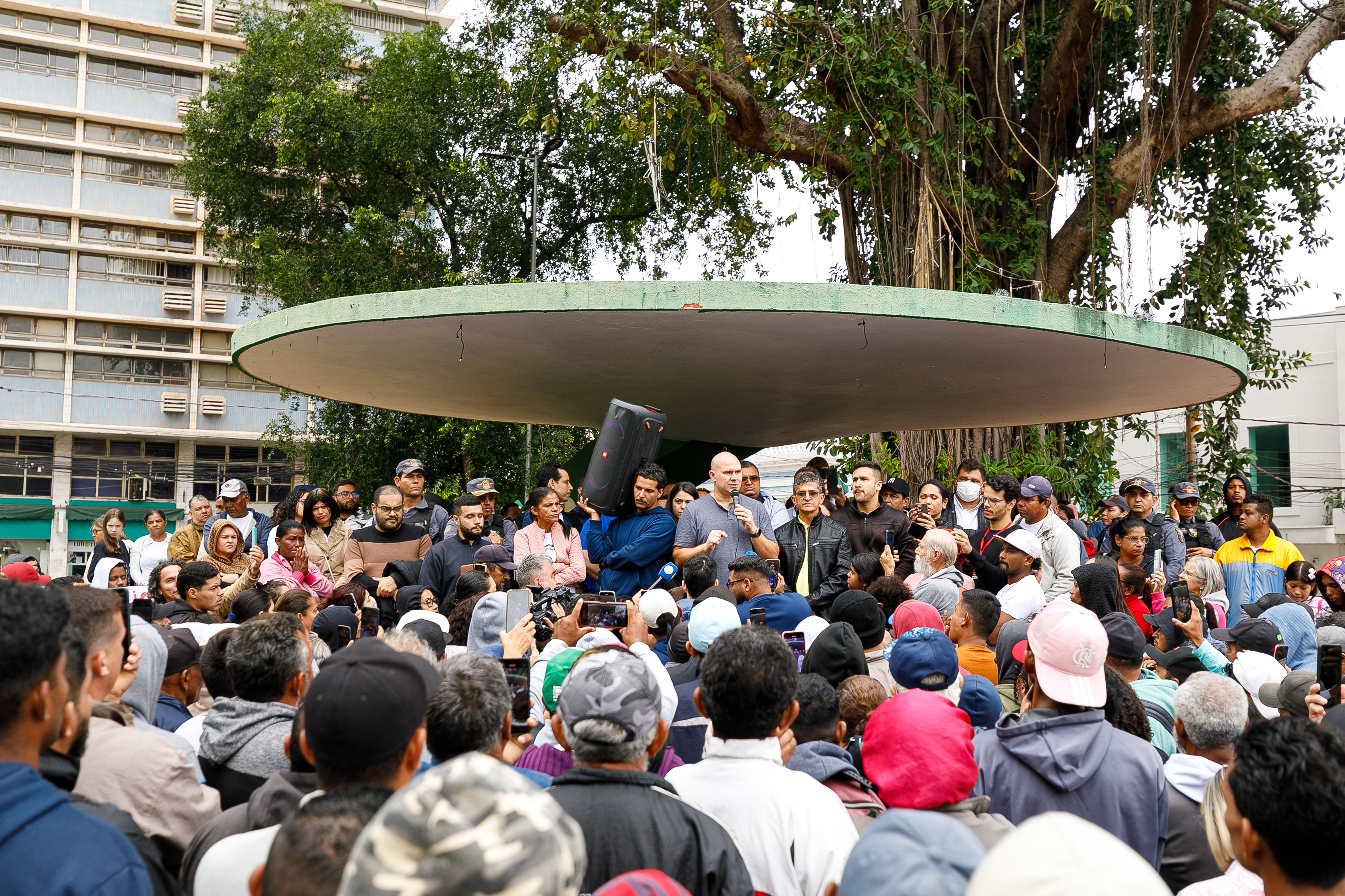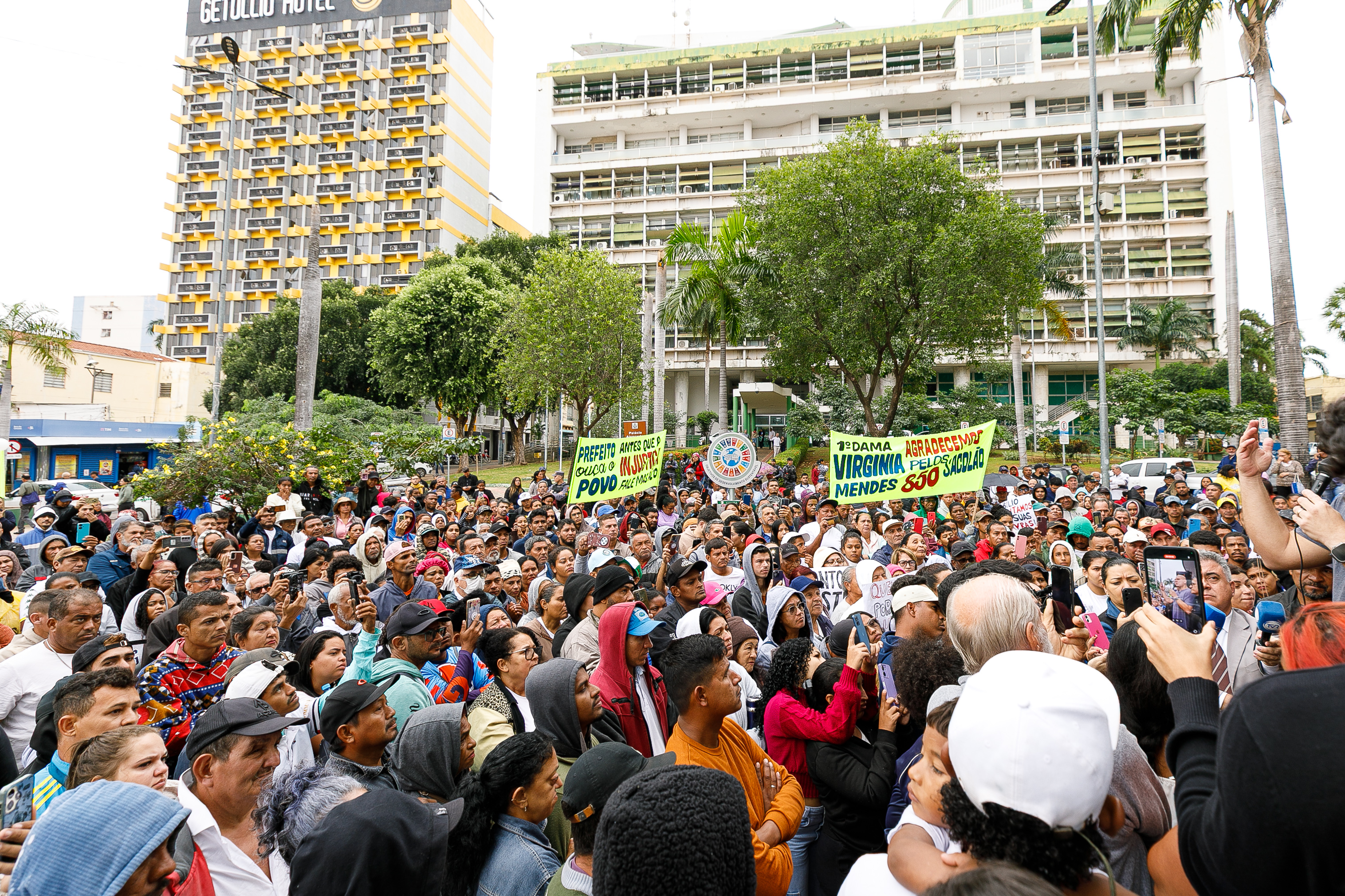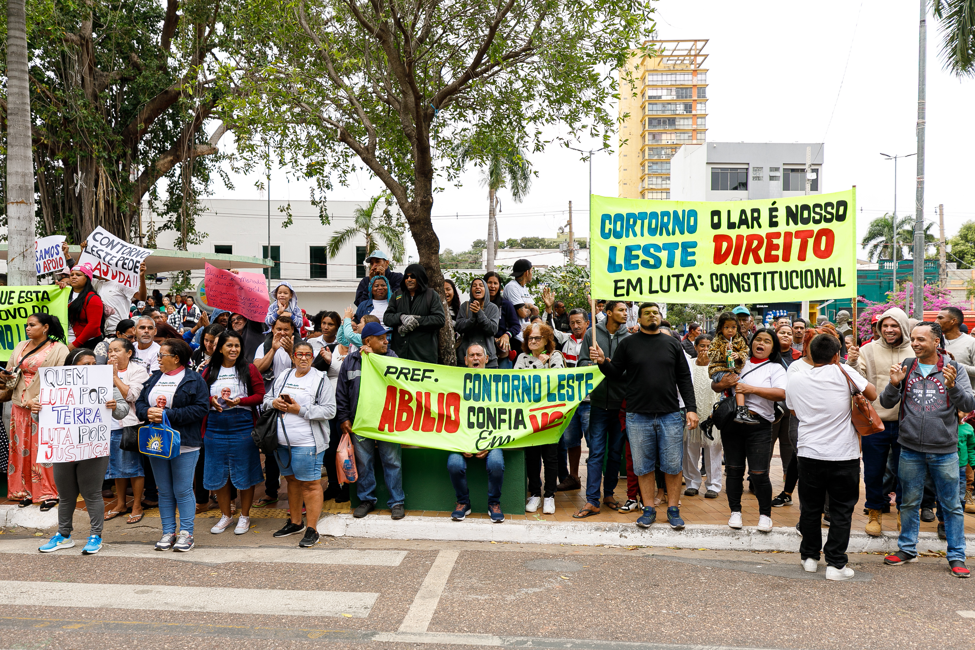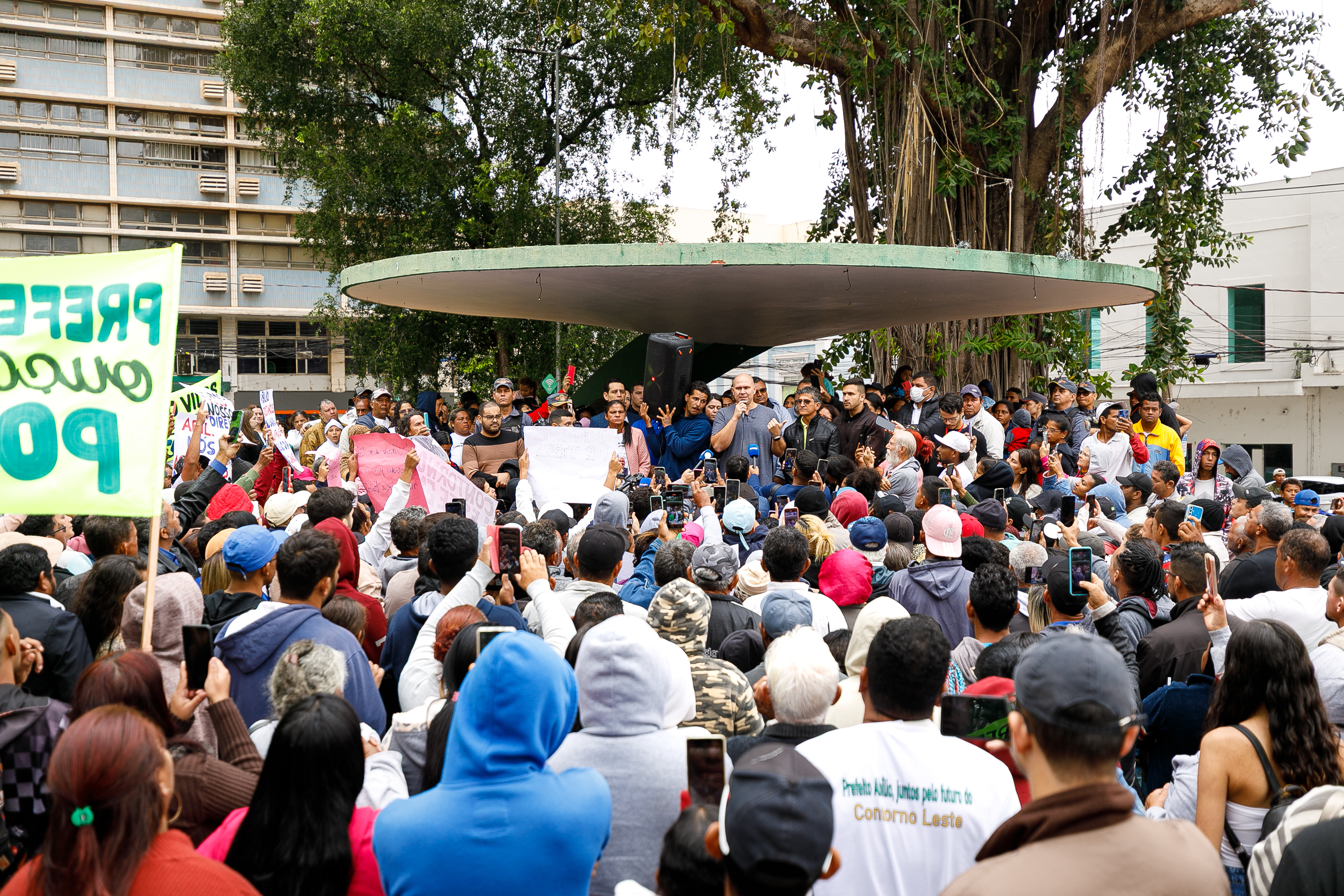 O prefeito de Cuiabá, Abilio Brunini, conversou diretamente com cerca de 500 pessoas que protestavam contra uma possível desocupação da área conhecida como Contorno Leste, na manhã desta segunda-feira (30), na Praça Alencastro. A região, atualmente ocupada de forma irregular, está em litígio e sob análise do Poder Judiciário, com risco de desapropriação por ser uma área particular. Participaram do diálogo Hélida Vilela de Oliveira (secretária municipal de Assistência Social, Direitos Humanos e Inclusão), Michelle Almeida Dreher Alves (secretária municipal de Habitação e Regularização Fundiária) e William Campos (chefe de gabinete do prefeito).