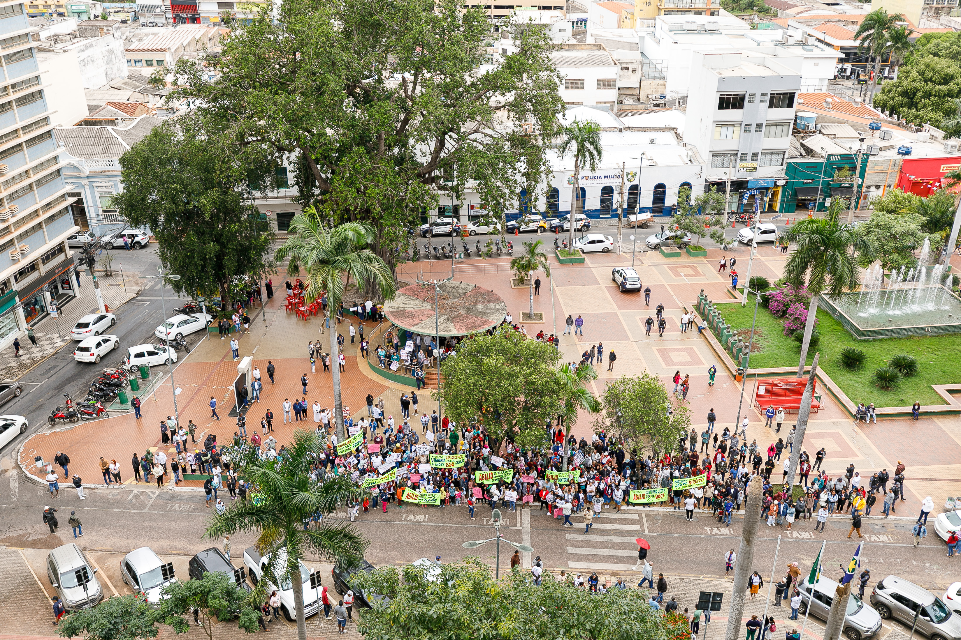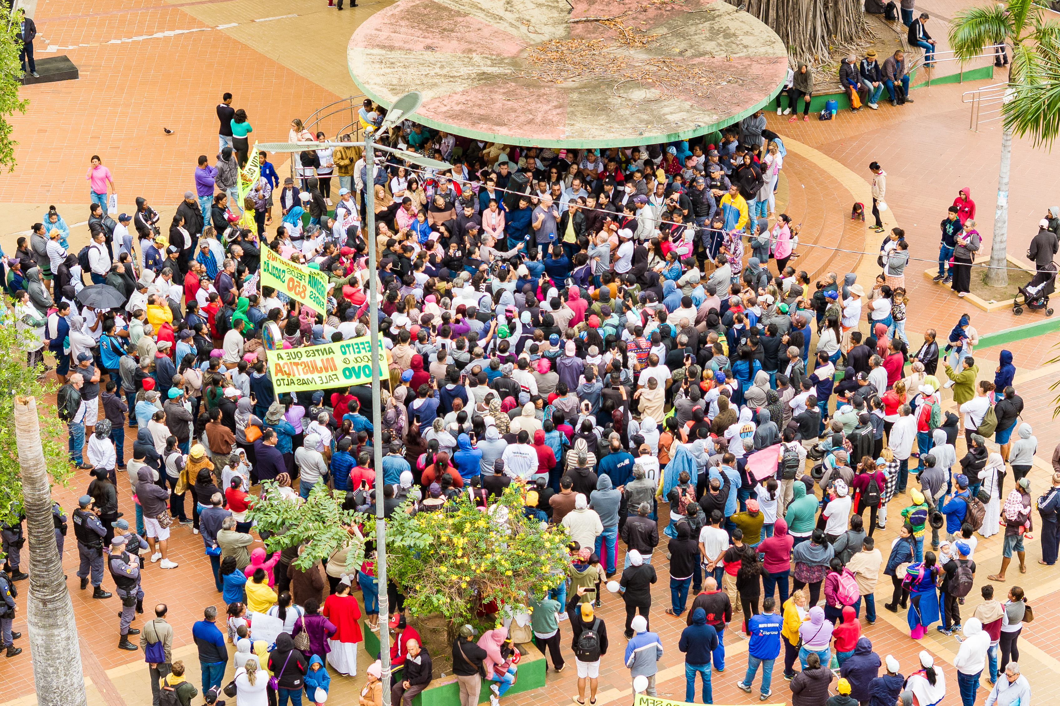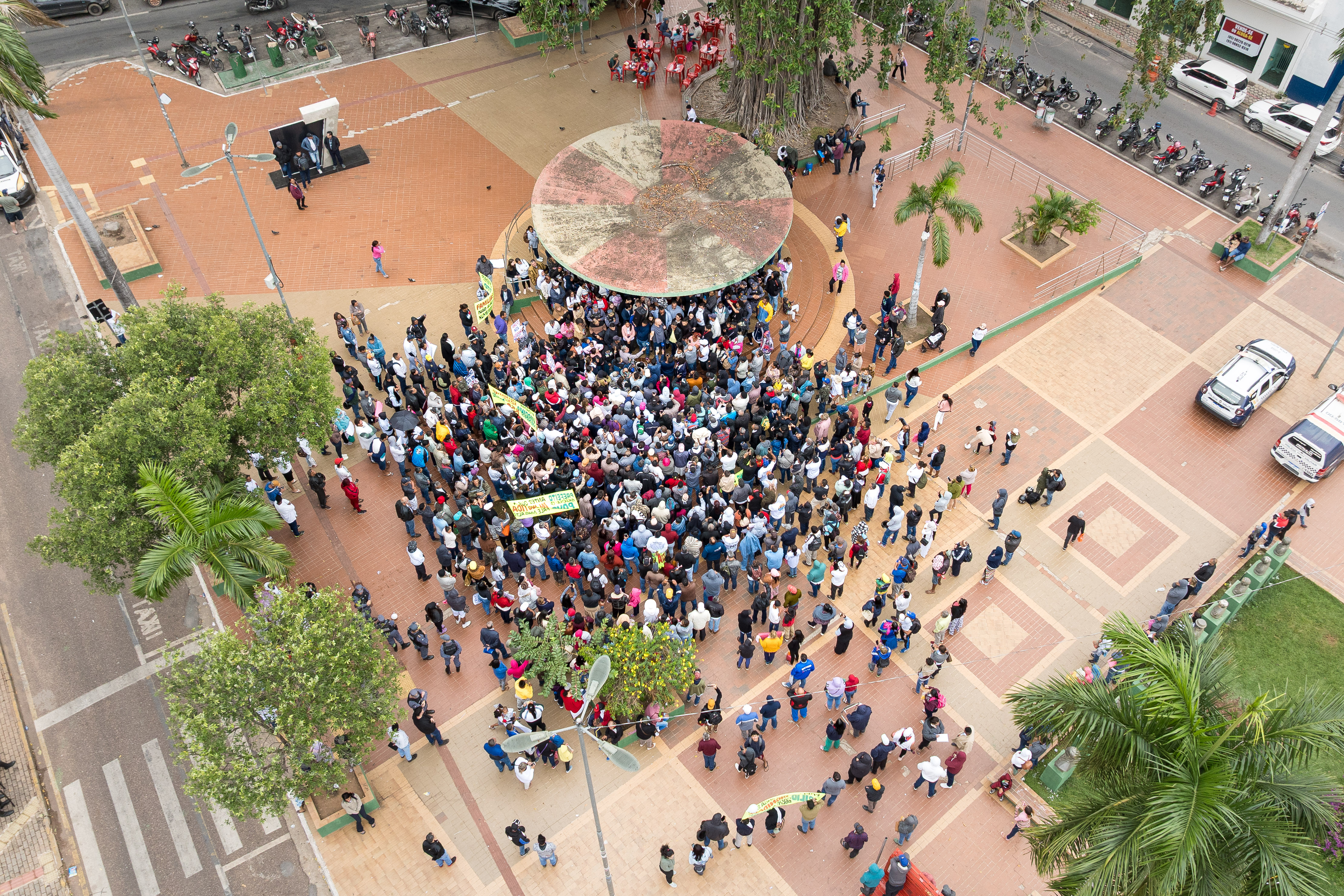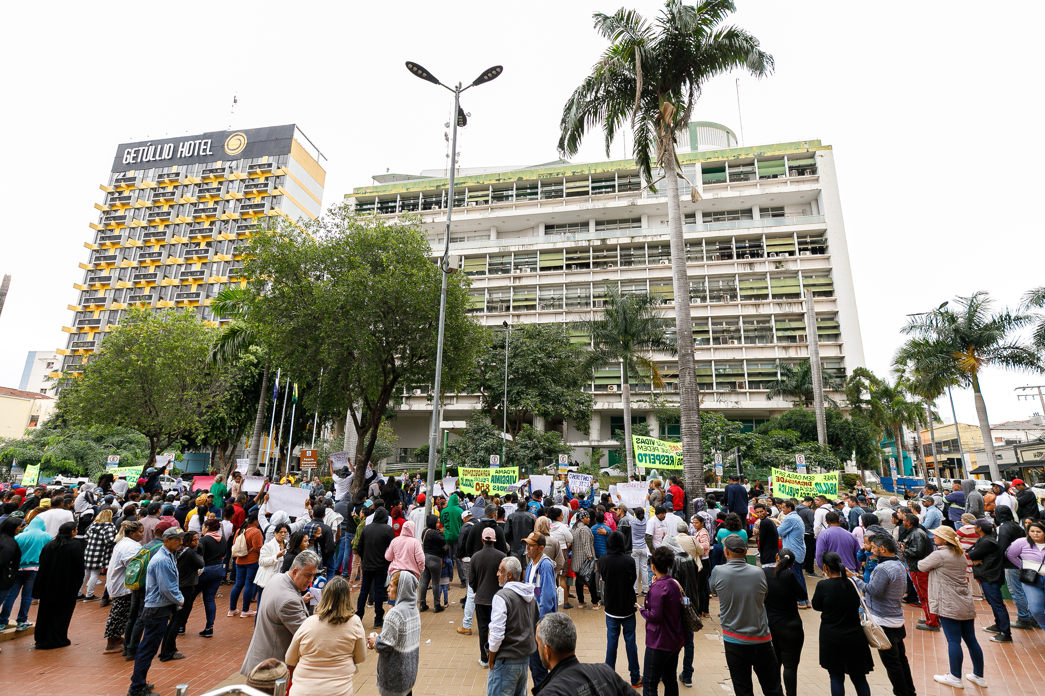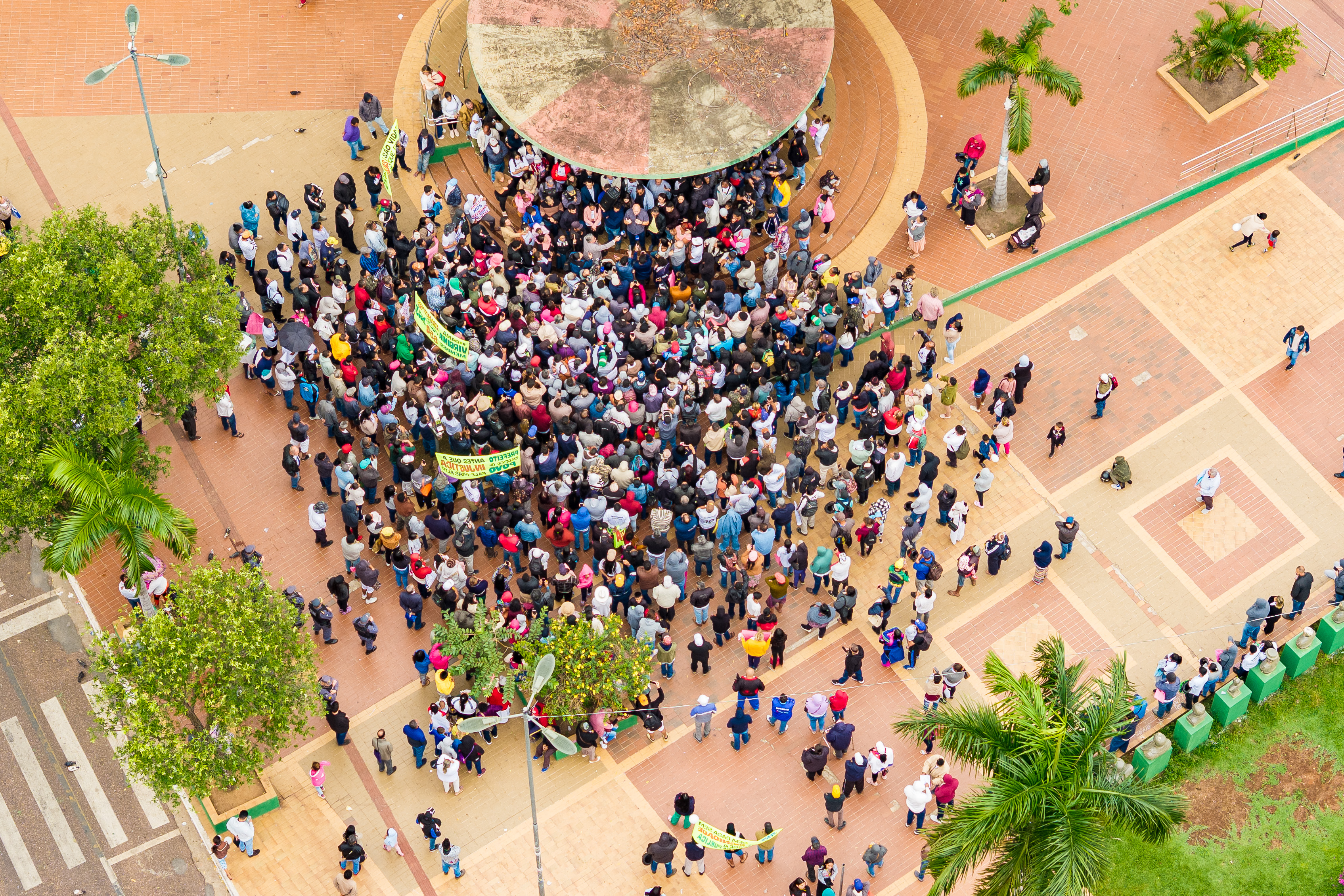 O prefeito de Cuiabá, Abilio Brunini, conversou diretamente com cerca de 500 pessoas que protestavam contra uma possível desocupação da área conhecida como Contorno Leste, na manhã desta segunda-feira (30), na Praça Alencastro. A região, atualmente ocupada de forma irregular, está em litígio e sob análise do Poder Judiciário, com risco de desapropriação por ser uma área particular. Participaram do diálogo Hélida Vilela de Oliveira (secretária municipal de Assistência Social, Direitos Humanos e Inclusão), Michelle Almeida Dreher Alves (secretária municipal de Habitação e Regularização Fundiária) e William Campos (chefe de gabinete do prefeito).