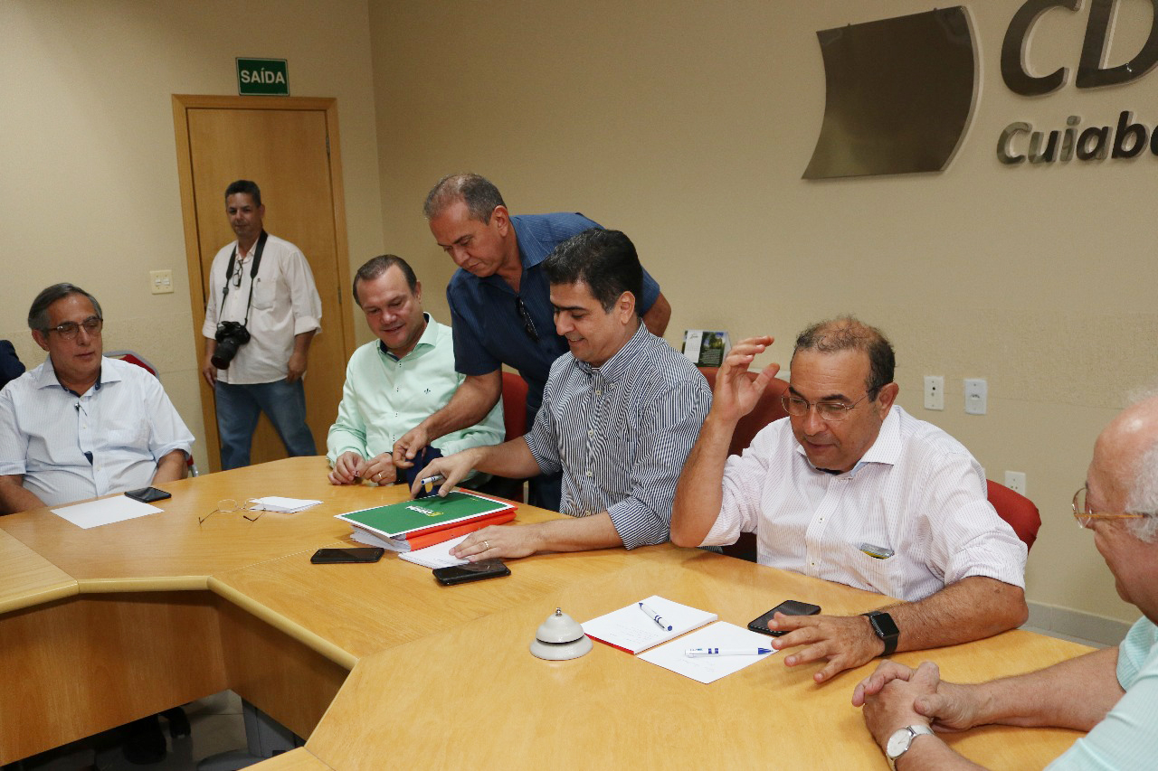 O prefeito Emanuel Pinheiro assinou o edital de licitação para o retorno do “Faixa Verde”, na noite desta segunda-feira (25), na sede da Câmara de Dirigentes Lojistas (CDL Cuiabá). A solenidade aconteceu com a participação dos diretores da instituição, conselheiros, empresários e parte do seu secretariado. Ao longo do encontro, o chefe do Executivo ainda recebeu as reivindicações da categoria comercial.