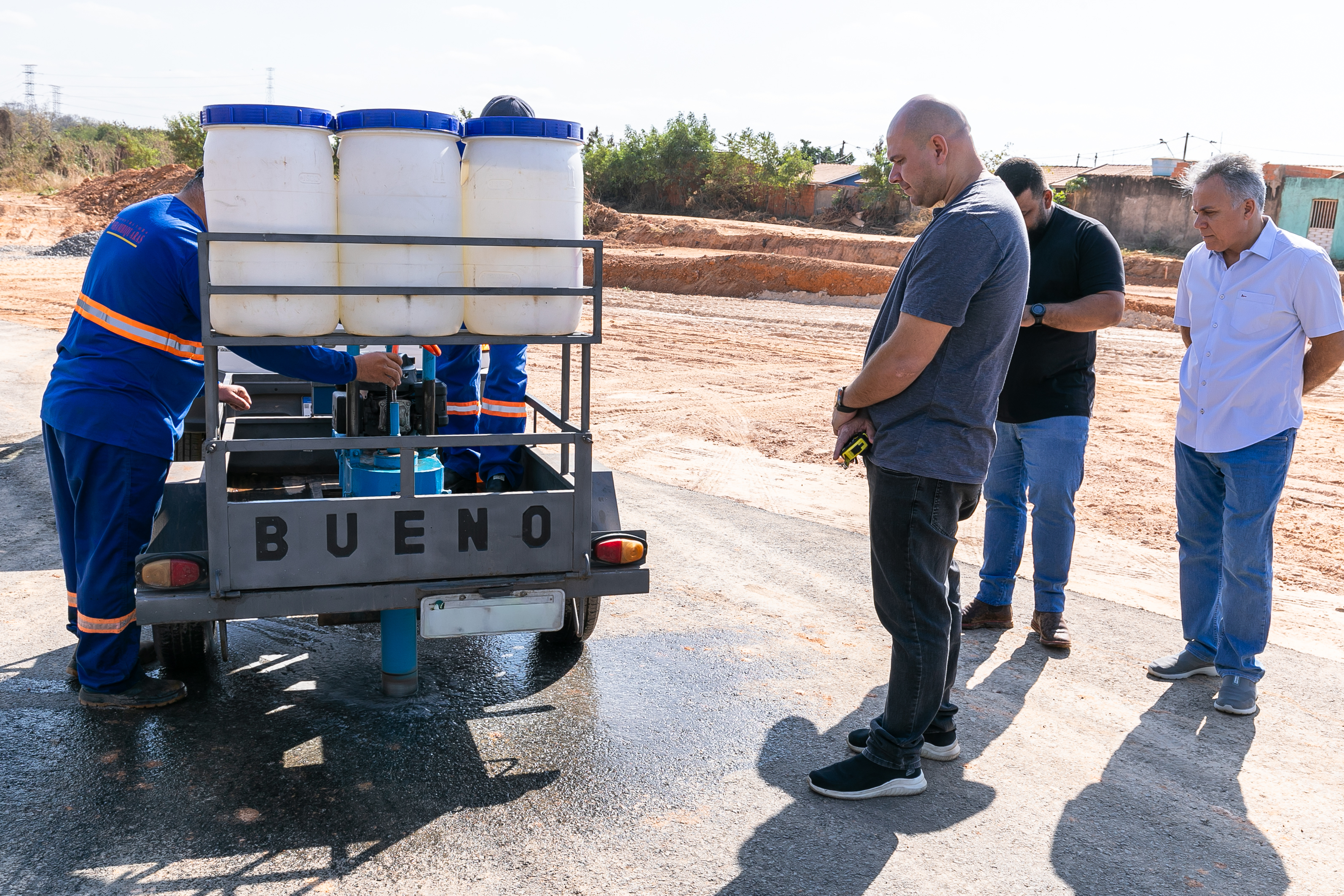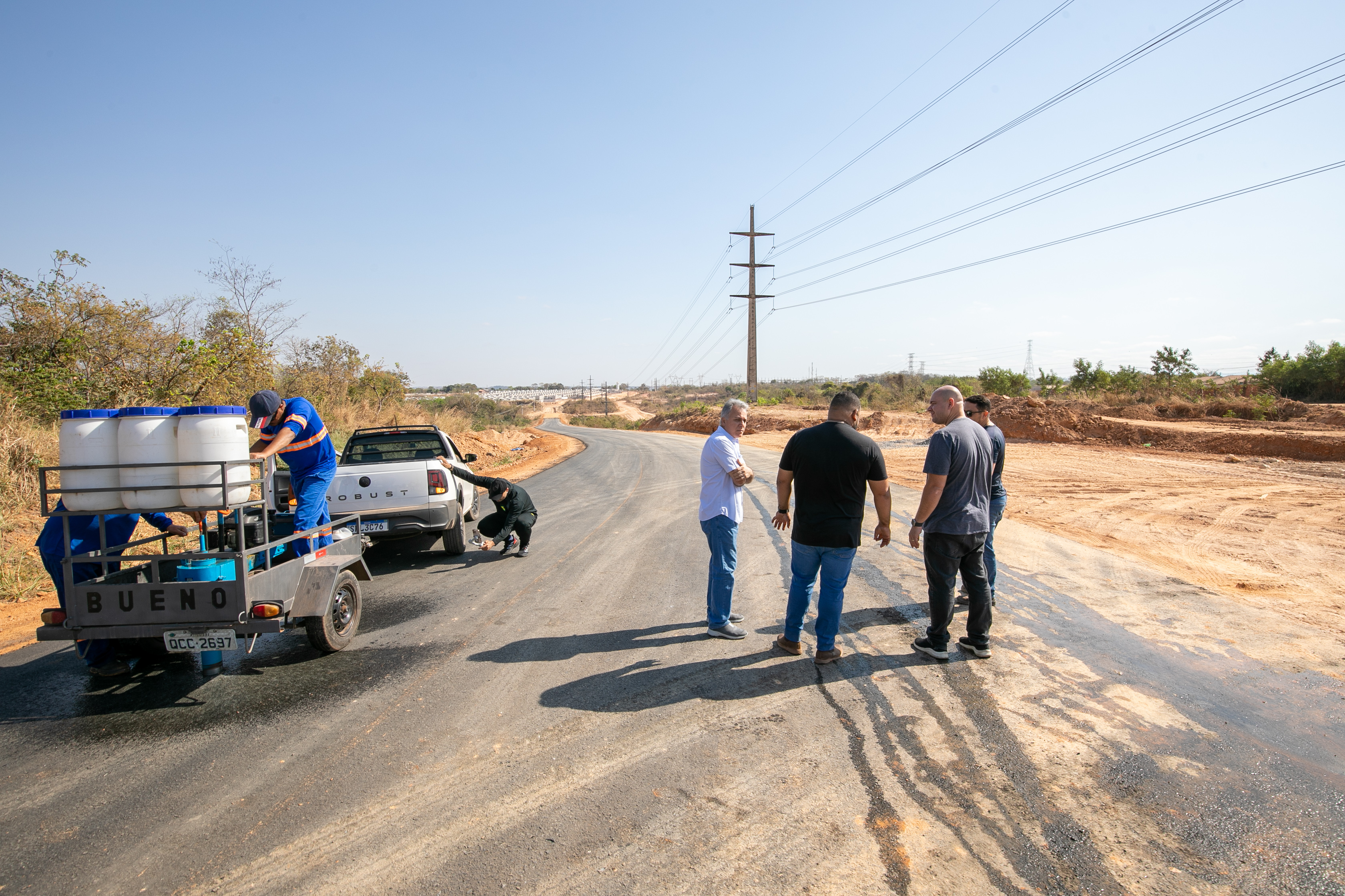 A vistoria contou com a presença do secretário de Infraestrutura e Obras, Reginaldo Teixeira e sua equipe técnica, além de representantes da construtora Nhambiquaras, responsável pela obra. Durante a visita, foram realizadas medições da pavimentação asfáltica para avaliar a qualidade dos serviços executados.
