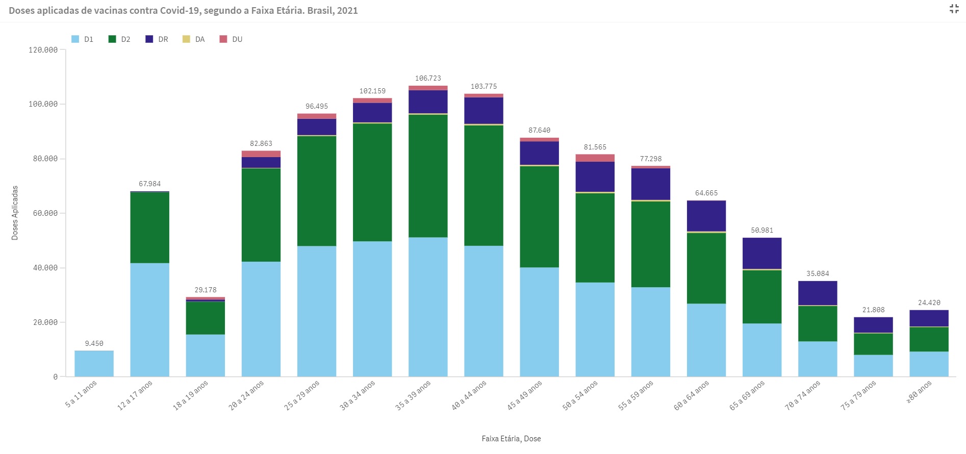 Quanto à dose de reforço (popularmente chamada de terceira dose), 78,9% do grupo de indivíduos de 18 a 59 anos imunizados com duas doses ainda não compareceram para completar o esquema vacinal. Entre os idosos, esse percentual é de 42,5%.