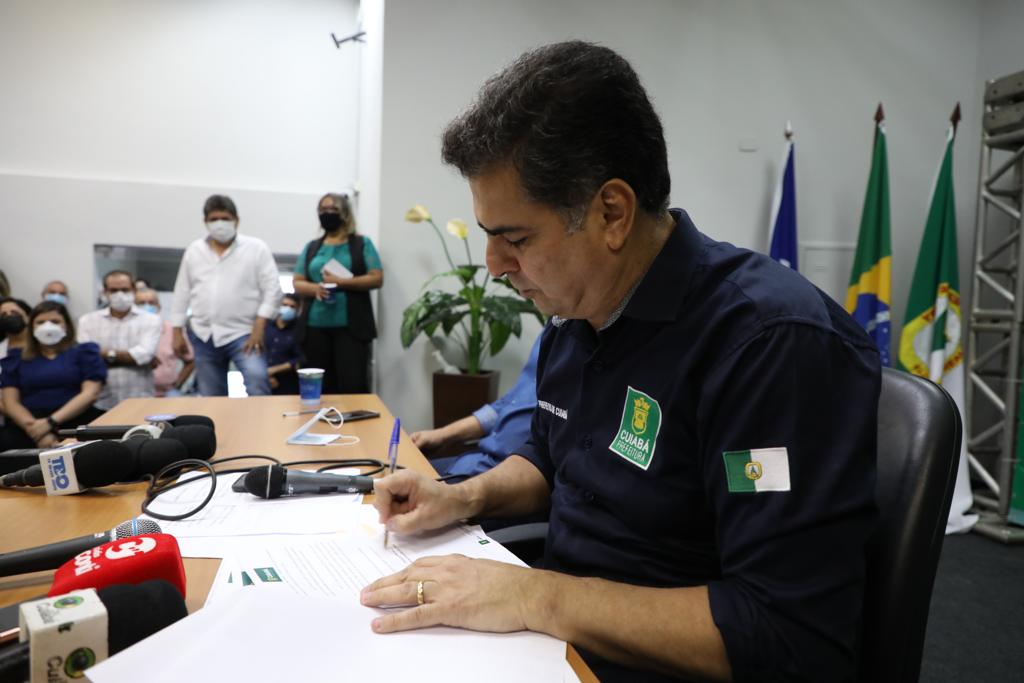 O prefeito de Cuiabá, Emanuel Pinheiro, anunciou que vai editar decretos proibindo a realização de festas públicas e privadas alusivas ao Réveillon e ao Carnaval 2022, devido ao surgimento da nova variante do coronavírus (Ômicron). Ele declarou também que deverá implementar medidas que reforcem a imunização na Capital, devido ao fato de ainda haver mais de 18 mil adultos cuiabanos que ainda não tomaram nenhuma dose da vacina contra a covid-19, bem como mais de 50 mil pessoas que não retornaram para tomar a segunda dose e cerca de 30% dos adolescentes também não terem tomado sequer a primeira dose do imunizante. O anúncio foi feito na manhã desta quarta-feira (1º), durante coletiva de imprensa realizada no auditório da Secretaria Municipal de Educação.