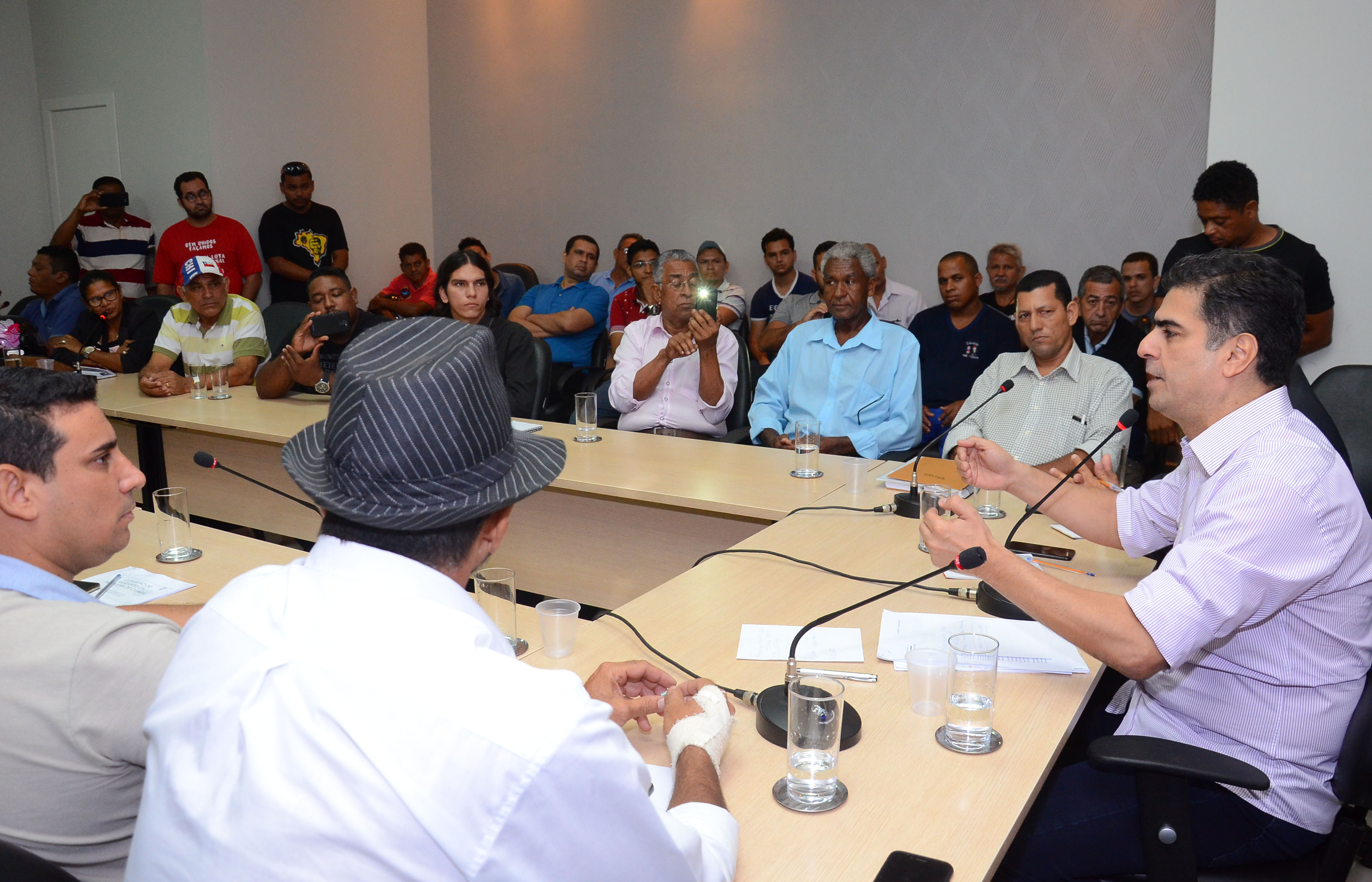 O prefeito Emanuel Pinheiro e a categoria dos vigilantes municipais dialogaram sobre melhorias para a classe, durante uma reunião que aconteceu nesta terça-feira (17). Ao longo do encontro, o gestor recebeu as reivindicações dos profissionais, que solicitaram o retorno do pagamento do adicional de 30% por periculosidade, além de uma revisão da lei orgânica que dispõe das atribuições e direitos destes servidores especificamente lotados na Secretaria Municipal de Educação.