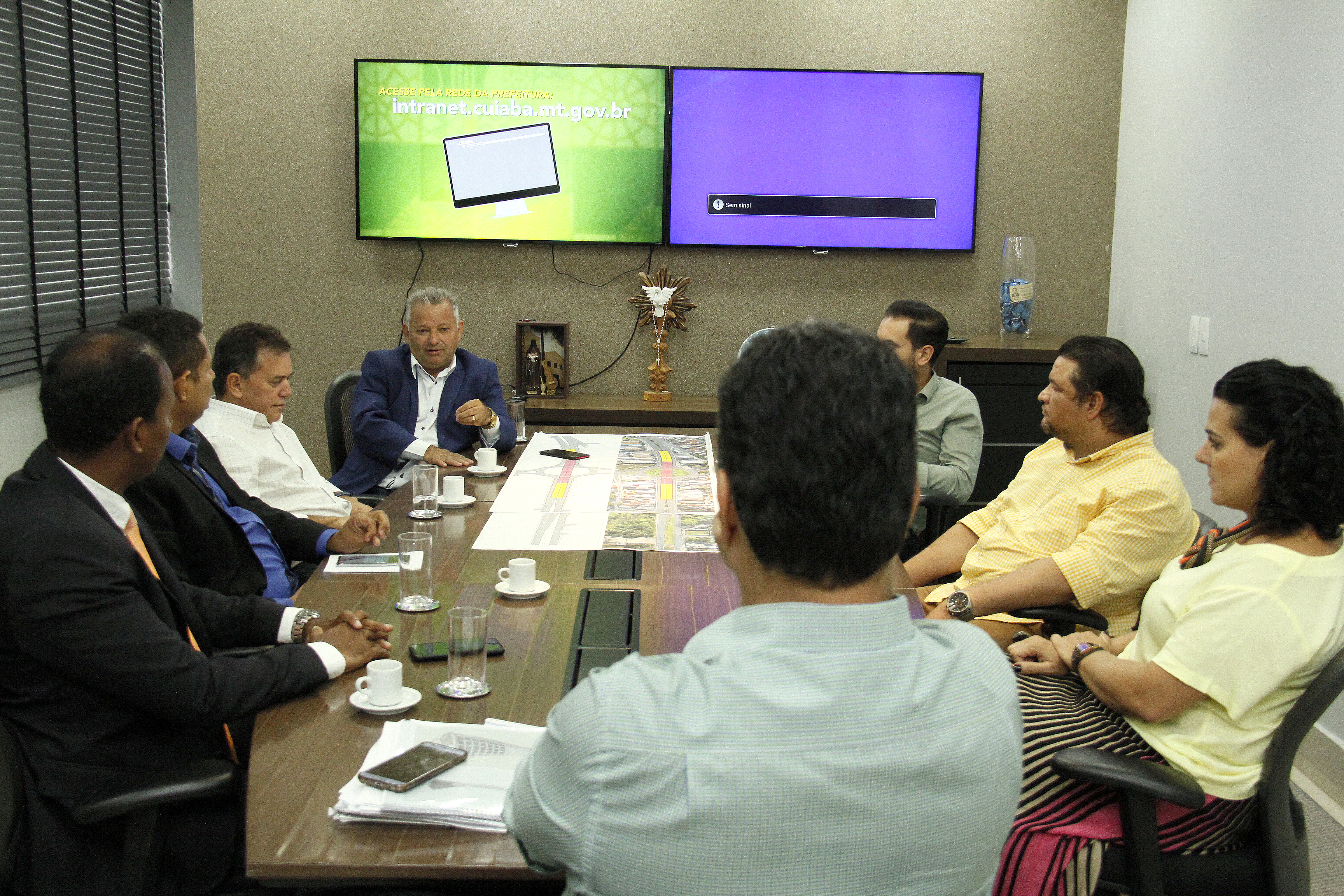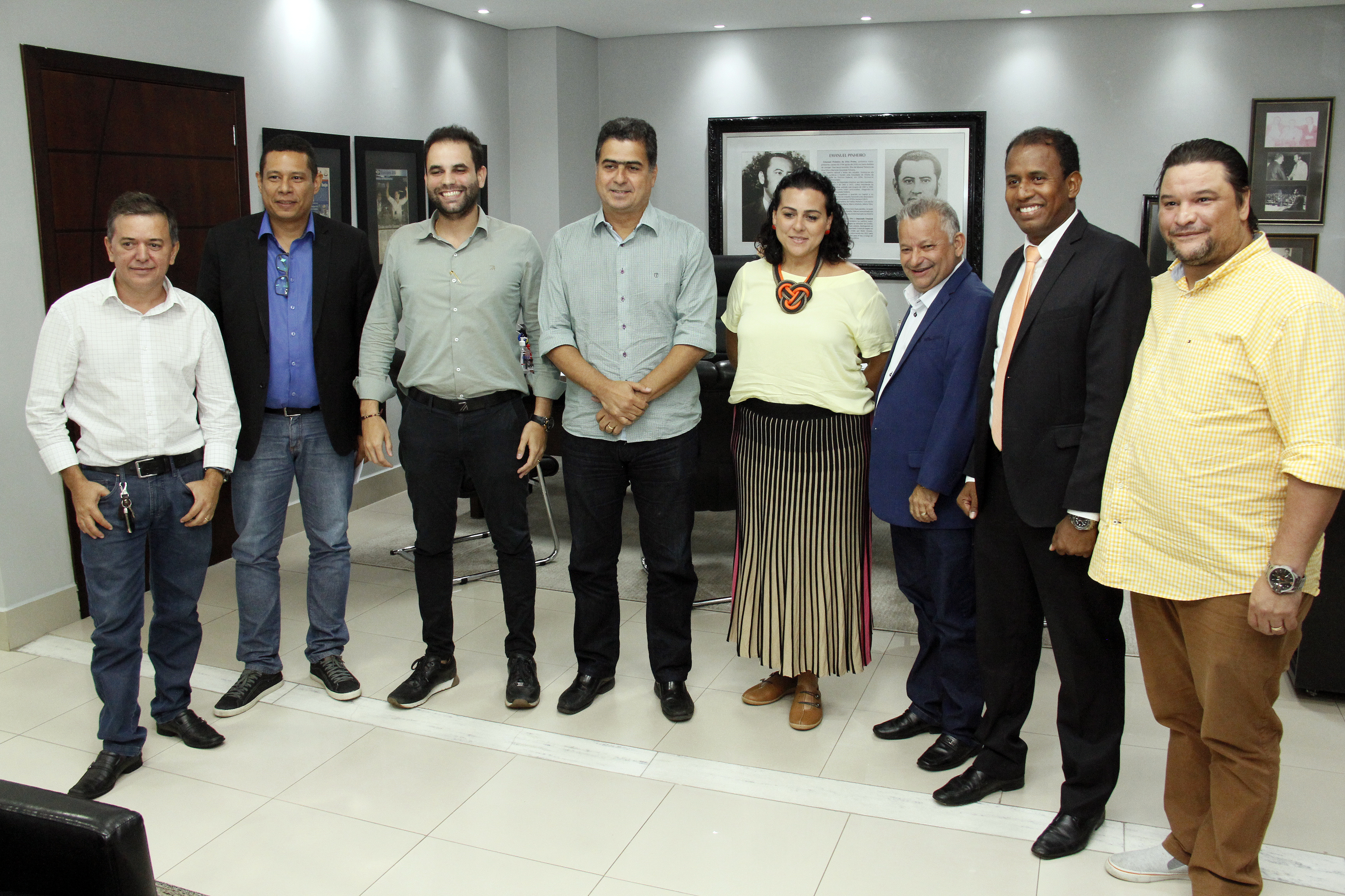 O prefeito de Cuiabá, Emanuel Pinheiro, recebeu nesta terça-feira (12), o presidente da Câmara Municipal de Cuiabá, vereador Misael Galvão (PTB), o vereador Vinicyus Hugueney (PP), a presidente da da Associação Brasileira de Bares e Restaurantes (Abrasel- MT), Lorena Bezerra e membros da Ordem dos Músicos de Mato Grosso, para um diálogo a respeito da Lei do Silêncio (3899/99). Em pauta, foram debatidas as ações da Prefeitura de Cuiabá no combate e a fiscalização à poluição sonora, além de melhorias ao trabalho desempenhado.