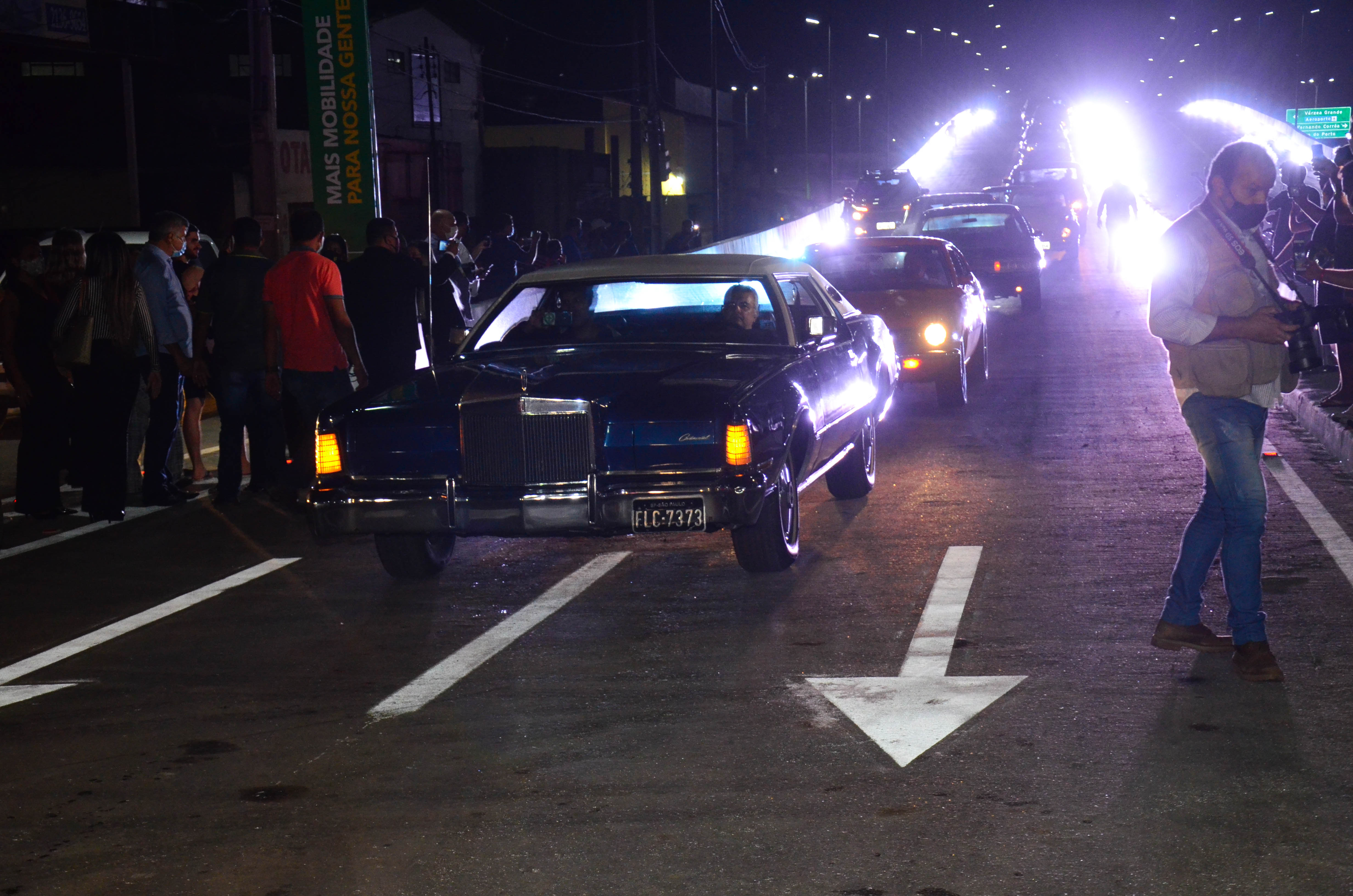 Um desfile de carros antigos, das décadas de 60,80,90, de diferentes marcas e modelos, chamaram à atenção na noite desta segunda-feira (10) em que foi inaugurado o segundo viaduto da gestão Emanuel Pinheiro que foi batizado com o nome de um grande expoente da política mato-grossense, Murilo Domingos, na Avenida Beira Rio.
