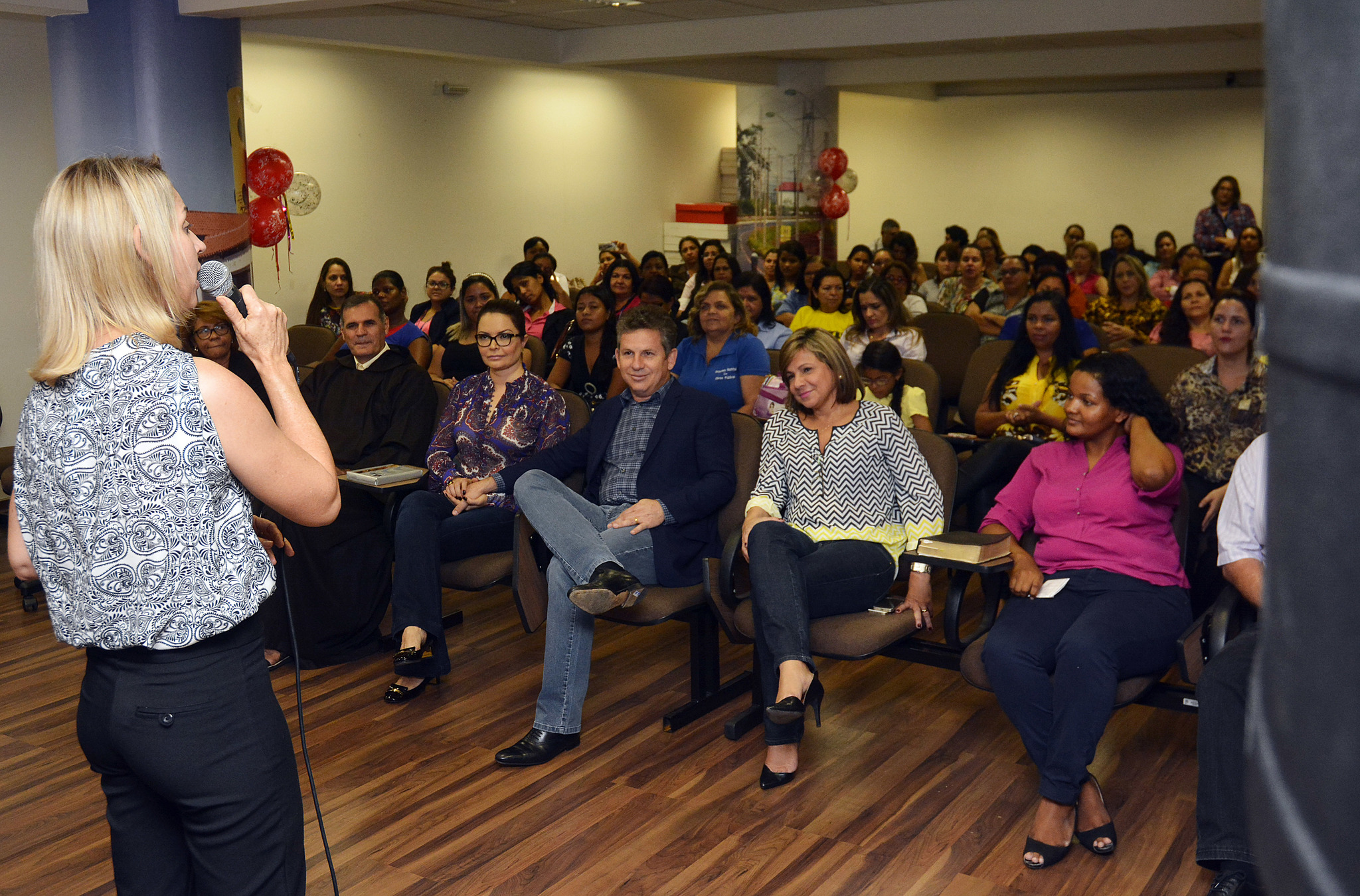 O prefeito Mauro Mendes e a primeira-dama, Virgínia Mendes, participaram no final da tarde desta sexta-feira (08) de uma homenagem ao Dia das Mães que será comemorado neste domingo. Mais de 100 mães, funcionárias de várias secretarias, se reuniram no Auditório do Palácio Alencastro num encontro de confraternização, que inclui a apresentação de um coral, de um vídeo incentivando a adoção, gravado pela primeira-dama, a recitação de poesias e também falas, incluindo a do prefeito Mauro Mendes.