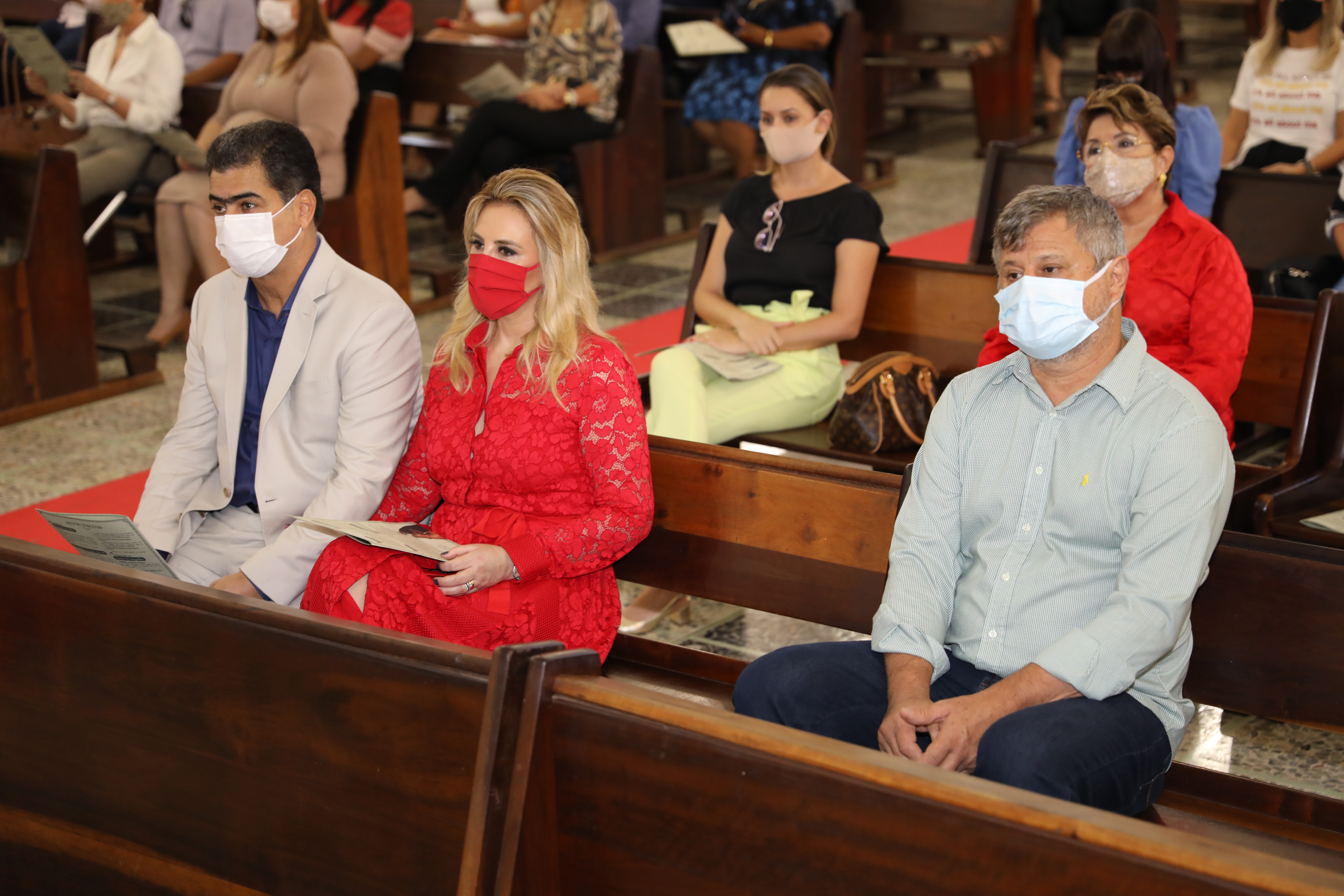 O prefeito de Cuiabá, Emanuel Pinheiro, e a primeira-dama Márcia Pinheiro participaram de uma missa especial nesta terça-feira (22), na Catedral Basílica Bom Jesus de Cuiabá. Durante a celebração relgiosa foi realizada uma homenagem às vítimas da Covid-19, em especial os servidores municipais. A Missa da Esperança trata-se de uma ação foi promovida pelo Núcleo de Apoio à primeira-dama pelo quarto ano consecutivo e seguiu todas as medidas de biossegurança previstas em decretos municipais.