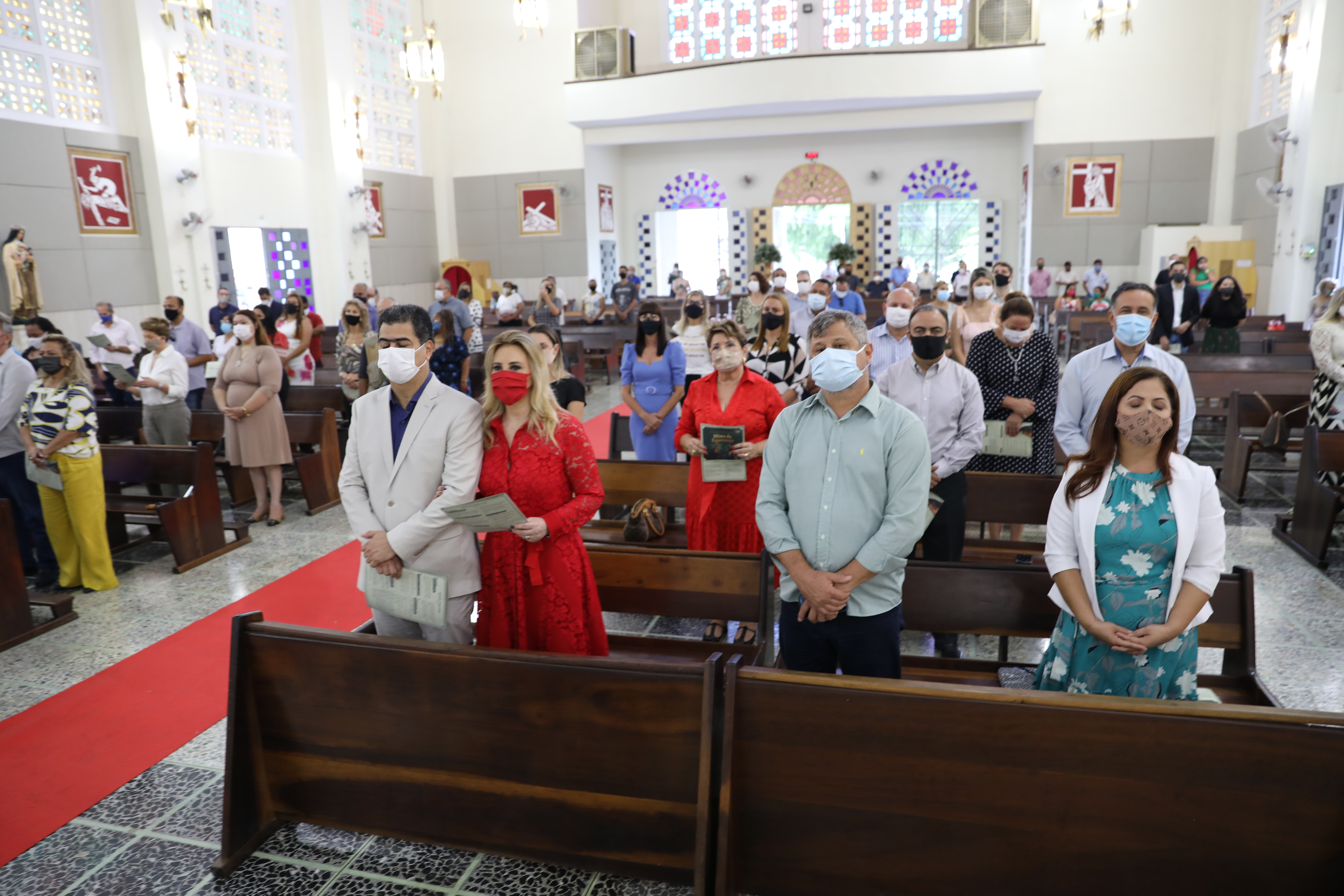 A missa foi conduzida pelo padre Deusdedit Monge que destacou a importância do gestor do Executivo em valorizar os servidores pagando o salário em dia, assim como o respeito e ações de inclusão e justiça social. Monfe ainda lembrou de todas as pessoas que perderam a vida para a Covid-19 e destacou durante a homilia o Evangelho de São Lucas, que mostra a humildade da mãe de Jesus quando foi visitada pelo anjo Gabriel.
