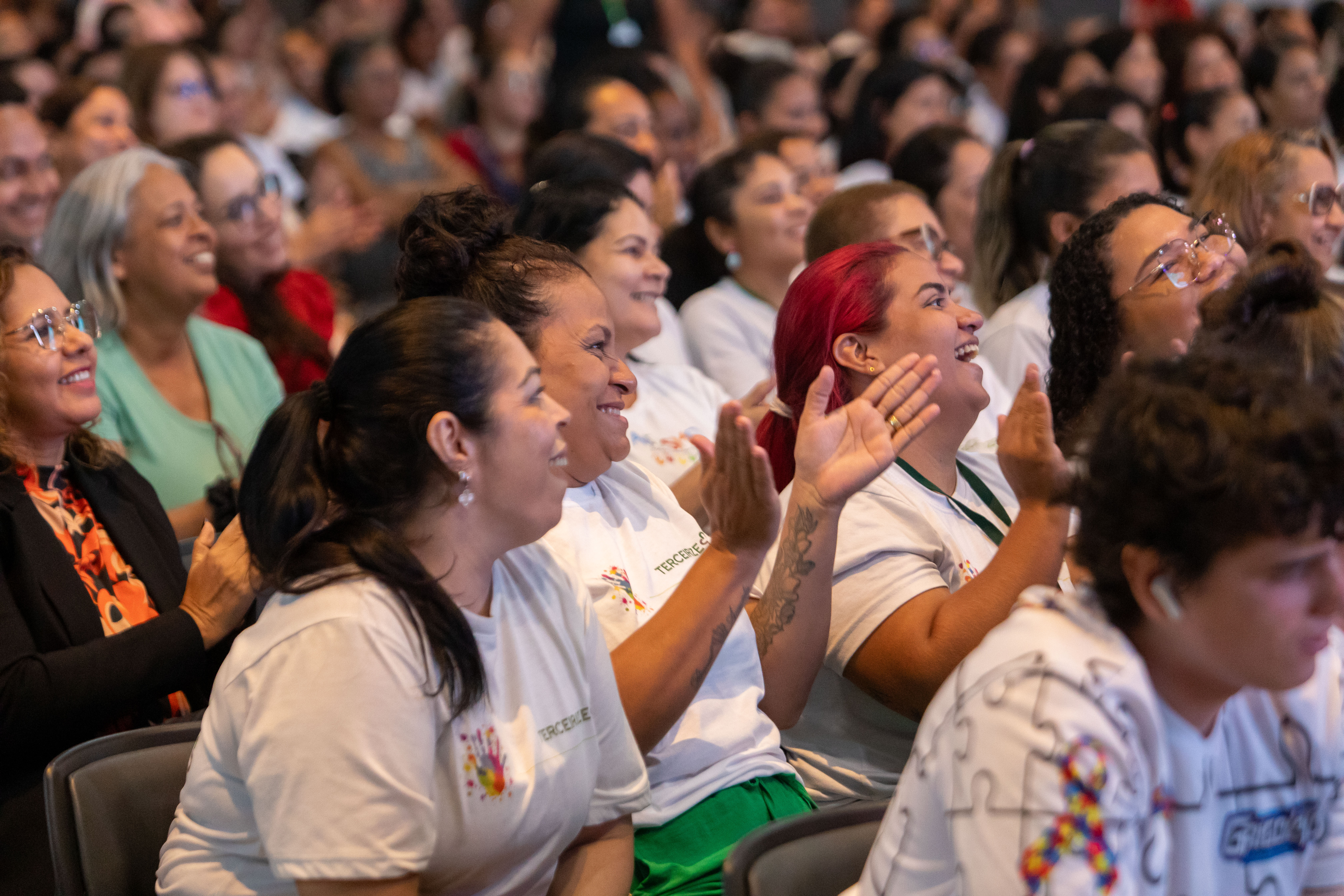 A primeira-dama também destacou que o evento alcança muitas famílias e é uma oportunidade de inclusão real. “Essa parceria é essencial, assim a gente consegue alcançar cada vez mais famílias e, nesse caso aqui, nós estamos alcançando também as cuidadoras dos alunos da nossa rede municipal. Então, é importante que a gente tenha momentos como este de capacitação, de conscientização, para poder colaborar com a sociedade em geral”, emendou Samantha.