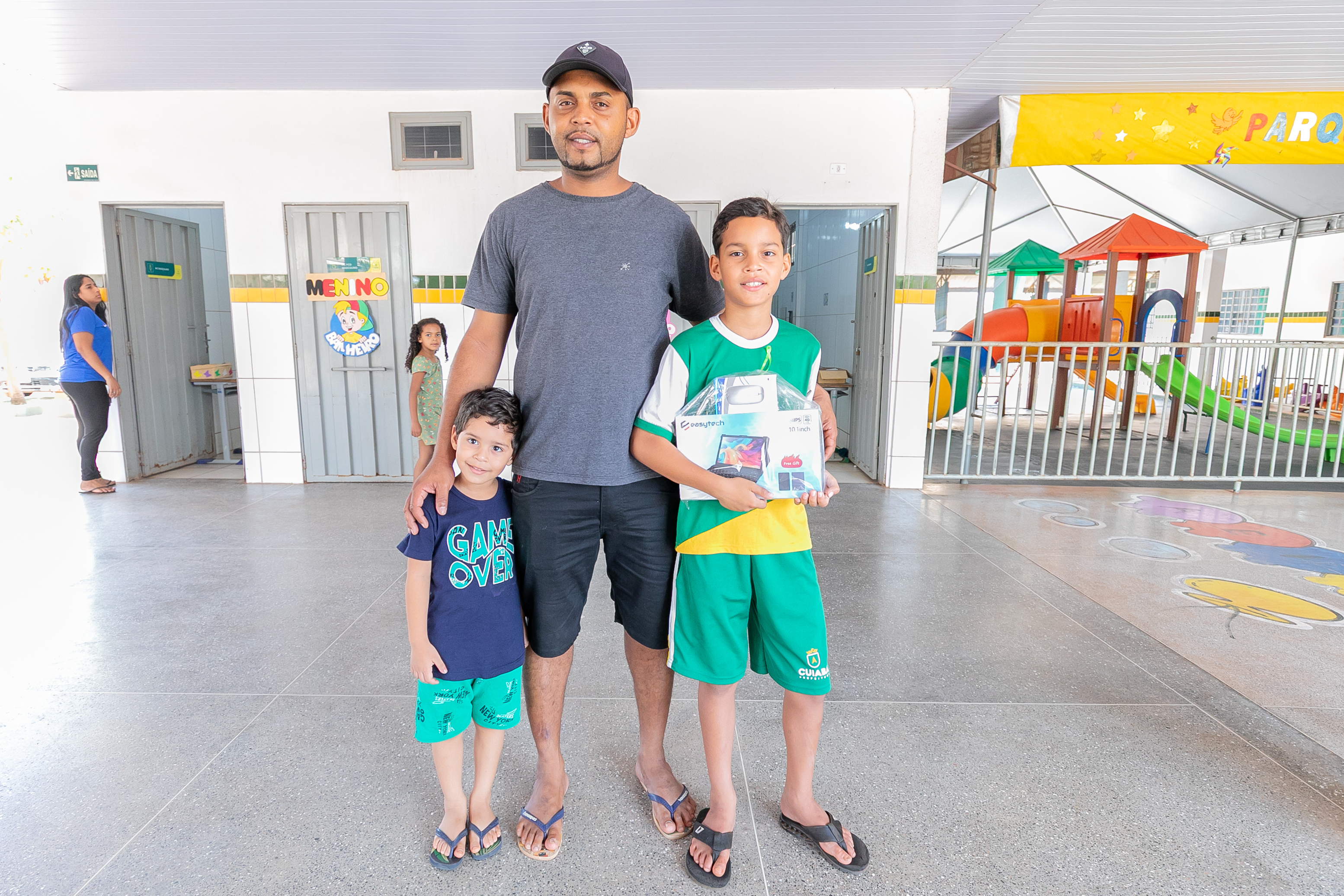 O prefeito Abilio Brunini e a primeira dama Samantha Iris entregaram na quarta-feira (15) um aparelho tablet ao estudante João Lucas Silva Barreto, matriculado no 4º ano C da escola professora Gracildes Melo Dantas, localizada no bairro Altos da Glória. O ato de entrega ocorreu durante o lançamento do projeto “Livro Livre”.
