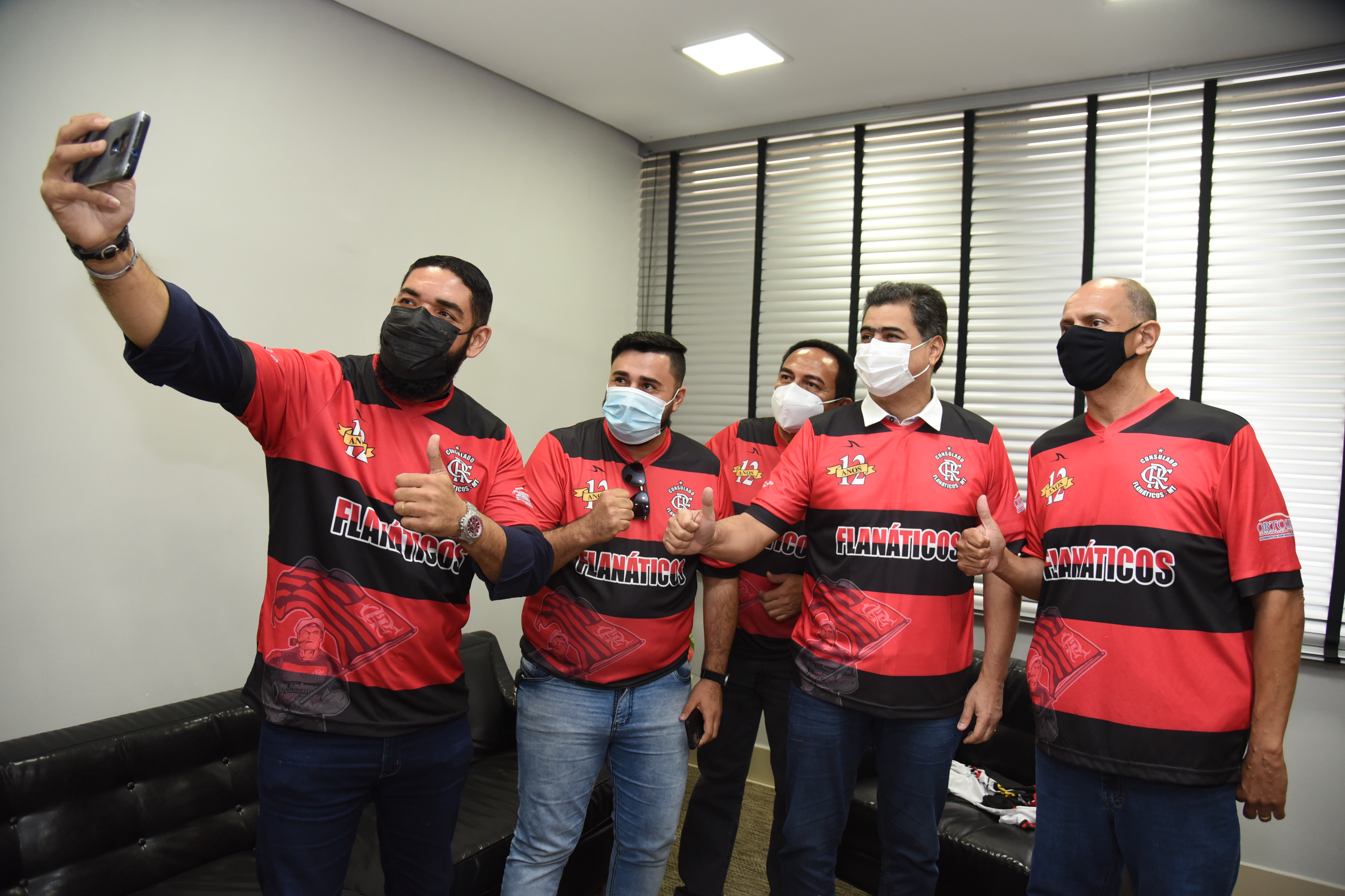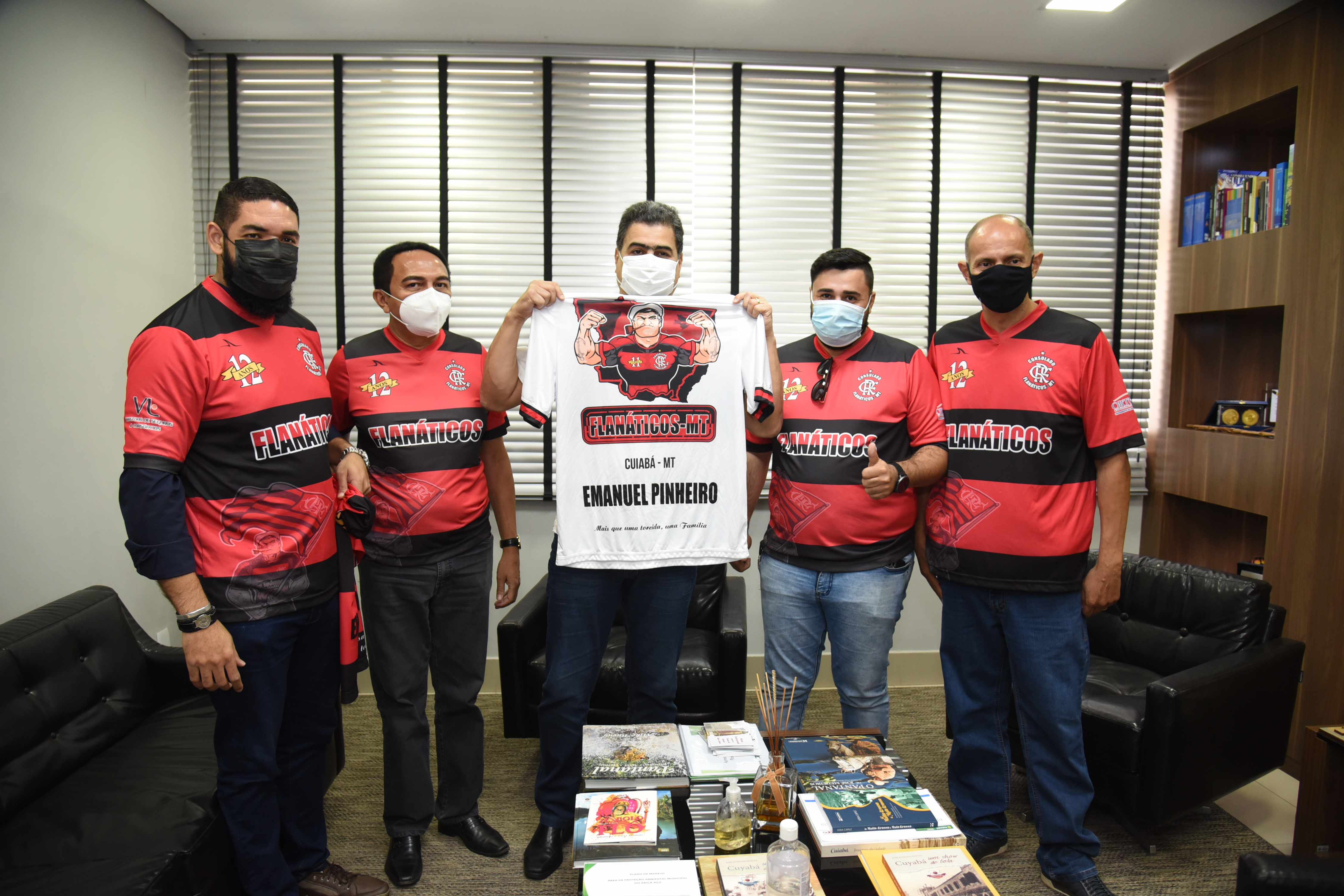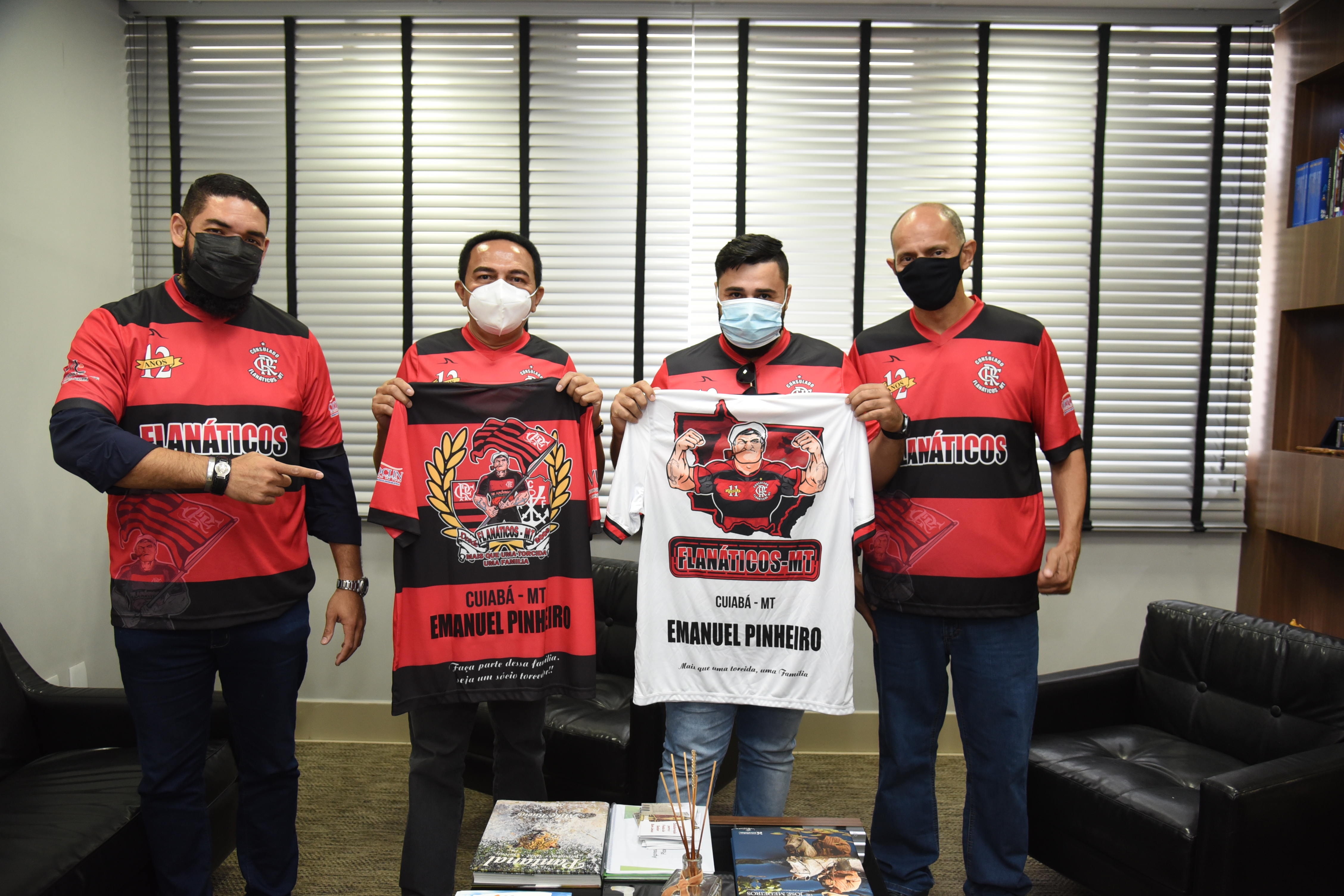 O prefeito Emanuel Pinheiro recebeu na tarde desta terça-feira (28), em seu gabinete no Palácio Alencastro, a visita dos membros da diretoria do Flanáticos, formando por torcedores do Flamengo. Como forma de agradecimento da parceria consolidada, o chefe do Executivo Municipal, que é rubro-negro, recebeu uma camiseta do grupo que em 2021 completa 12 anos de fundação.