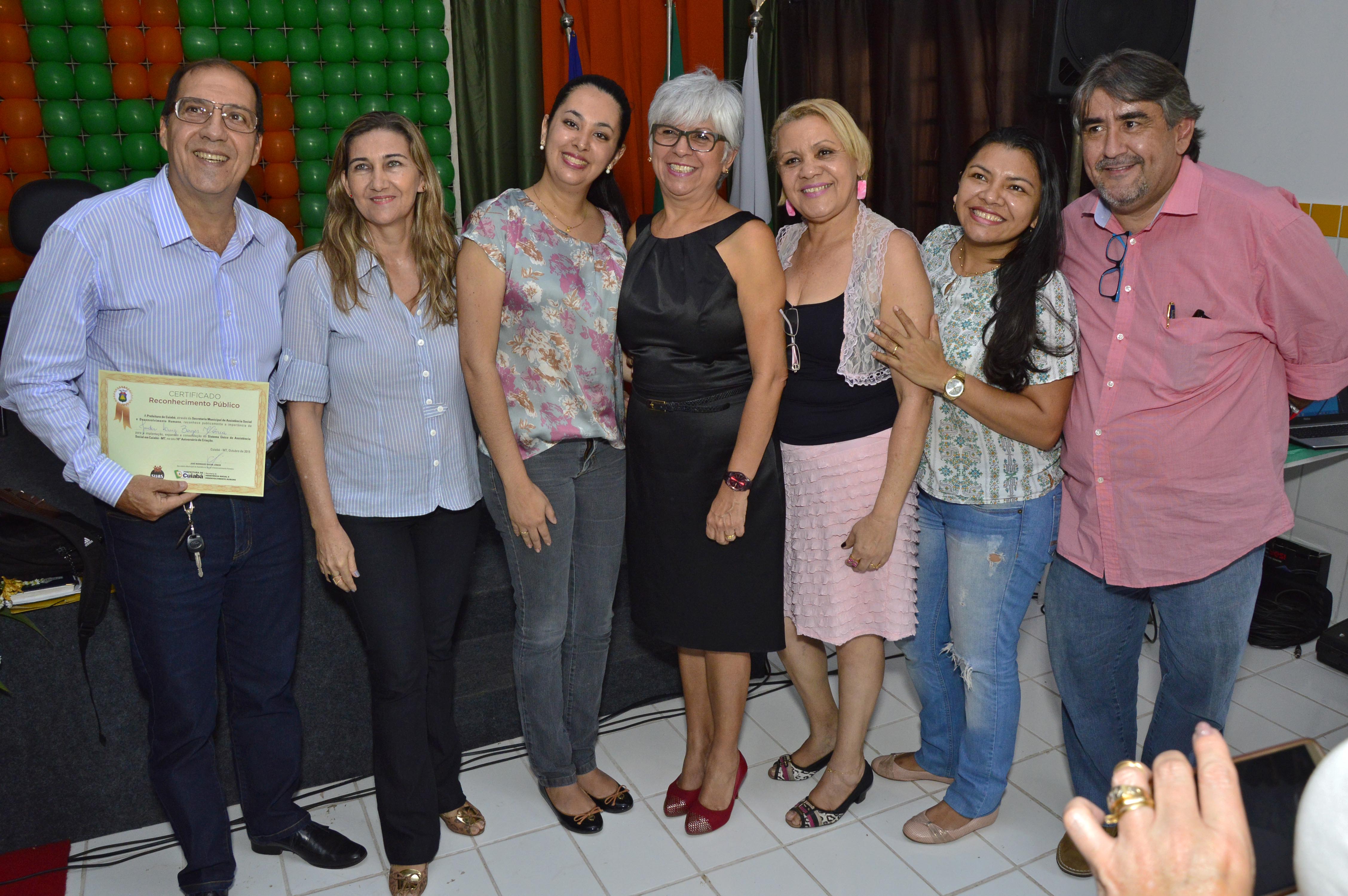 A Secretaria Municipal de Assistência Social e Desenvolvimento Humano homenageou nesta sexta-feira (16) mais de 200 pessoas que têm atuado na implantação e consolidação do Sistema Único de Assistência Social (SUAS) em Cuiabá. A homenagem fez parte do evento que comemorou aos 10 anos de existência do Suas no país.