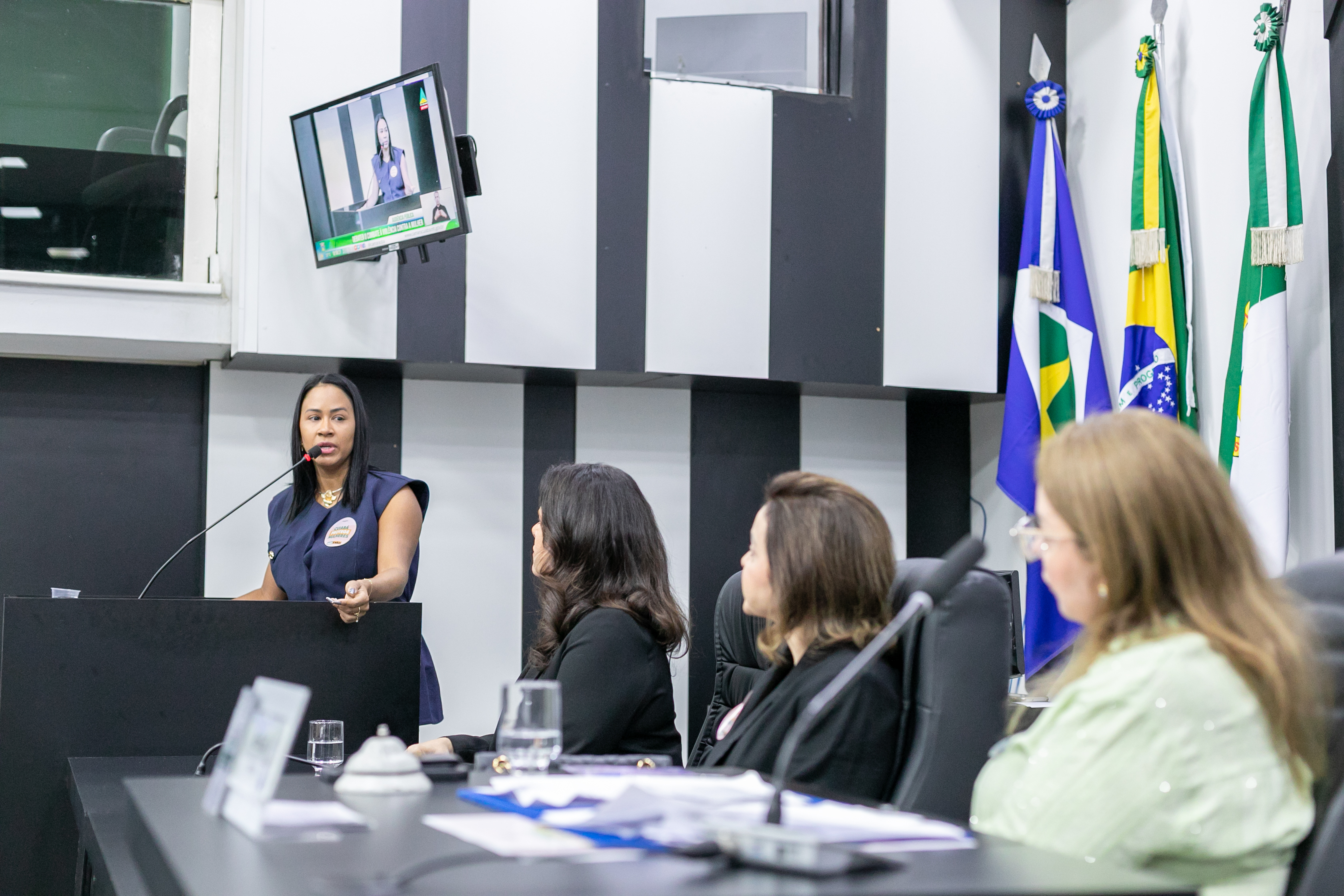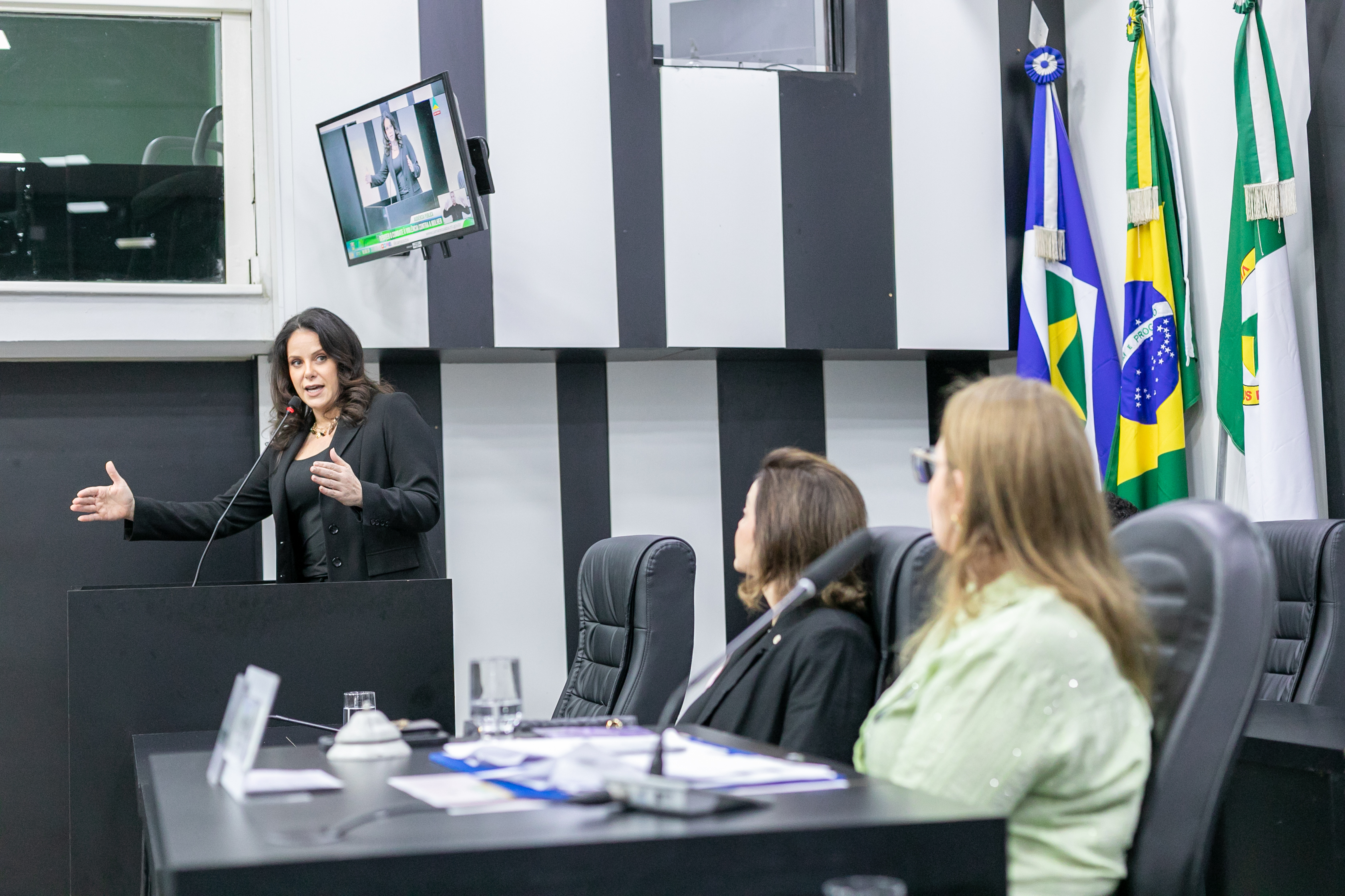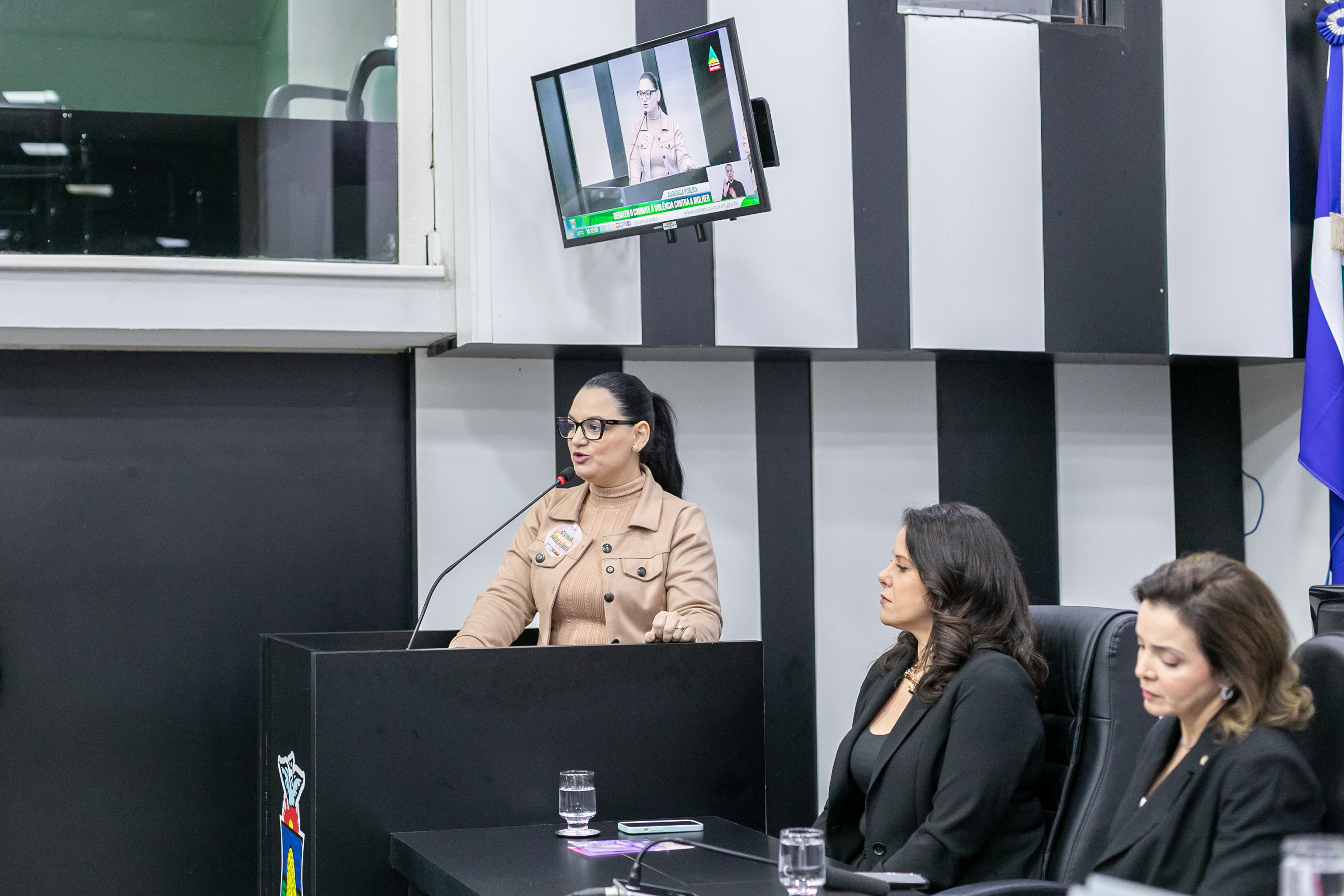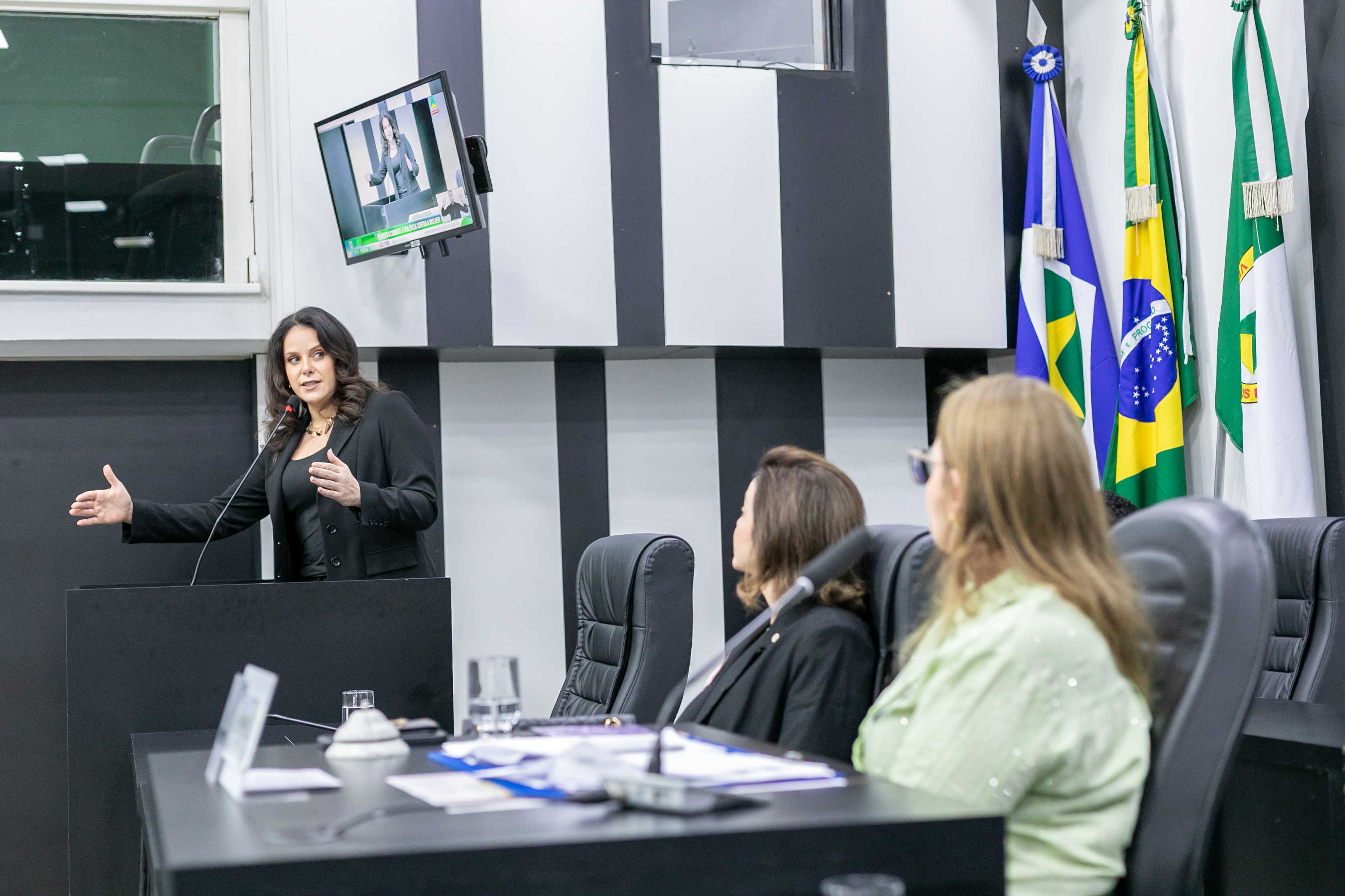 A secretária da Mulher, tenente-coronel Hadassah Suzannah, participou nesta quarta-feira (27), ao lado da secretária municipal de Ordem Pública, Juliana Palhares, da audiência pública sobre o combate à violência contra a mulher, requerida pela presidente da Câmara de Cuiabá, vereadora Paula Calil.