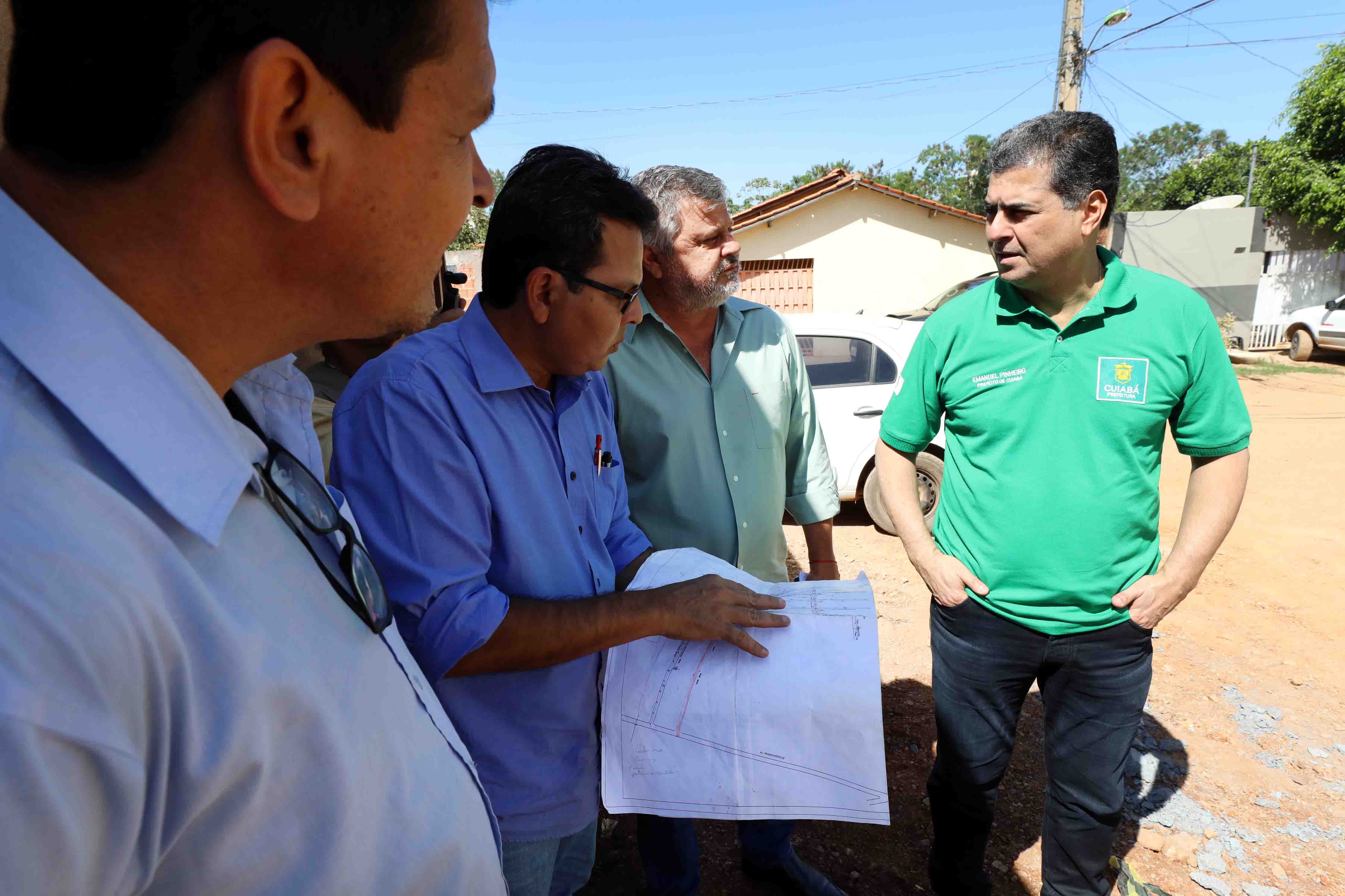 O prefeito de Cuiabá, Emanuel Pinheiro, realizou na manhã desta segunda-feira (27), uma vistoria nas obras de pavimentação asfáltica do bairro Parque Amperco. Como preconizado pela gestão, nenhuma ação de asfaltamento é realizada sem a rede de drenagem, que segue em ritmo acelerado com 40% da rede já concluída. Também vistoriaram as obras, o vice-prefeito e secretário de Obras Públicas, José Roberto Stopa e o vereador Kássio Coelho.