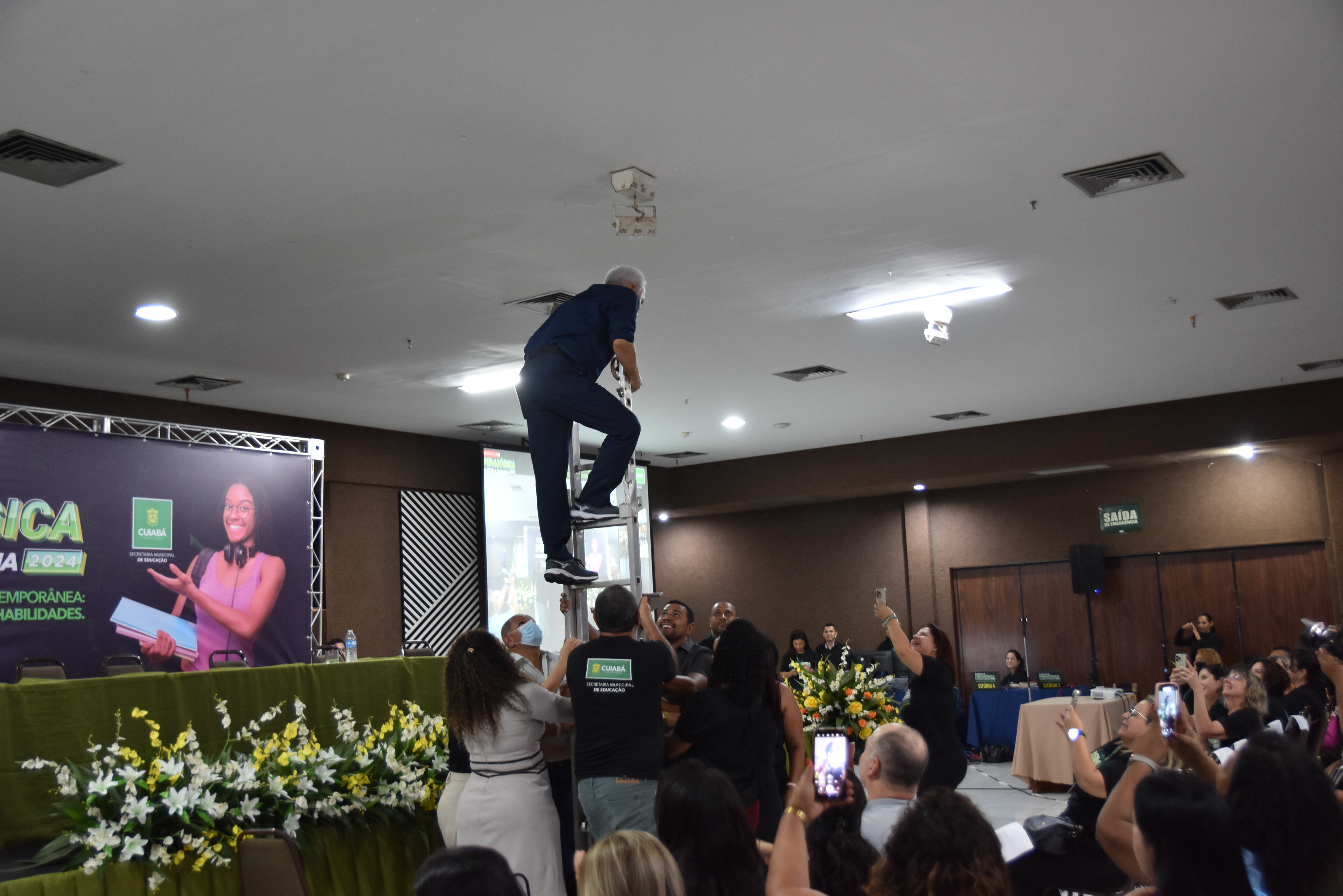 Em sua fala, o prefeito destacou os avanços da pasta, reafirmou o compromisso de respeito e valorização para com os profissionais e estudantes da rede pública, prioridades da sua gestão.