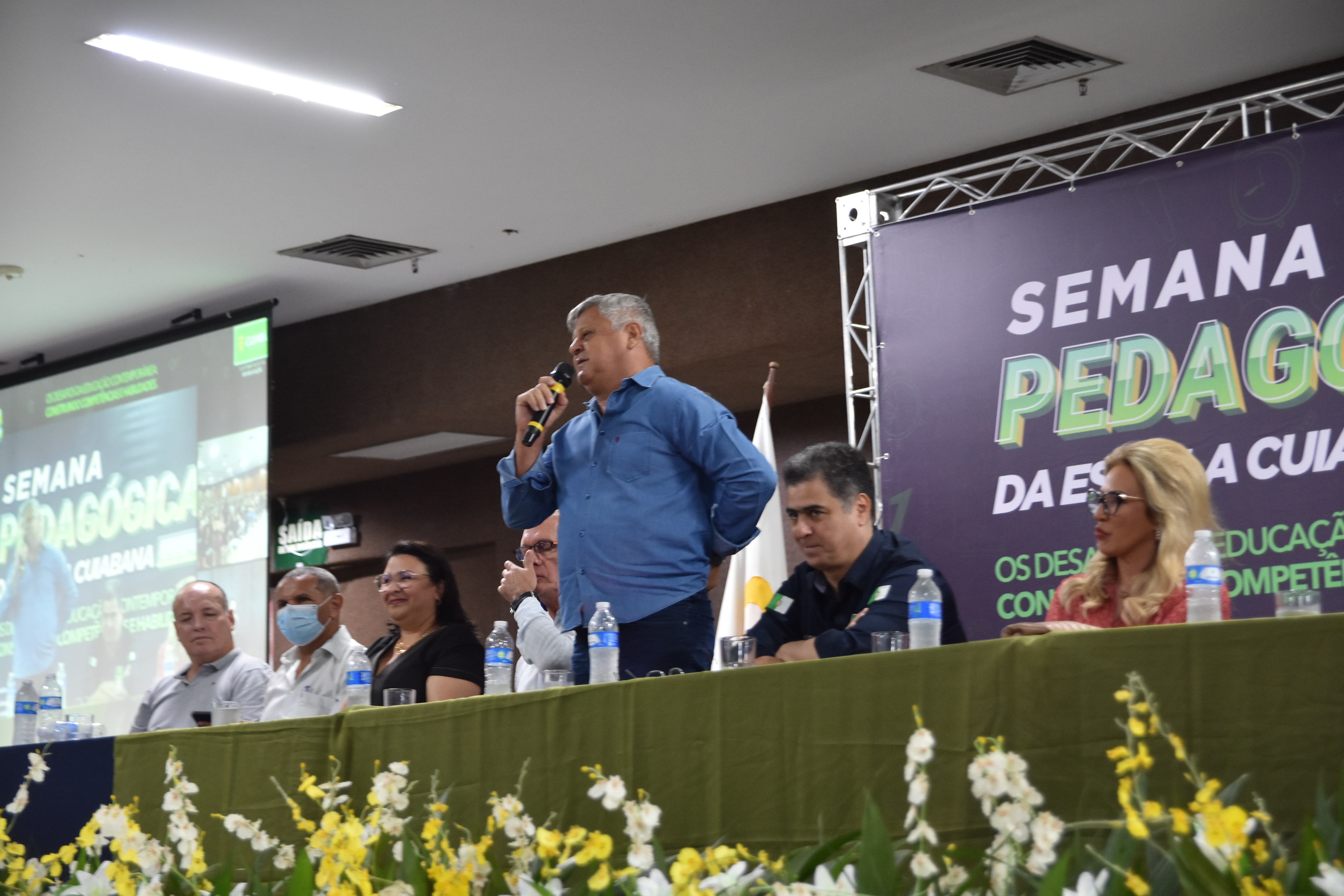 A solenidade de abertura do ano letivo contou com a participação do vice-prefeito, José Roberto Stopa, da secretária adjunta de Educação, Débora Marques Vilar, do promotor de Justiça, Miguel Slhessarenko Junior, do vereador Mário Nadaf, presidente da Comissão de Educação, Ciência e Tecnologia da Câmara Municipal de Cuiabá, da presidente do Conselho Municipal de Educação, Andrea Santos, do presidente do Sintep-Cuiabá, João Custódio, do presidente do Colegiado de Diretores da Secretaria Municipal de Educação, Ednilson Albino Carvalho, equipes gestoras das 170 unidades educacionais, entre outros.