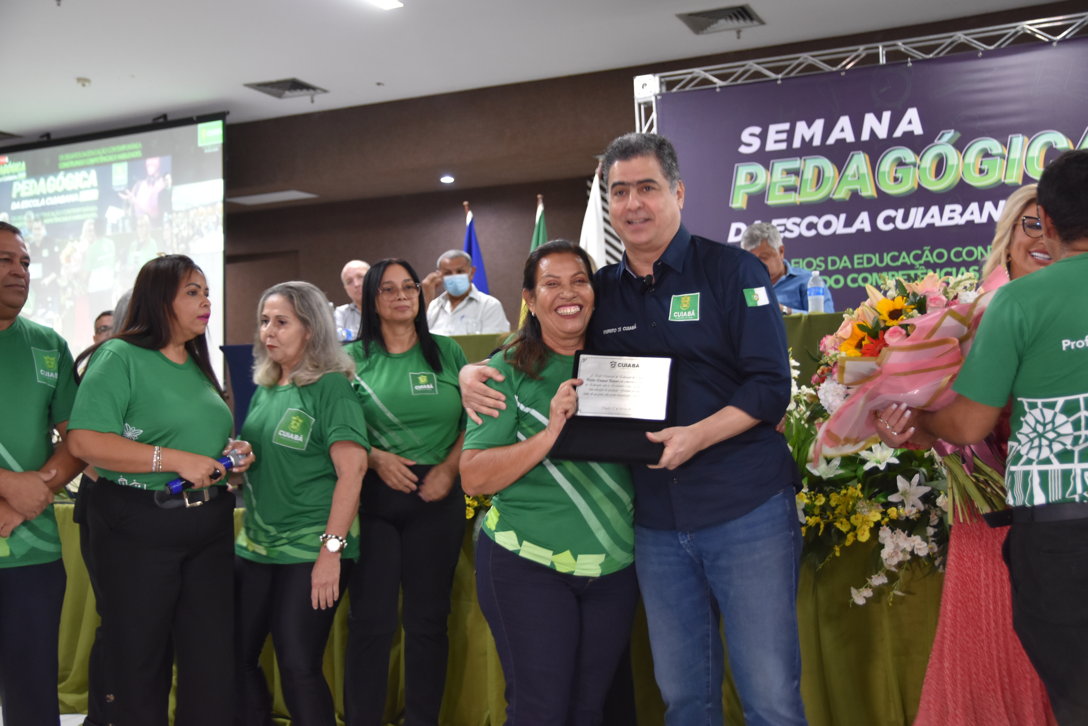 “A educação cuiabana é hoje referência em todo o Brasil”, disse Emanuel Pinheiro após uma quebra de protocolo para receber uma homenagem de toda a rede, pelas mãos de diretores escolares que atuam na rede desde o início da gestão, em 2017.