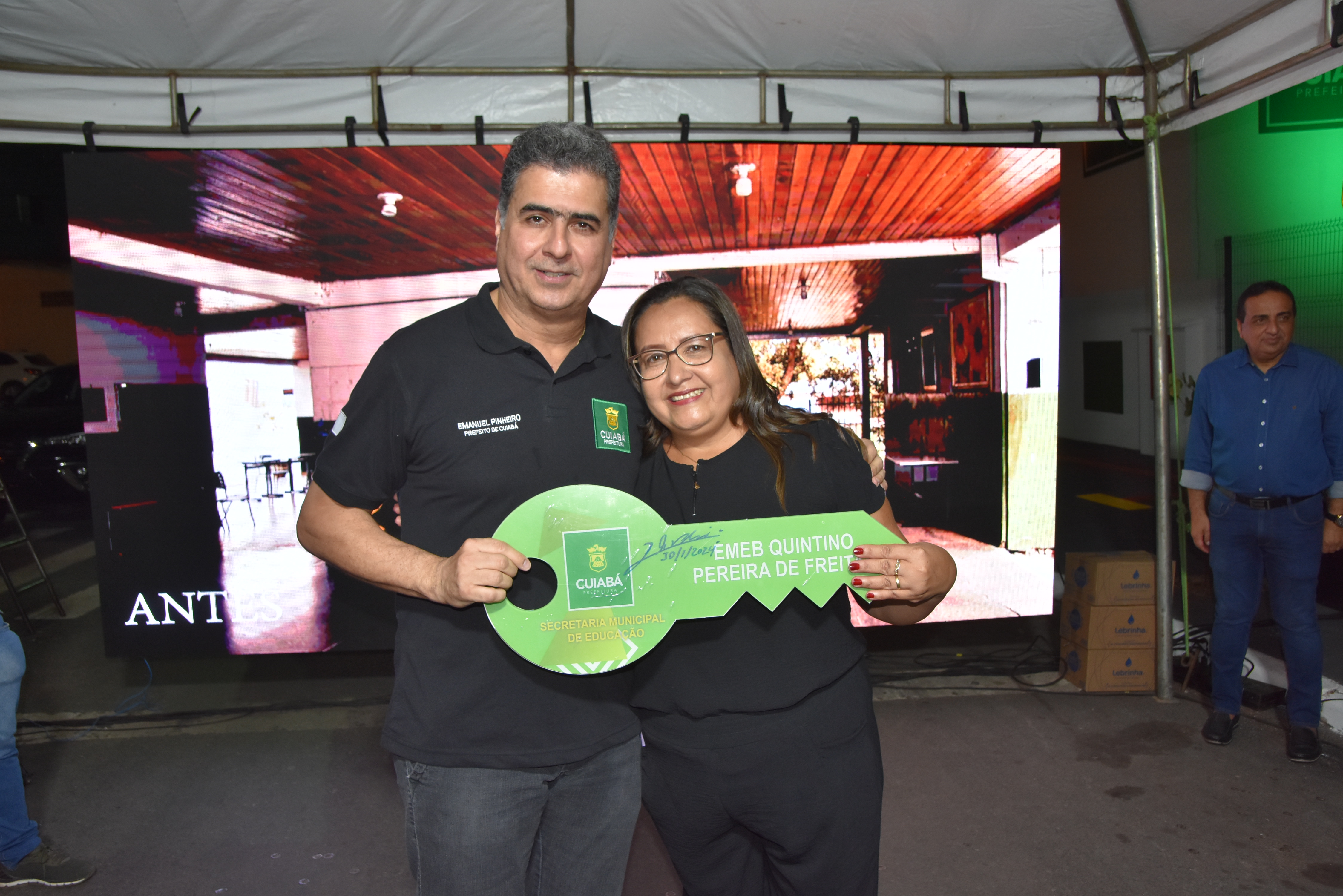 O prefeito de Cuiabá, Emanuel Pinheiro, entregou na noite desta terça-feira (30), no bairro Canjica, a 25ª unidade do seu segundo mandato, totalmente reformada. A Escola Municipal de Educação Básica (EMEB) Quintino Pereira de Freitas atende crianças do Jardim II e Pré-Escola (I e II), na faixa etária de 3 a 5 anos. Com a obra, a unidade teve sua capacidade de atendimento ampliada e passa a contar com estruturas de acessibilidade, promovendo a inclusão para pessoas com deficiência.