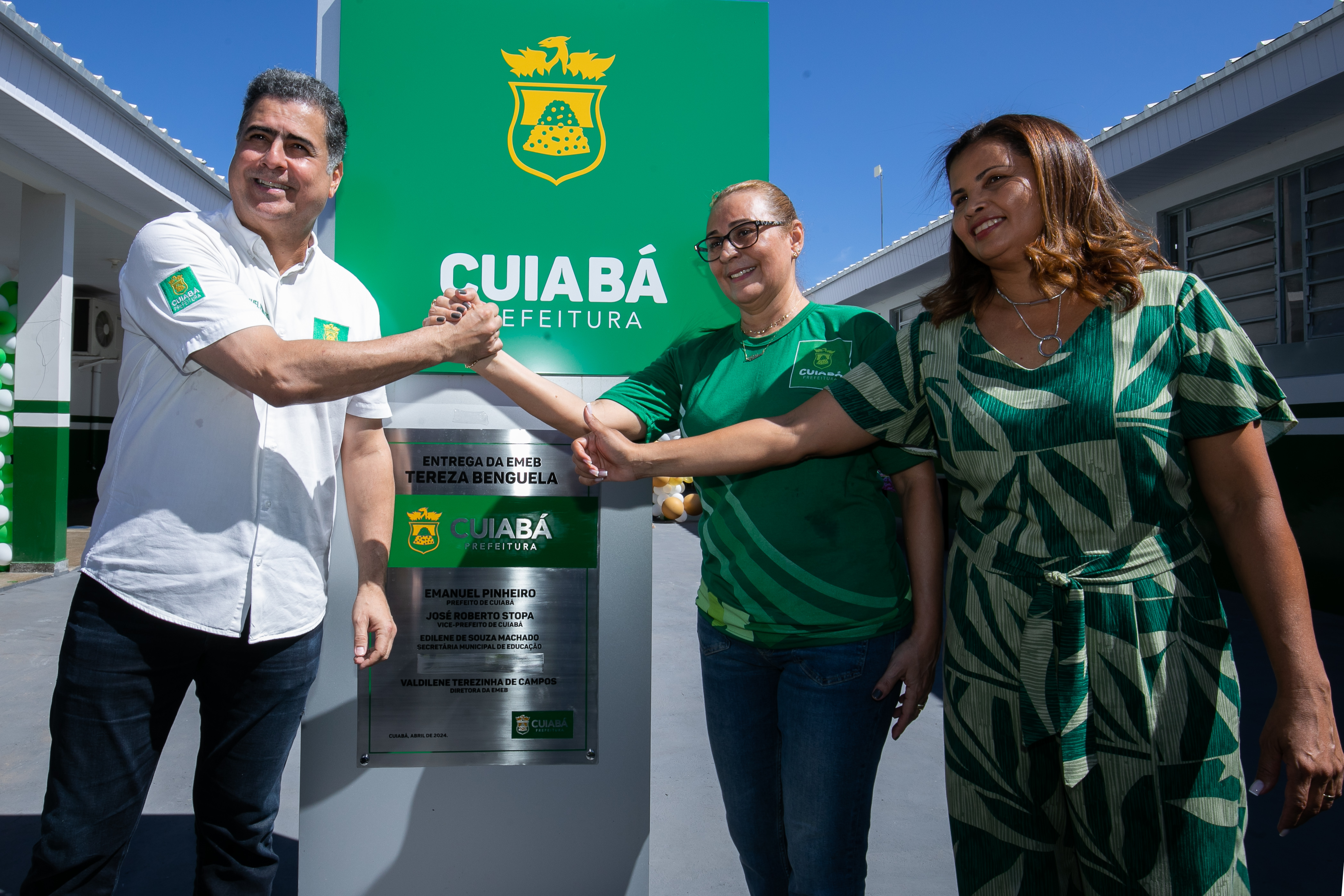 Durante a entrega na manhã desta segunda-feira (29) da obra de readequação da Escola Municipal de Educação Básica (EMEB) Tereza Benguela, localizada no bairro Jardim Comodoro, o prefeito de Cuiabá, Emanuel Pinheiro, falou sobre os avanços de sua gestão na Educação. O gestor destacou programas como o "Enxergar é Humanizar" e o "Climatizar é Humanizar", a entrega do "Kit Material Escolar" (agora obrigatório para os próximos prefeitos) e do "Uniforme Escolar Completo" para todos os mais de 58 mil estudantes atendidos na rede pública municipal de Cuiabá, e disse que até o final de seu mandato, irá entregar à população novas unidades.