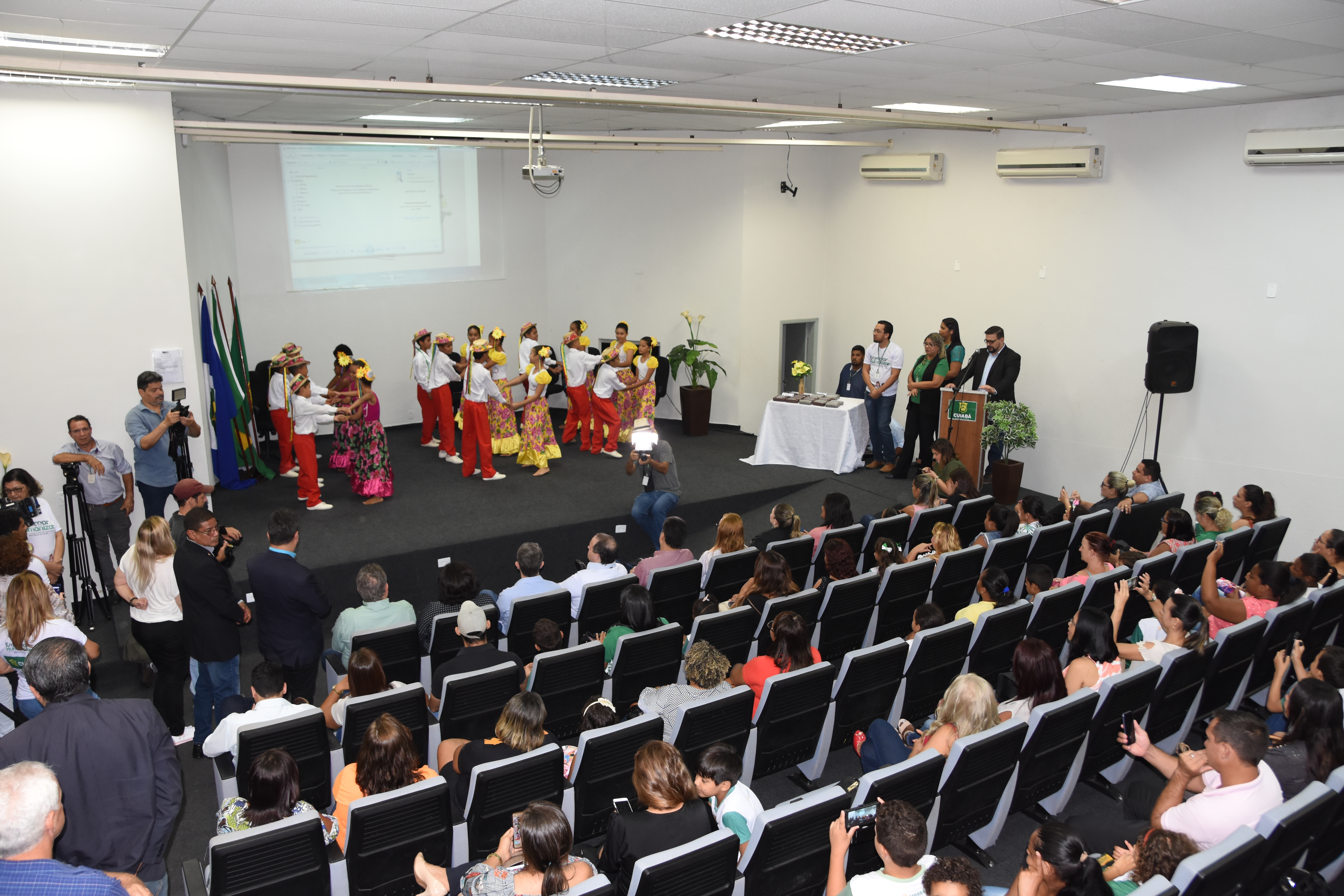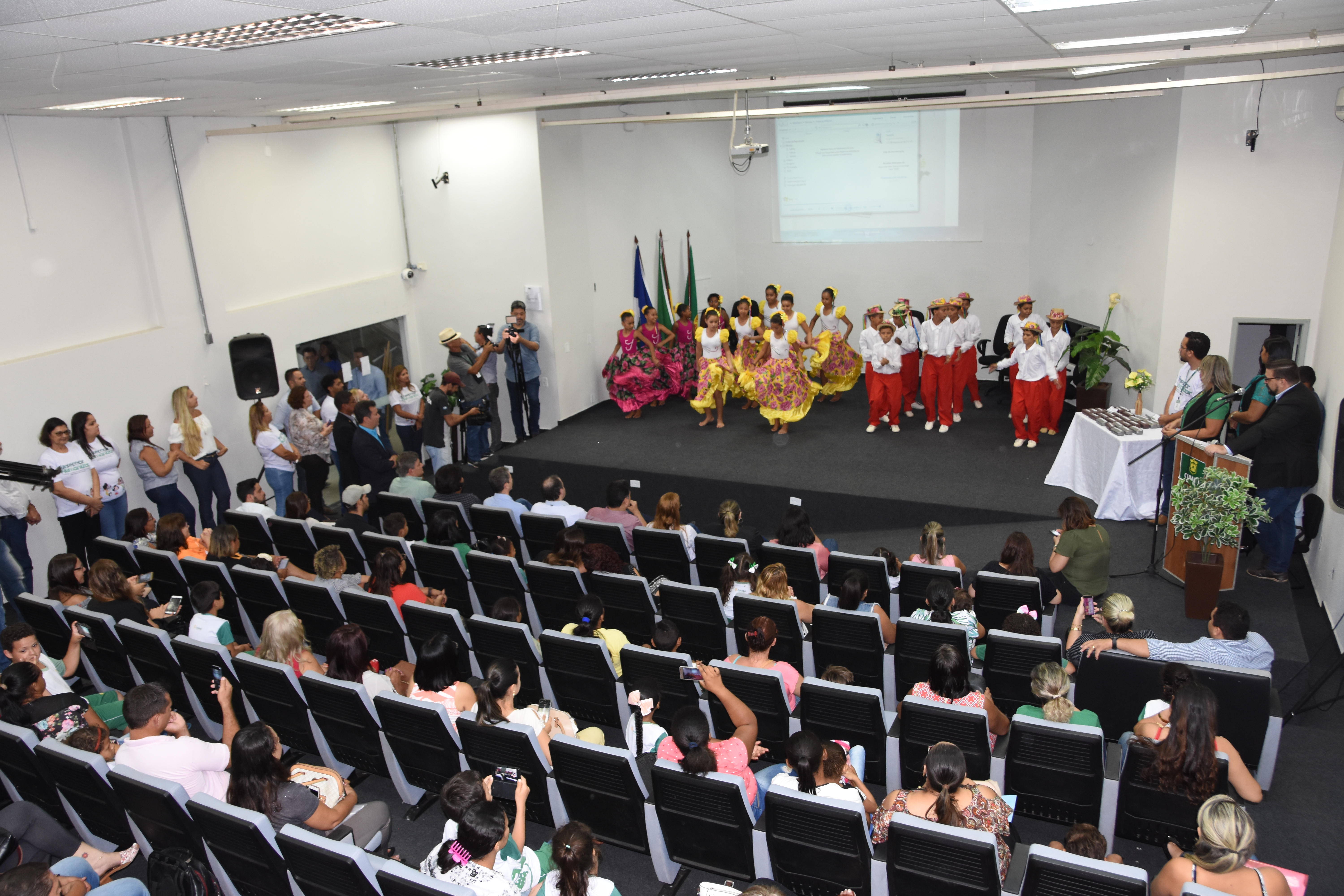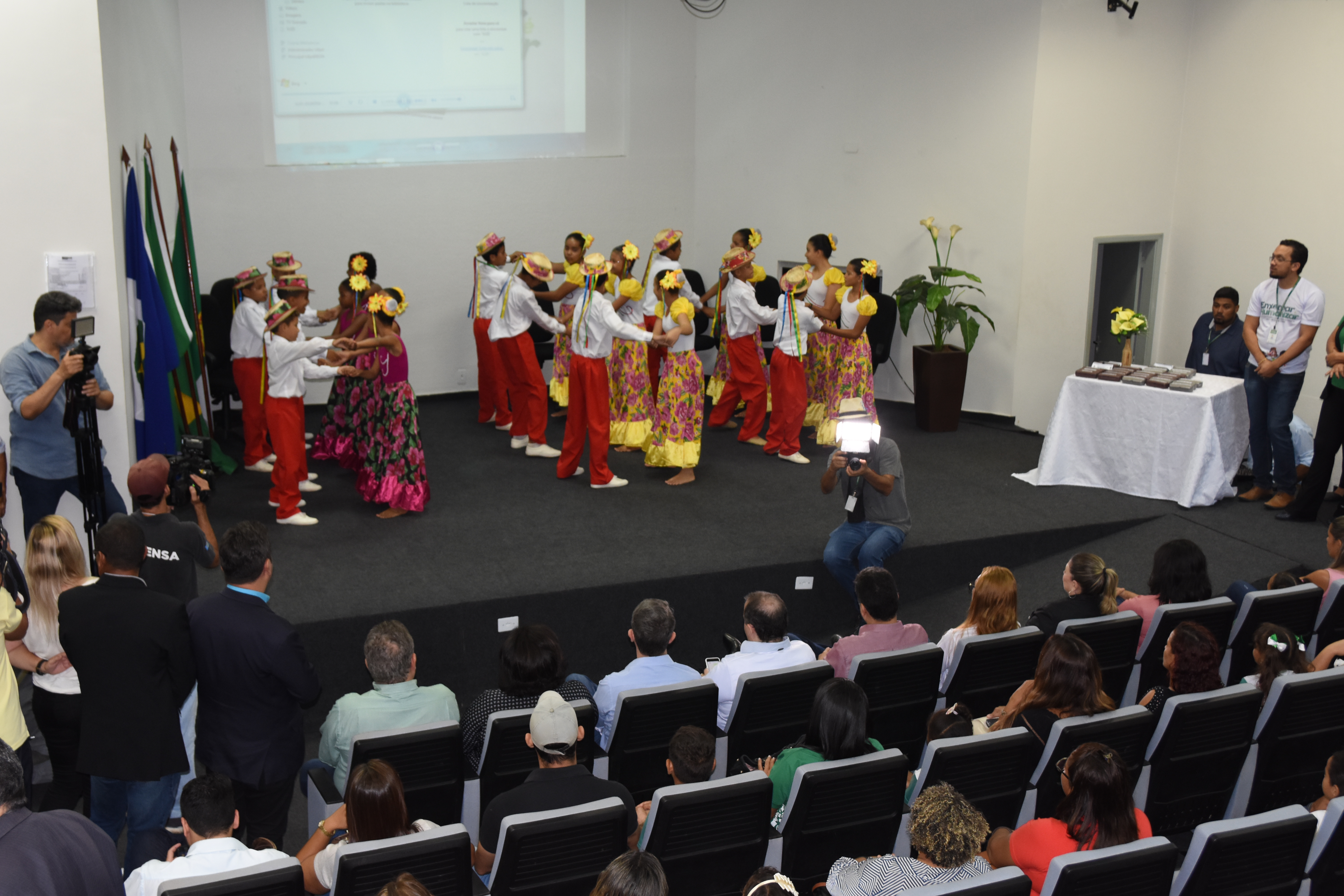 Durante o evento, um grupo de alunos da EMEB Maria Tomich Monteiro da Silva apresentou um número de siriri.