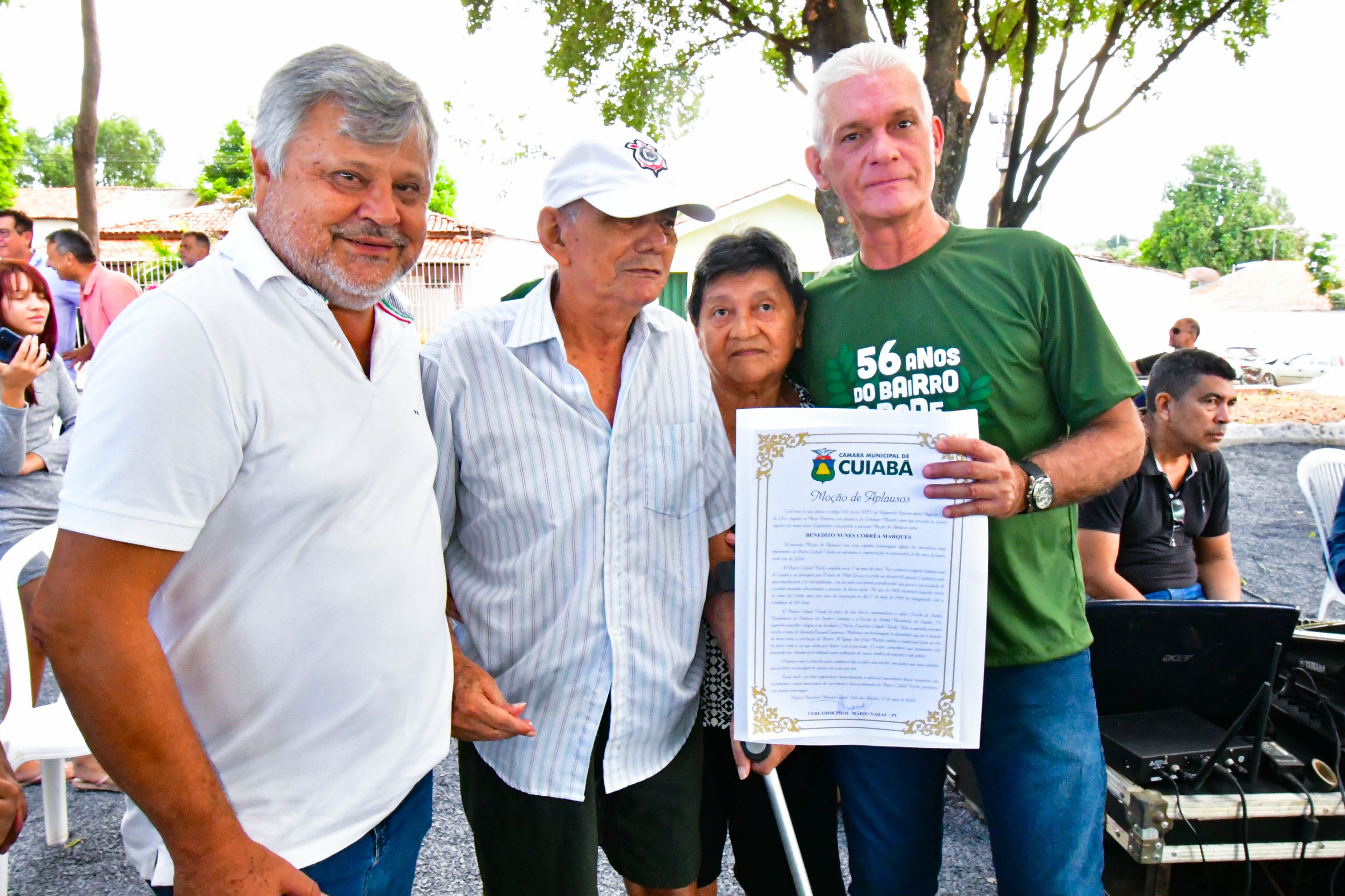 A solenidade integrou a programação festiva de aniversário do bairro que teve bênçãos do padre Beto, da comunidade, moções de aplausos a 23 moradores antigos por indicação do vereador Mário Nadaf e apresentações culturais ao longo do dia e início da noite.