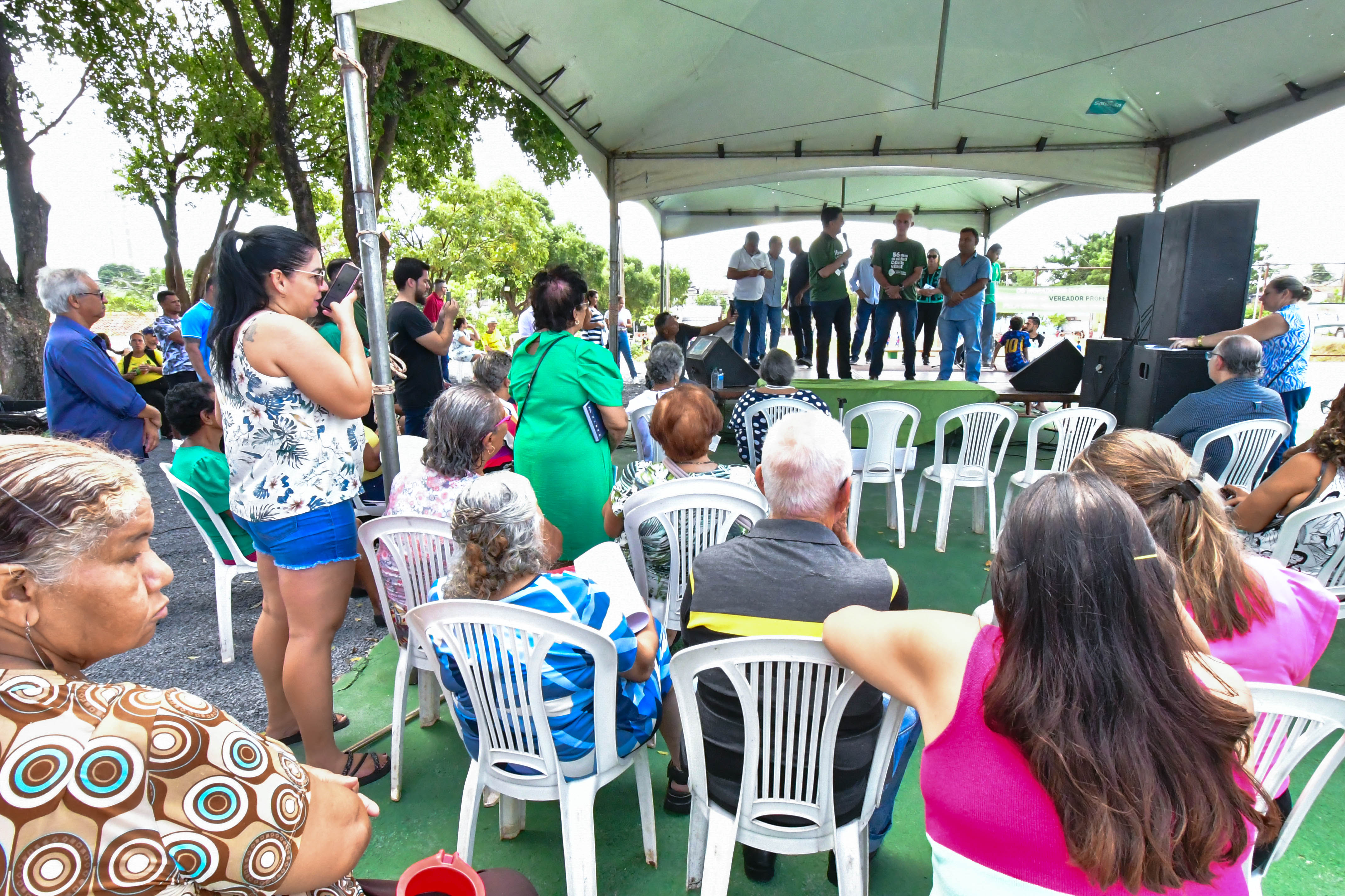 "É um trabalho em equipe que estamos entregando. Vocês lembram como era essa área, como era esse espaço? Transformamos o espaço largado, sujo, exposto à insegurança, a marginalidade e transformamos em uma linda obra de lazer, de entretenimento, de melhoria de qualidade de vida da população, uma área para todas as idades, com iluminação LED, pista de caminhada, melhoria do campo de futebol, aparelhos de ginástica para melhor idade, parquinho para as crianças, além da biblioteca para pessoas investirem ainda mais na cultura e educação. Tudo isso é cuidado com a vida das pessoas. Uma área dessa não valoriza só o bairro, os imóveis e o espaço público. O ganho maior é na valorização da qualidade de vida da população", destacou o prefeito Emanuel Pinheiro.
