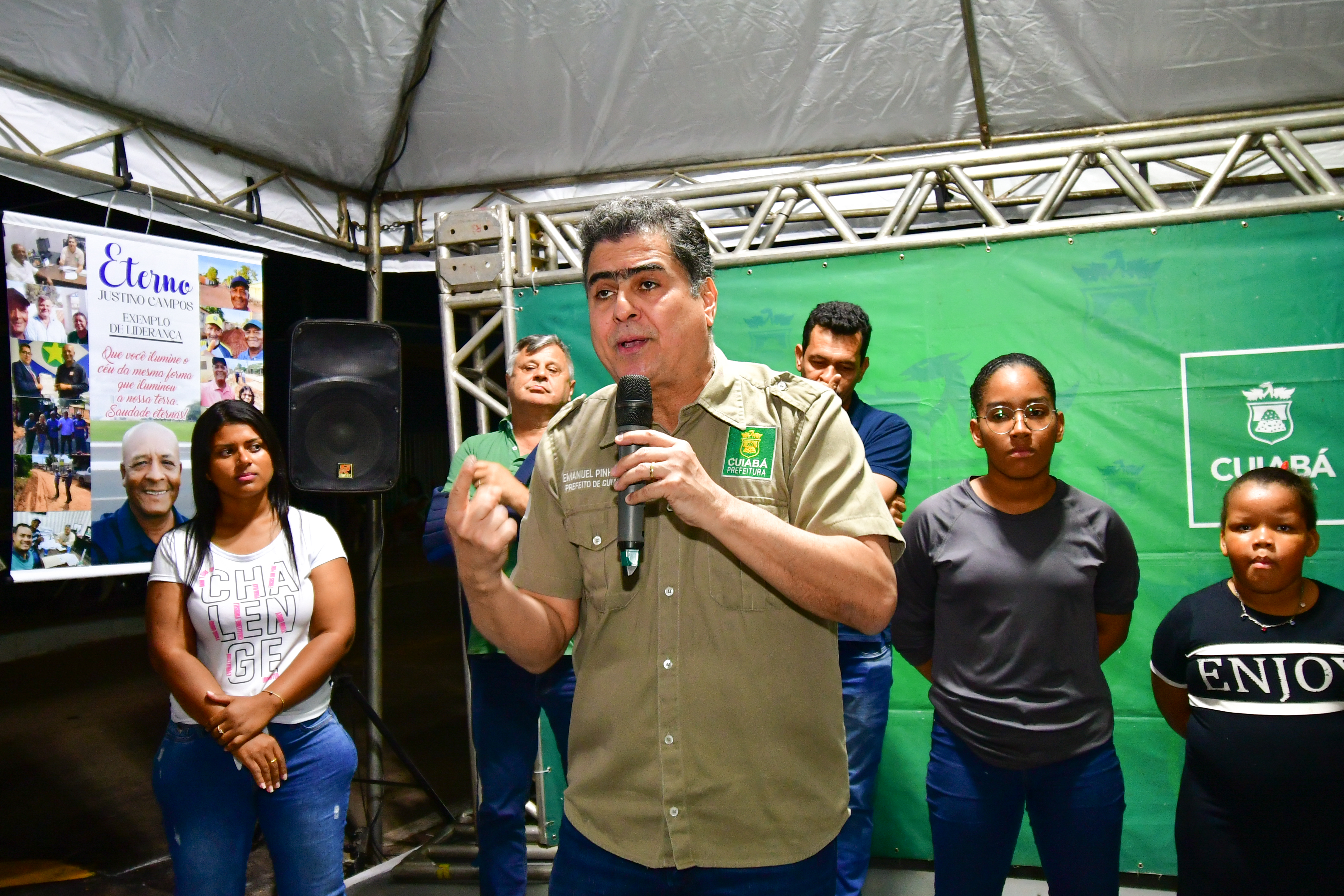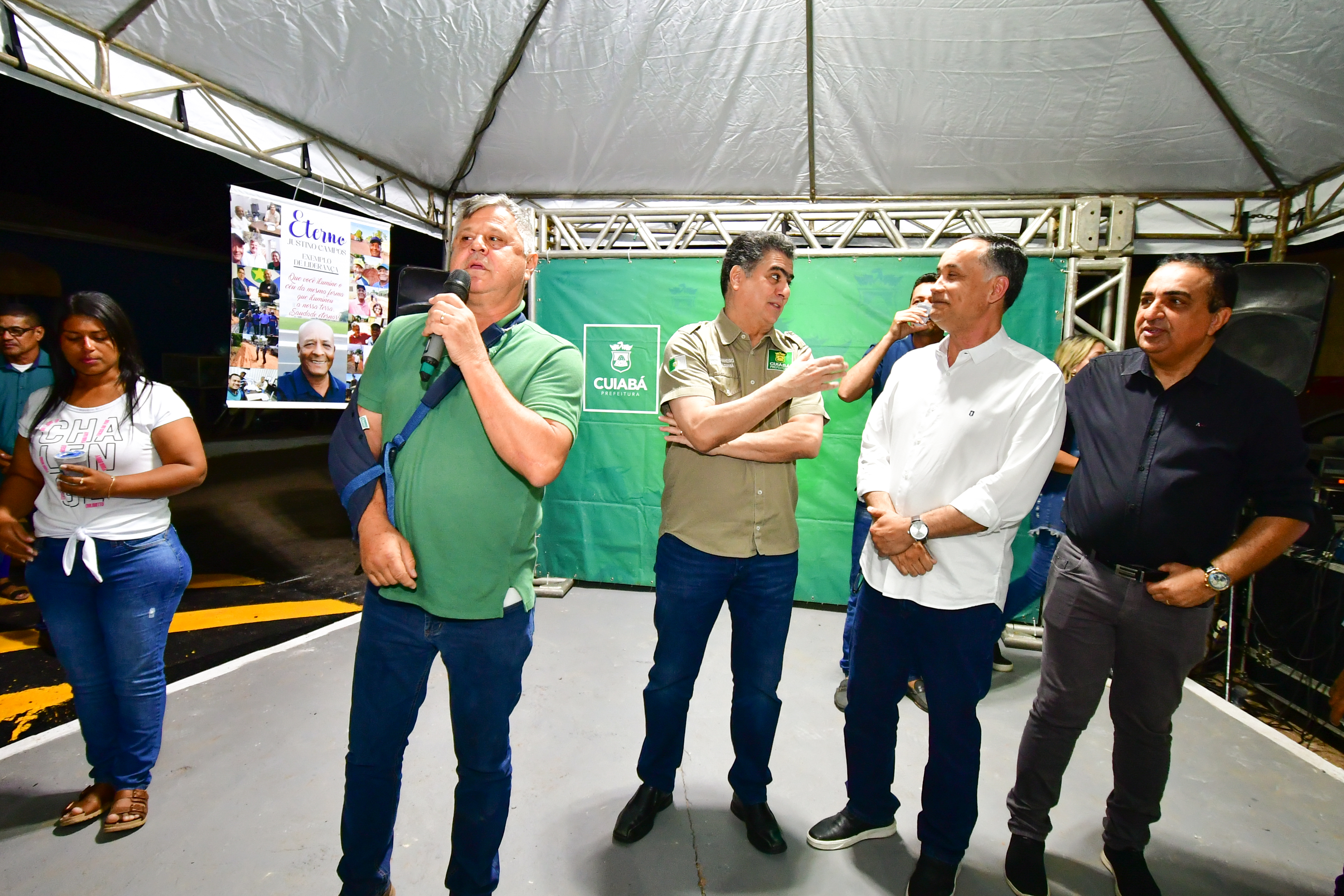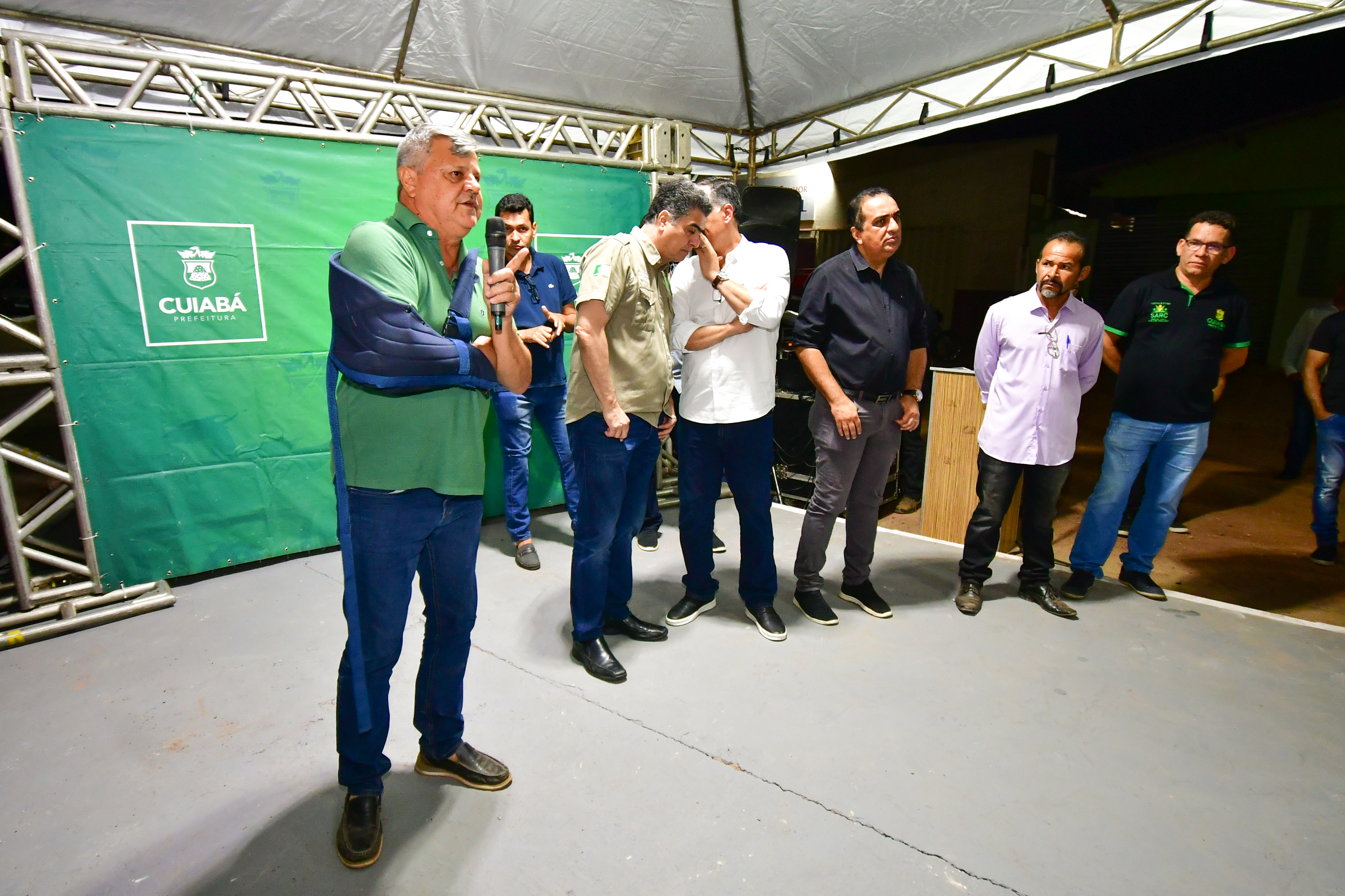"É uma realização estar no mesmo ritmo de sempre há 6 anos e 6 meses, entregando obras e beneficiando bairros mais distantes do centro. É uma humanização cada vez maior e a gestão promove a justiça e inclusão social. Eu priorizo os bairros mais distantes e estamos com obras aqui, e no São Gonçalo III e no Jr. Presidente II e demais regiões. Quero lembrar que temos um deputado federal, o Emanuelzinho, que sempre nos ajuda com emendas parlamentares, e mesmo não estando aqui, a emenda dele está aqui. Quero agradecer pelo apoio dos senadores Wellington Fagundes e o também ministro Carlos Fávaro, que ajudaram com emendas. Hoje, quero também homenagear o Justino Campos (o Cabecinha), esse líder comunitário que deixou um enorme legado para esta região, ele era um apaixonado pelo bairro, e aqui comigo, a neta dele e afilhada representando esse grande homem. Fica essa homenagem eternizada do bom comunitário e grande homem. Junto com o vereador Luís Cláudio iremos dar o nome da principal avenida do bairro, a C, a ele e também do Centro Comunitário", comentou o prefeito.