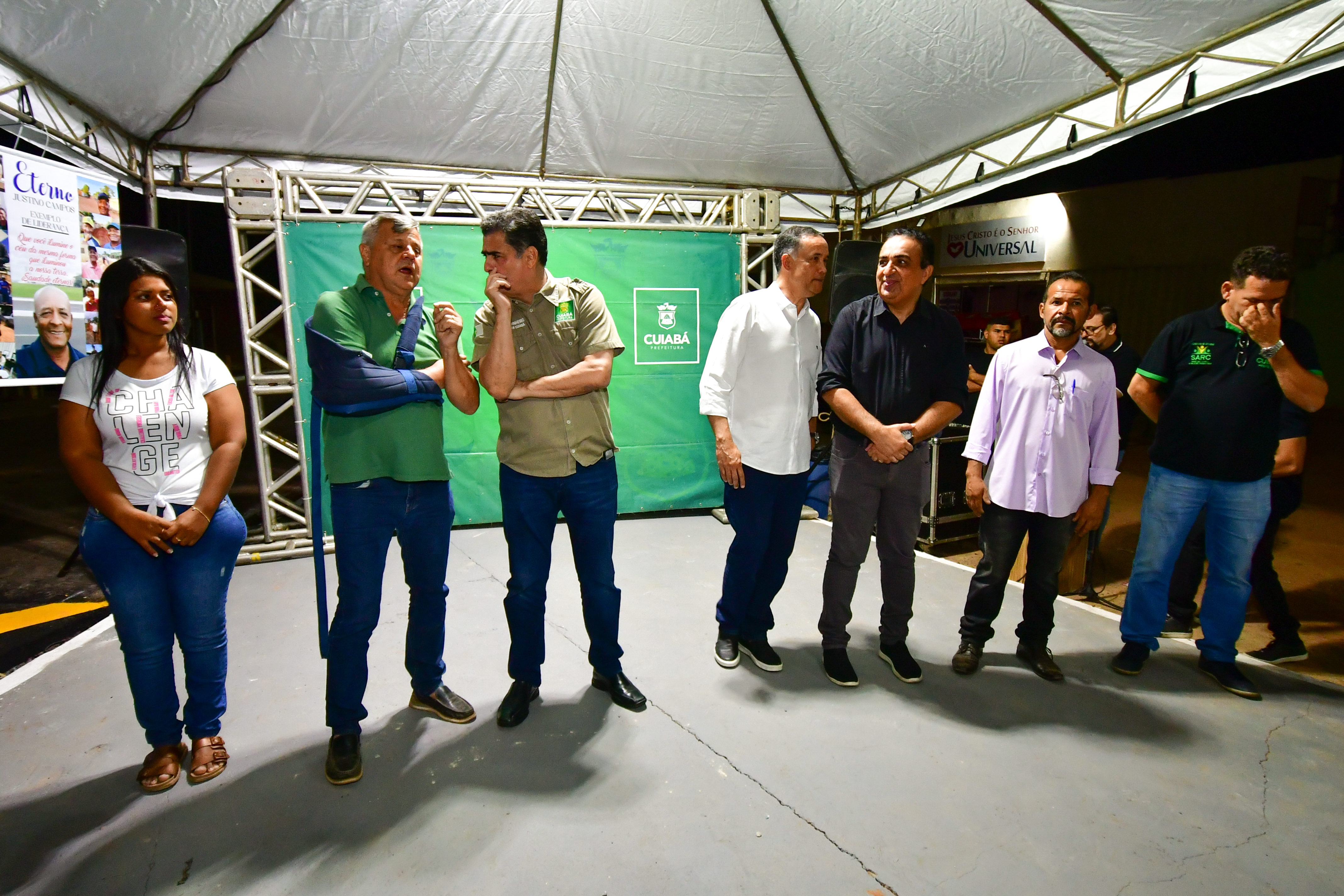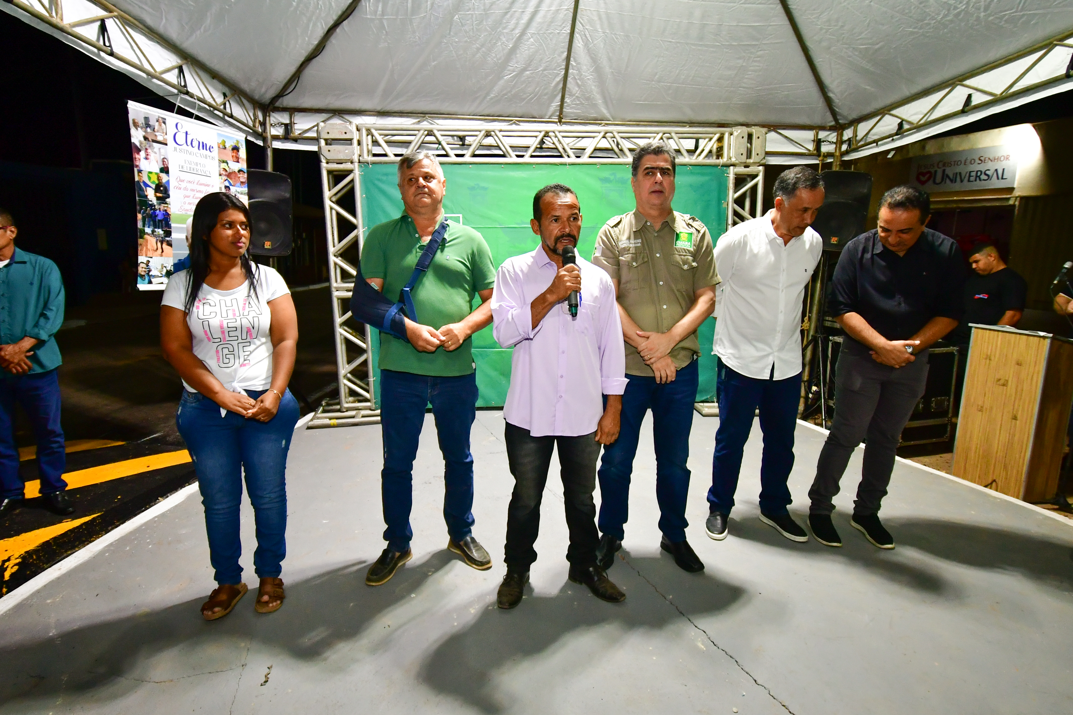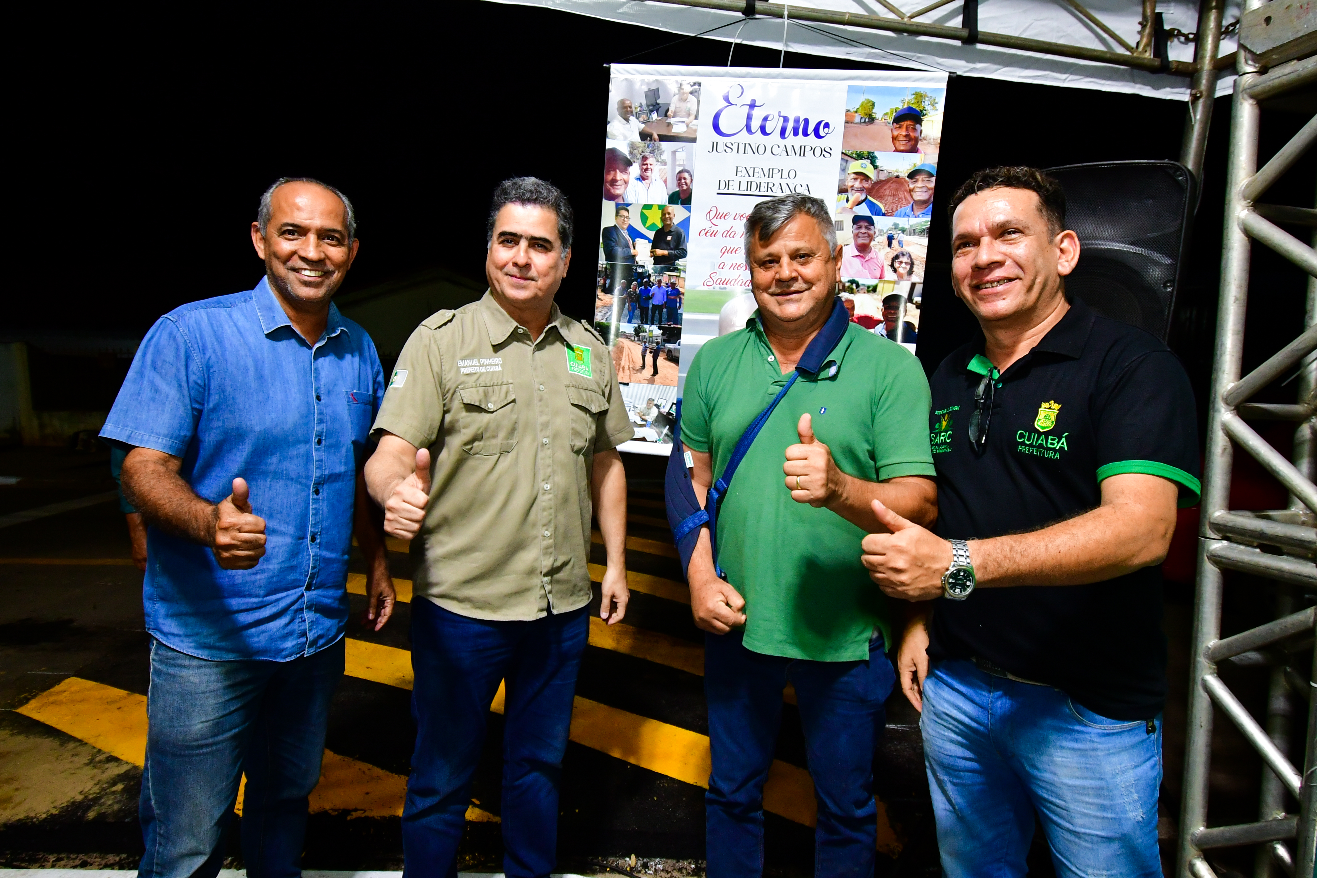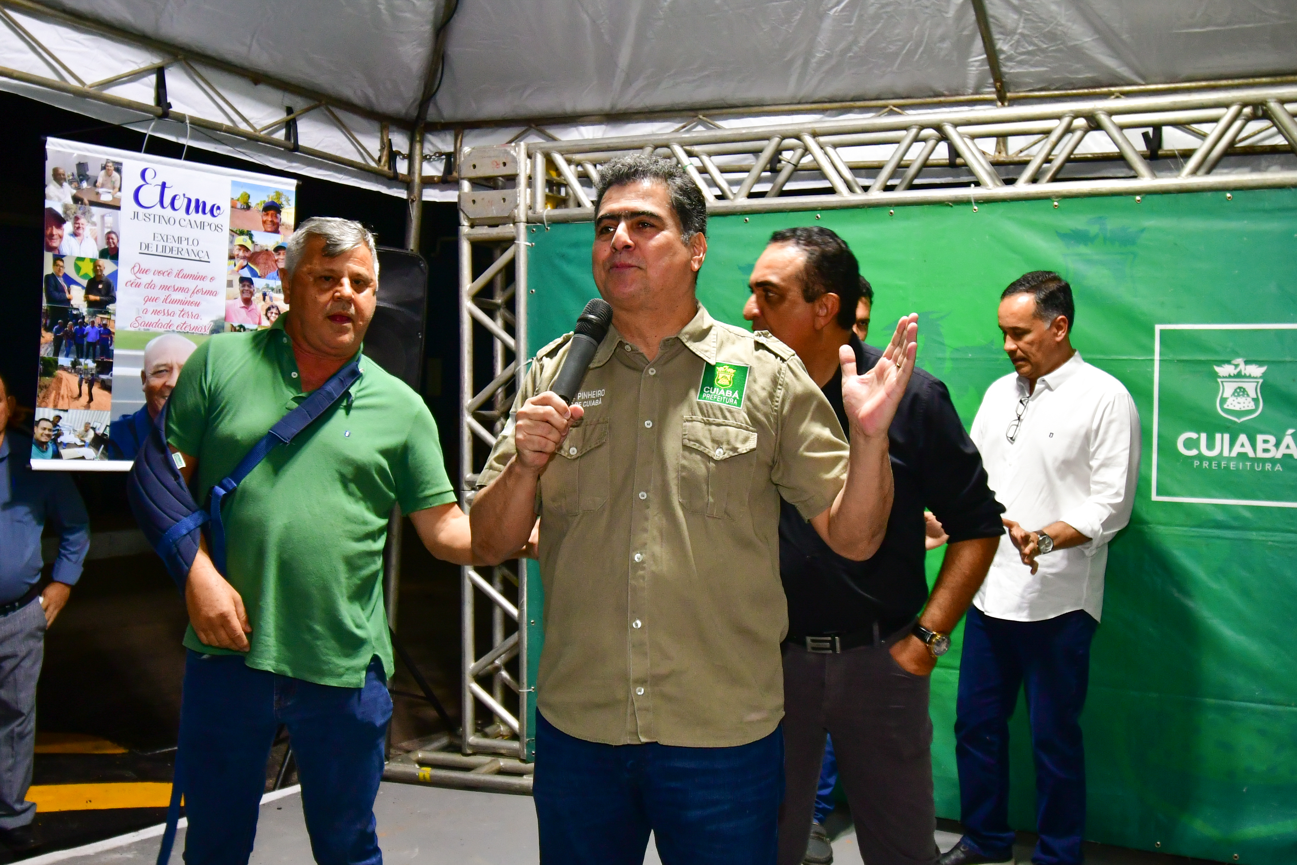 "É uma realização estar no mesmo ritmo de sempre há 6 anos e 6 meses, entregando obras e beneficiando bairros mais distantes do centro. É uma humanização cada vez maior e a gestão promove a justiça e inclusão social. Eu priorizo os bairros mais distantes e estamos com obras aqui, e no São Gonçalo III e no Jr. Presidente II e demais regiões. Quero lembrar que temos um deputado federal, o Emanuelzinho, que sempre nos ajuda com emendas parlamentares, e mesmo não estando aqui, a emenda dele está aqui. Quero agradecer pelo apoio dos senadores Wellington Fagundes e o também ministro Carlos Fávaro, que ajudaram com emendas. Hoje, quero também homenagear o Justino Campos (o Cabecinha), esse líder comunitário que deixou um enorme legado para esta região, ele era um apaixonado pelo bairro, e aqui comigo, a neta dele e afilhada representando esse grande homem. Fica essa homenagem eternizada do bom comunitário e grande homem. Junto com o vereador Luís Cláudio iremos dar o nome da principal avenida do bairro, a C, a ele e também do Centro Comunitário", comentou o prefeito.