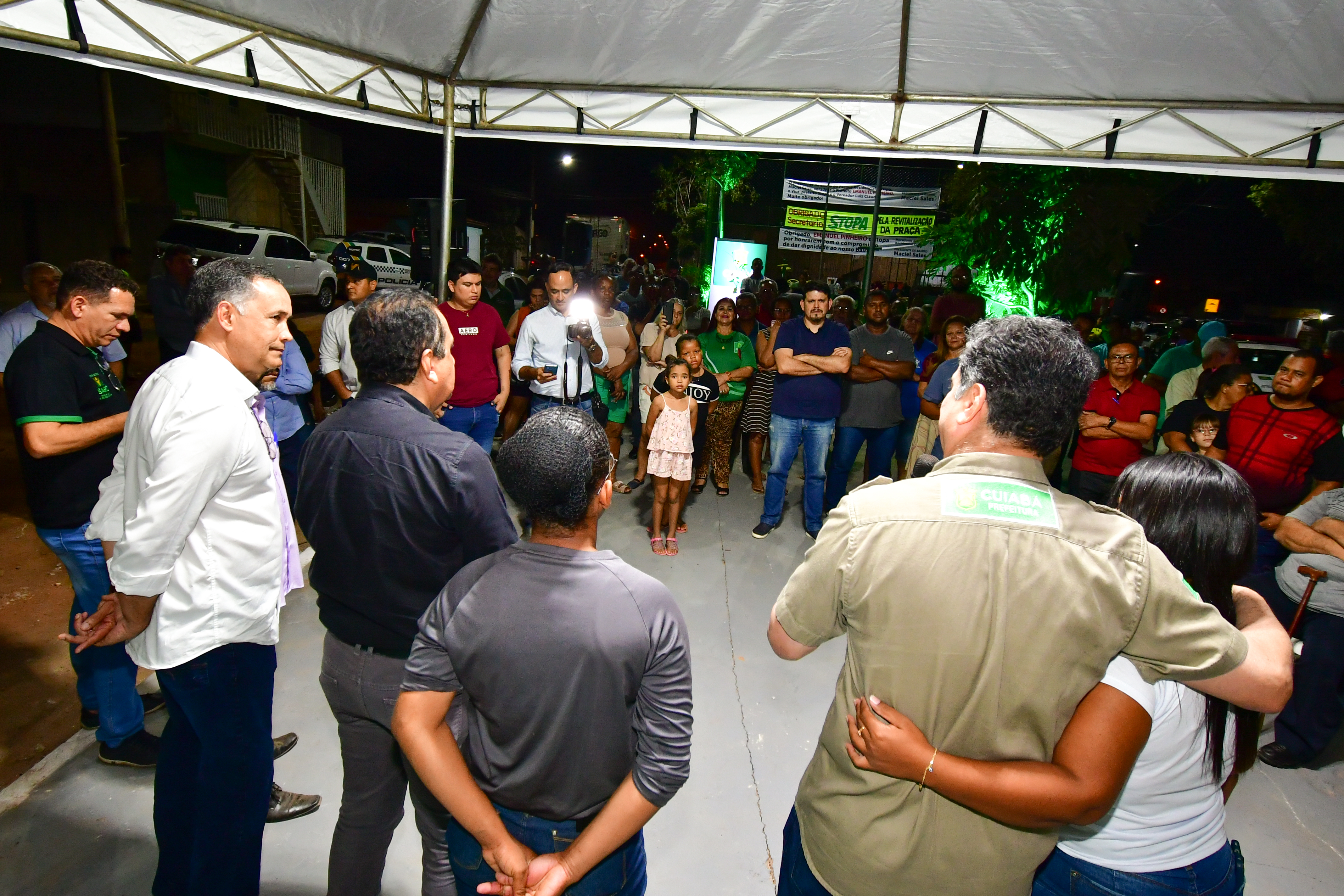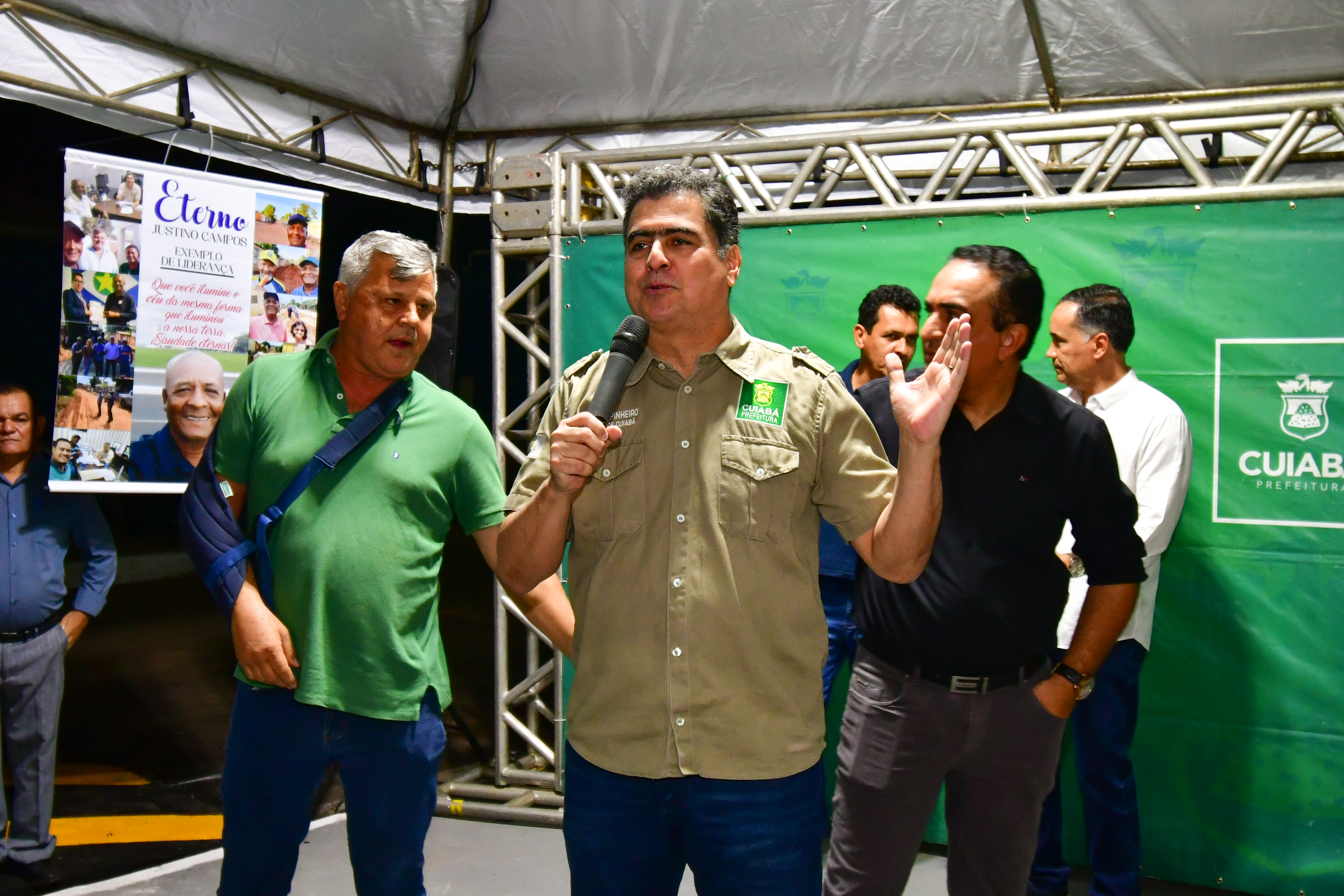 Prefeito entrega praça e pavimentação no bairro Parque Residencial Coxipó e faz homenagem ao líder comunitário Justino Campos (in memoriam)