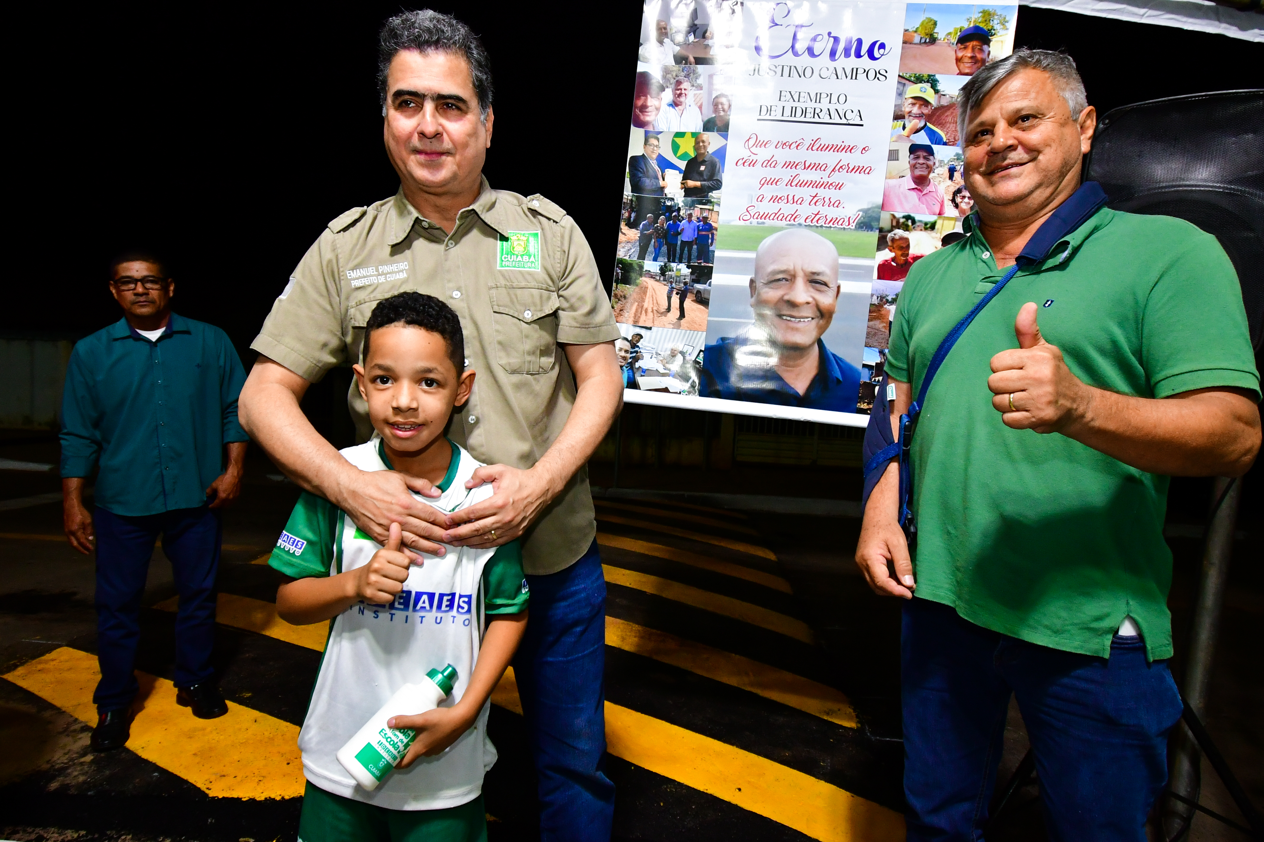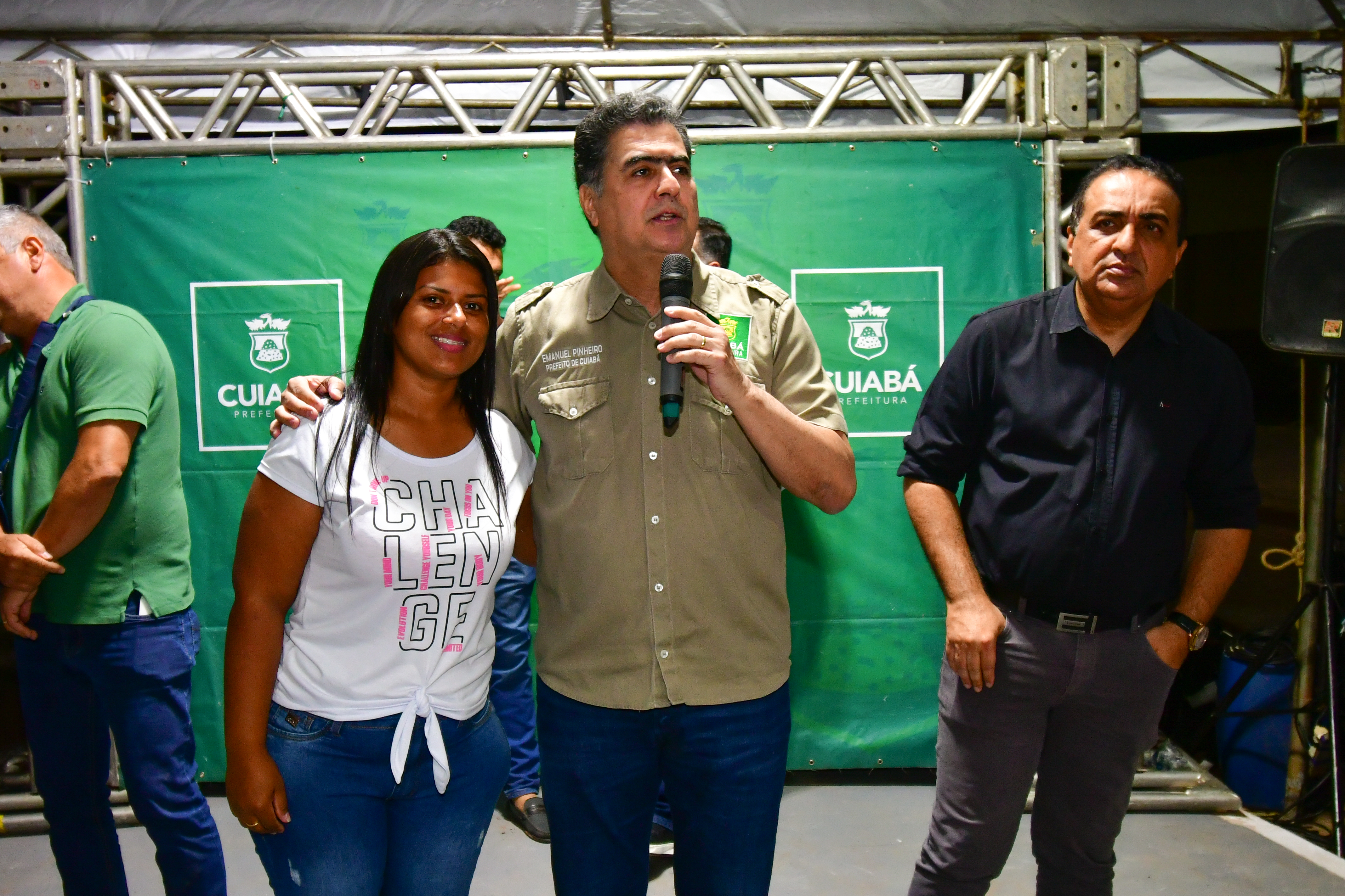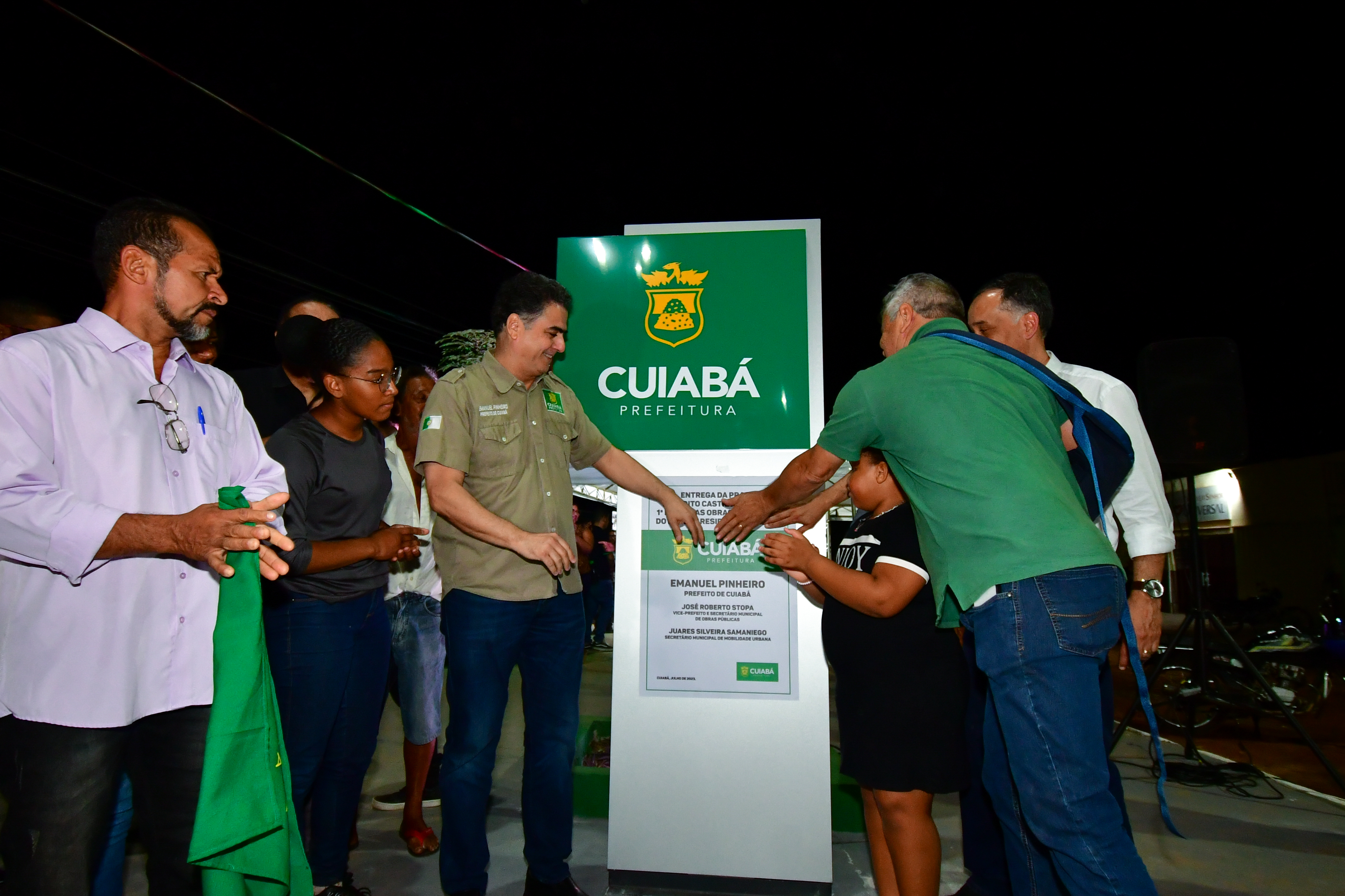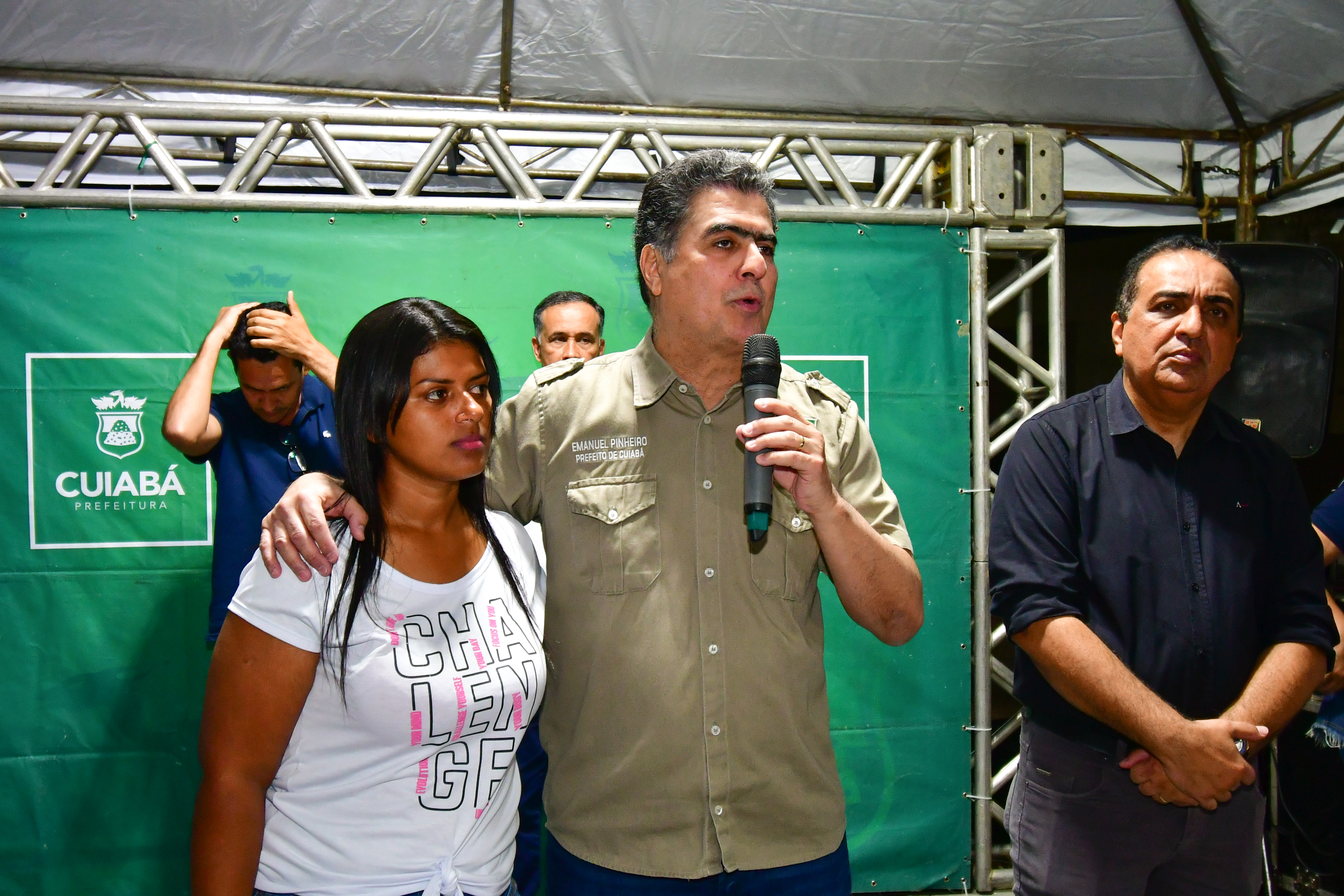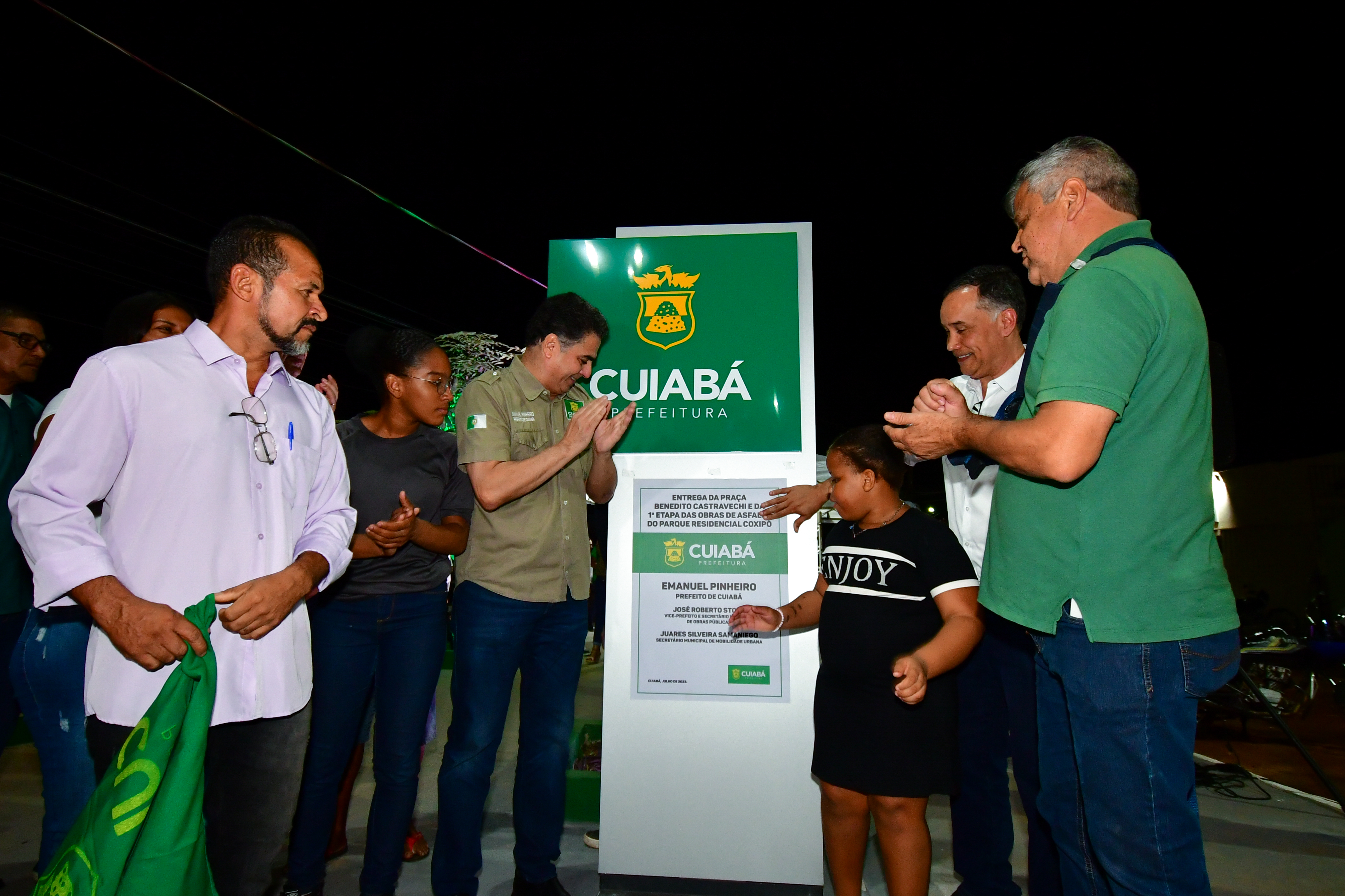 O prefeito Emanuel Pinheiro entregou, na noite desta sexta-feira (8), duas importantes obras para melhoria na qualidade de vida dos moradores do bairro Parque Residencial Coxipó, sendo elas: um quilômetro de rede de drenagem de águas pluviais e pavimentação, além da revitalização da Praça Benedito Castravechi. O gestor, acompanhado pelo vice-prefeito e secretário de Obras Públicas, José Roberto Stopa, vereadores Cezinha Nascimento, Kassio Coelho, Luís Cláudio, secretário de Governo Wilton Coelho, lideranças comunitárias e a população, aproveitaram a ocasião para homenagear o ex-líder comunitário, Justino Campos (in memoriam).