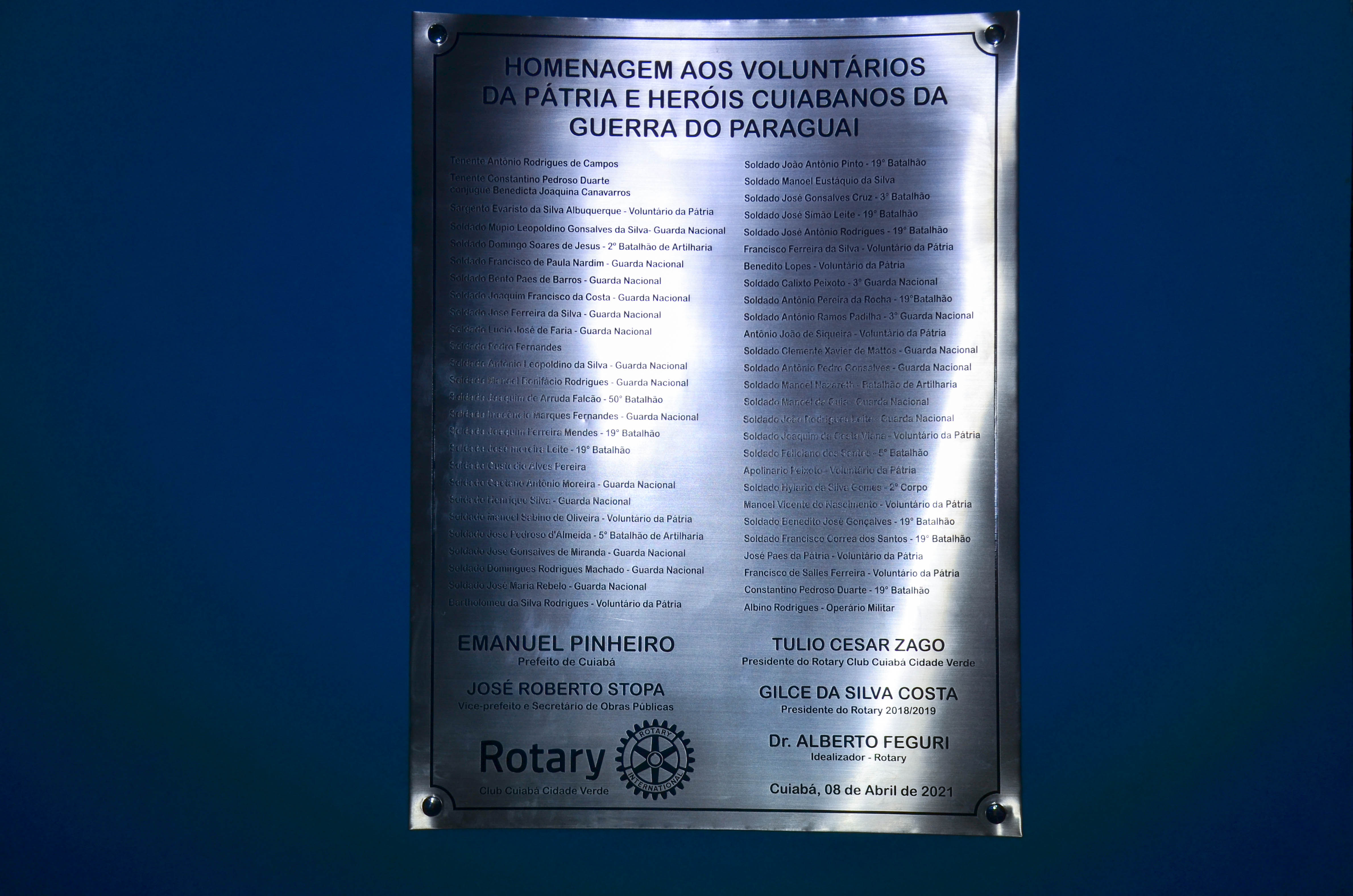 Presidente do Rotary Club Cuiabá Cidade Verde, Tulio Cesar Zago também reforça a importância da preservação da história do local. "Estamos felizes e os cuiabanos poderão conhecer um pouco dessa história. Nessa placa tem nomes de alguns desses bravos guerreiros que serão lembrados para sempre", comentou.