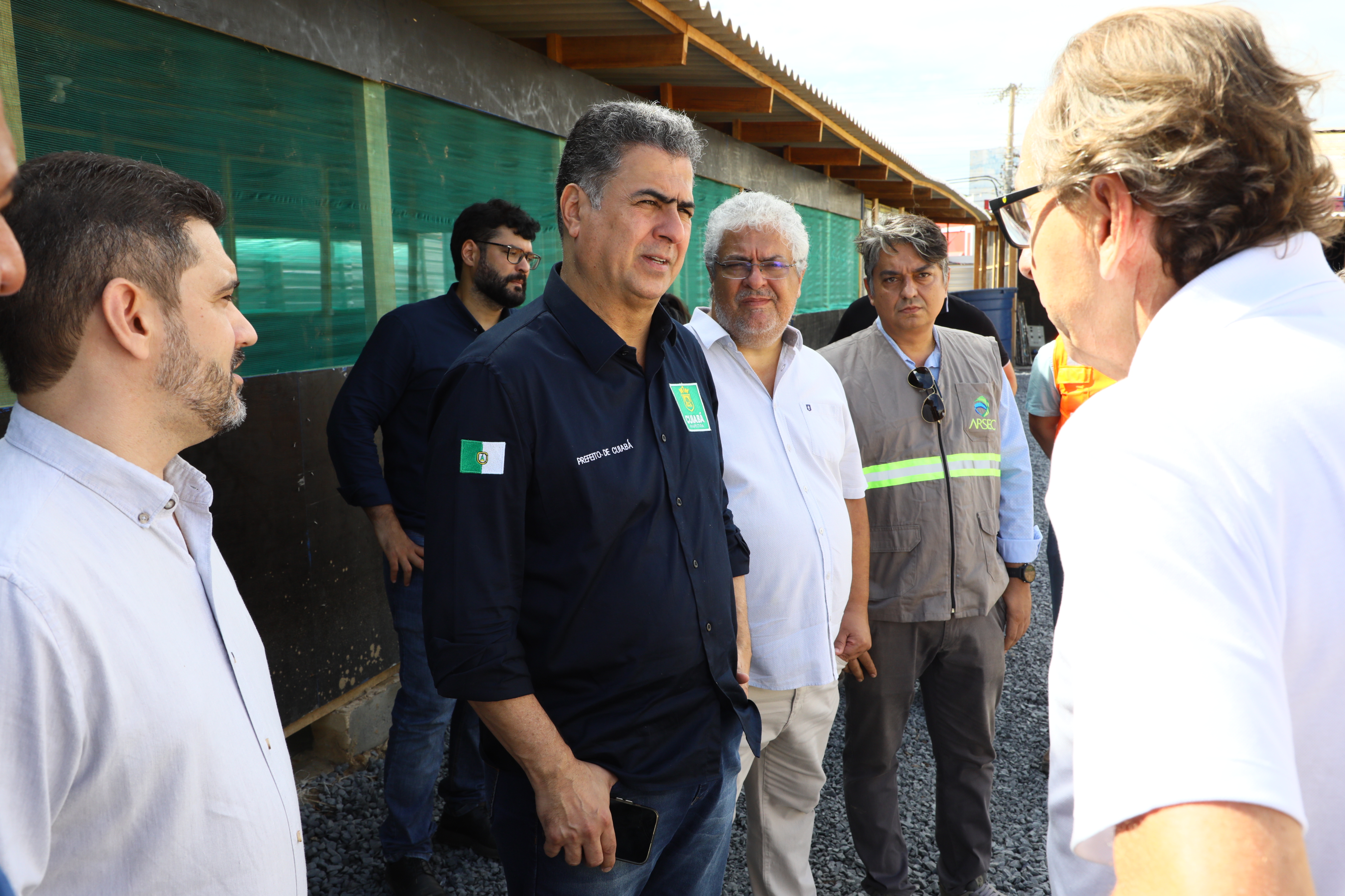 O prefeito visitou o local acompanhado do diretor-presidente da ARSEC, Vanderlúcio Rodrigues, do diretor da ARSEC, Alex de Oliveira, do secretário de Habitação e Regularização Fundiária, Wilton Coelho, do gerente-geral do Consórcio C.S. Mobi, Kenon Oliveira, e do gerente de Contratos do Mercado Municipal, Sérgio Batista.