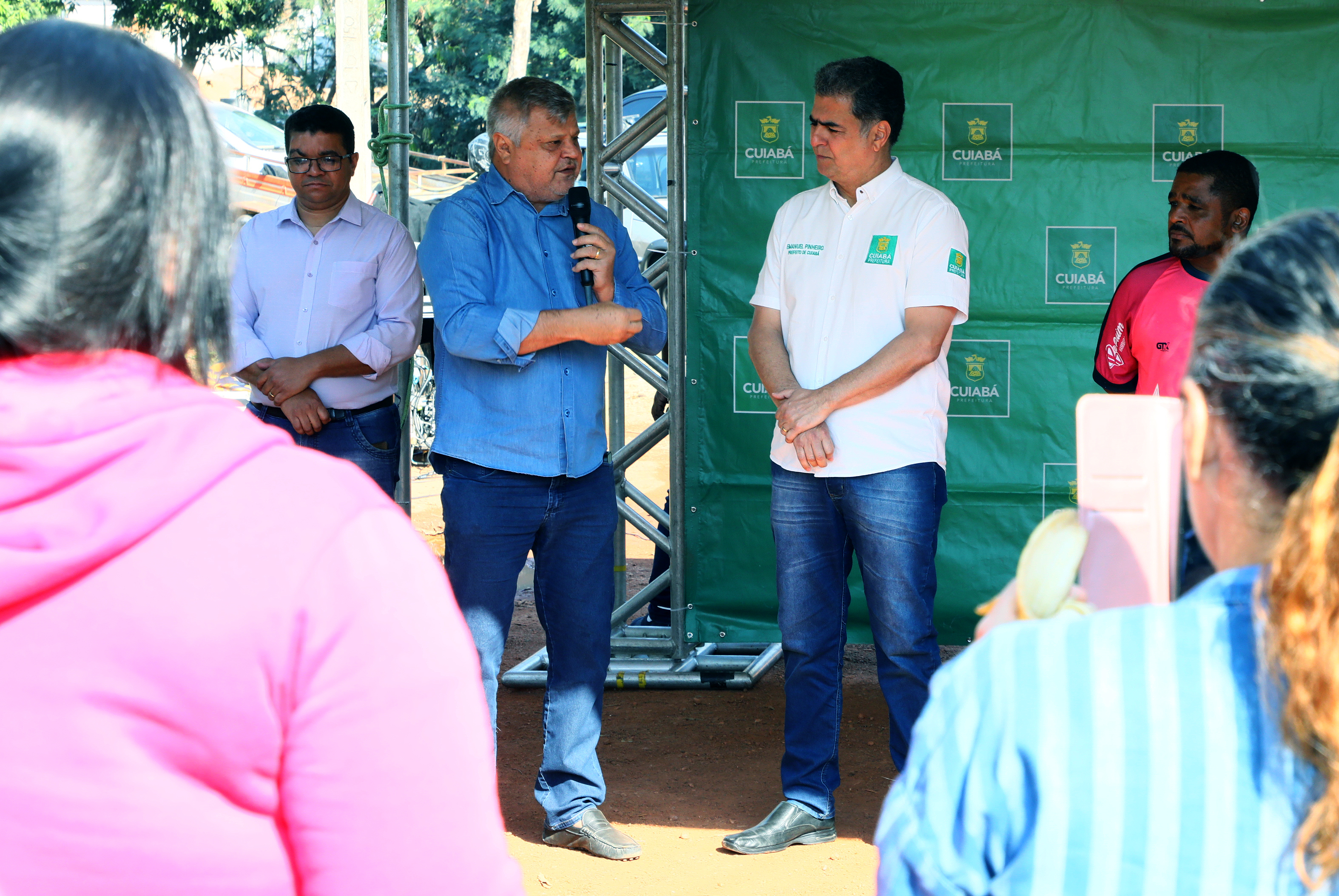 “Eu já saio da Prefeitura com o maquinário da Secretaria Municipal de Obras Públicas preparado. Assim, a obra e todos os serviços começarão imediatamente para que possamos entregar o bairro Vila Rosa completamente asfaltado, com drenagem, meio-fio e calçadas até o final de novembro. Quando digo 'com drenagem, meio-fio e calçadas', incluo também a rede de esgoto. A Águas de Cuiabá já está em contato conosco, pois estamos universalizando o esgoto em toda a cidade. A drenagem será feita e podem ficar tranquilos, pois nossa gestão está cuidando disso. Com este lançamento, estaremos próximos de alcançar quatrocentos quilômetros de asfalto realizados pela gestão Emanuel Pinheiro, tanto no primeiro quanto no segundo mandato, em Cuiabá”, declarou o prefeito.