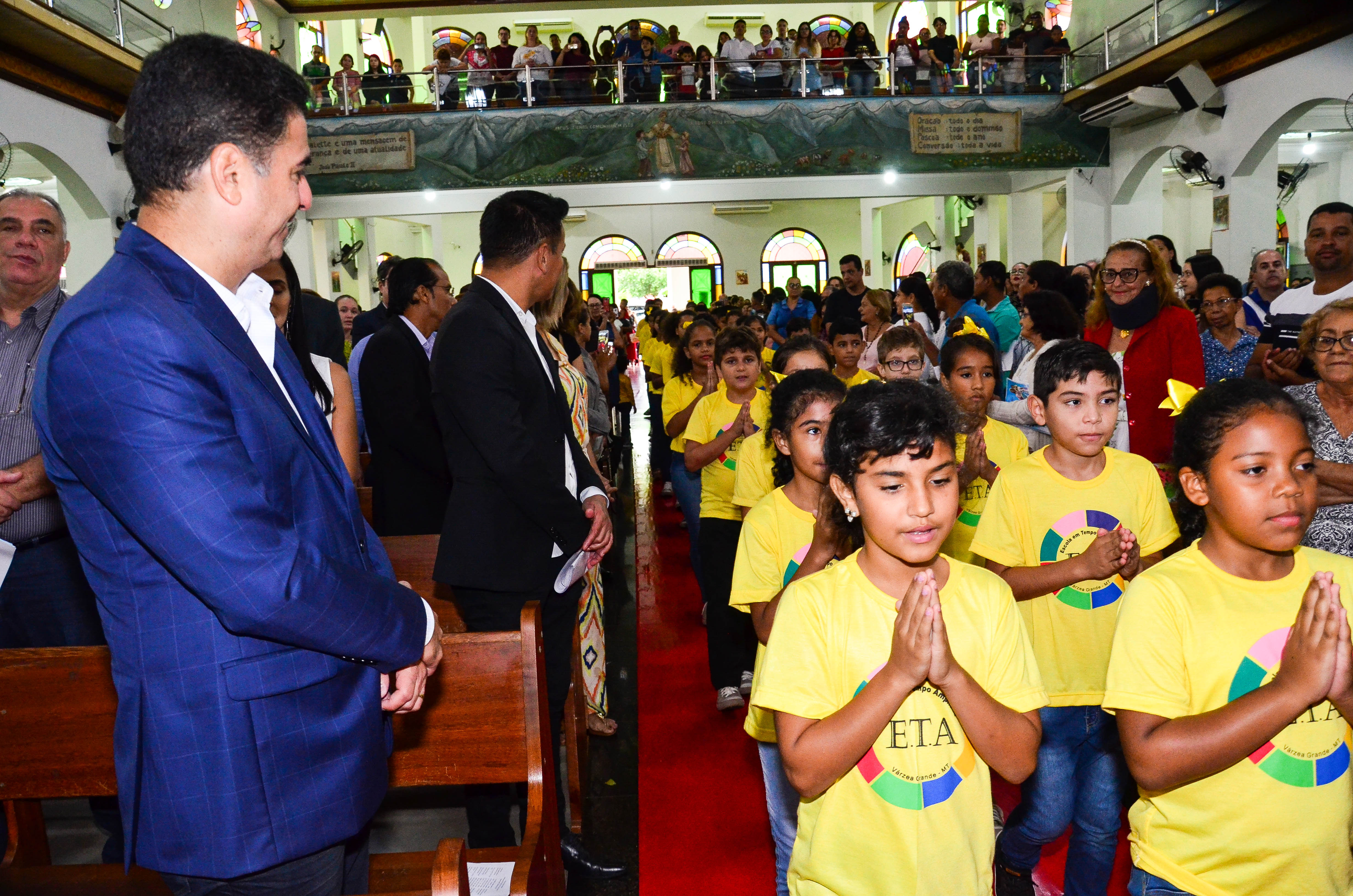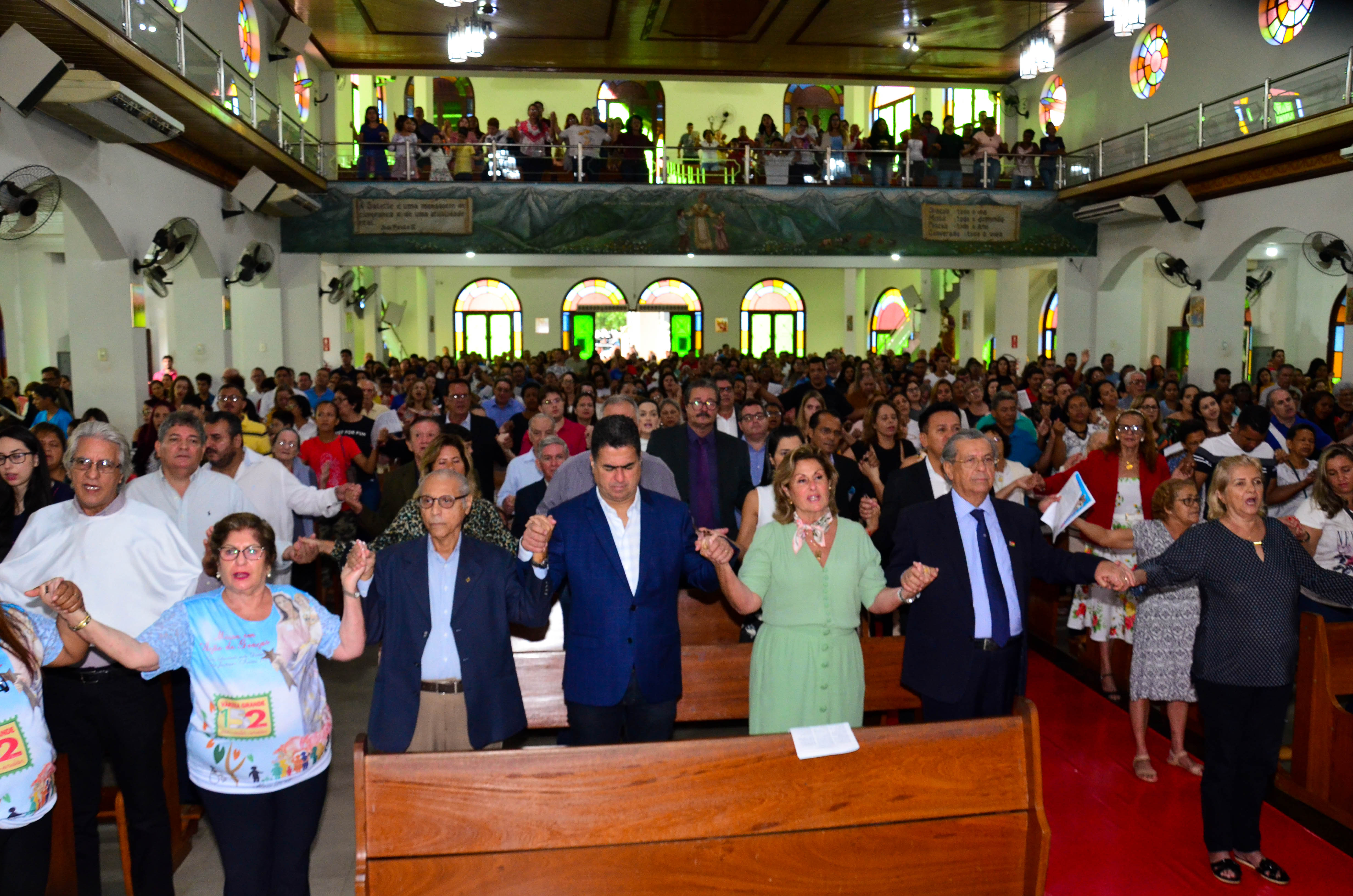 O prefeito de Cuiabá, Emanuel Pinheiro (MDB), participou neste domingo (12), de uma Missa festiva em ação de graça pelo aniversário de Várzea Grande, que será comemorado na quarta-feira (15), quando completa 152 anos de emancipação político administrava.