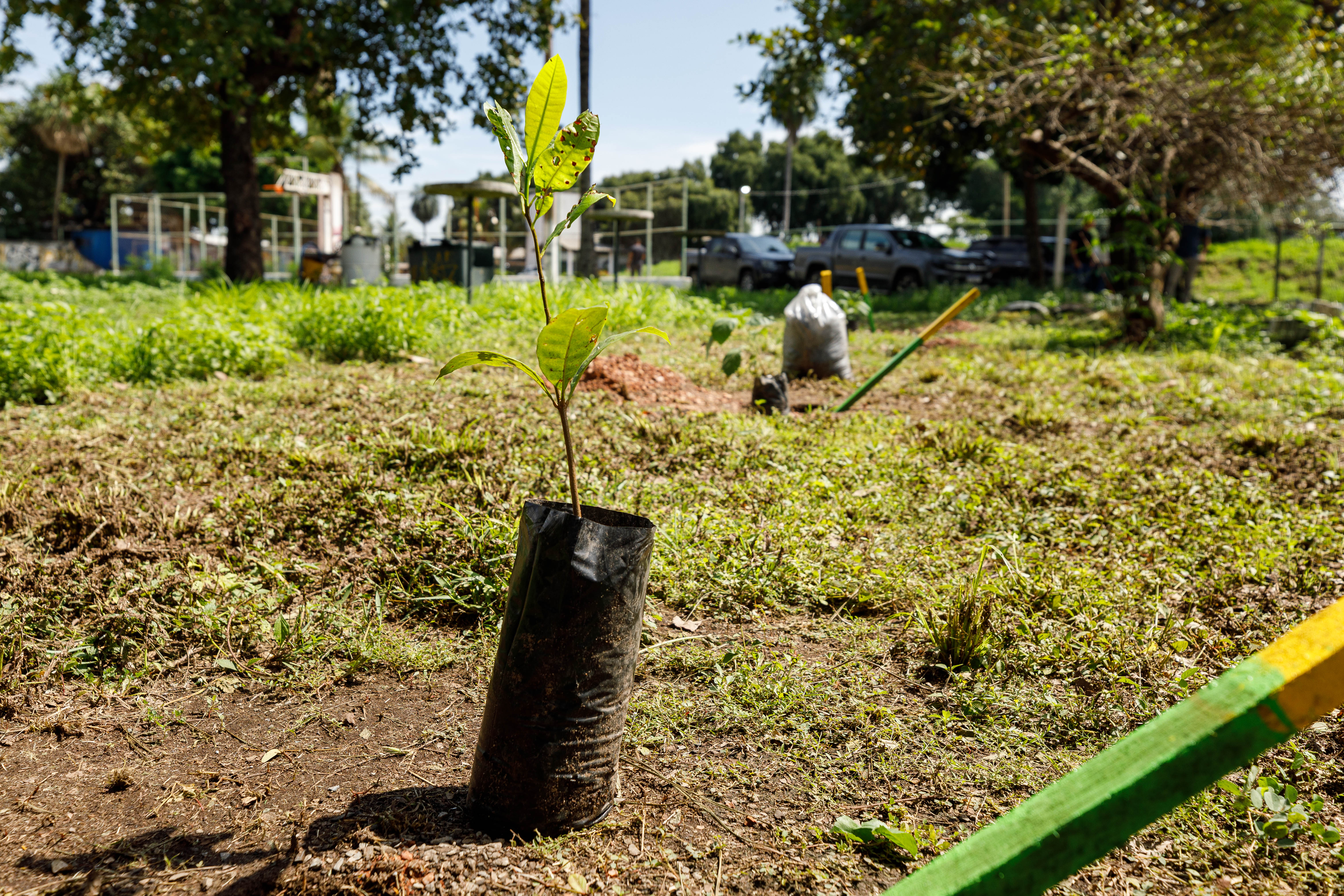 Durante a manhã, foram plantadas 200 mudas de árvores em toda a área do centro cultural, num esforço da atual gestão para revitalizar o espaço público e torná-lo mais verde e acolhedor.
