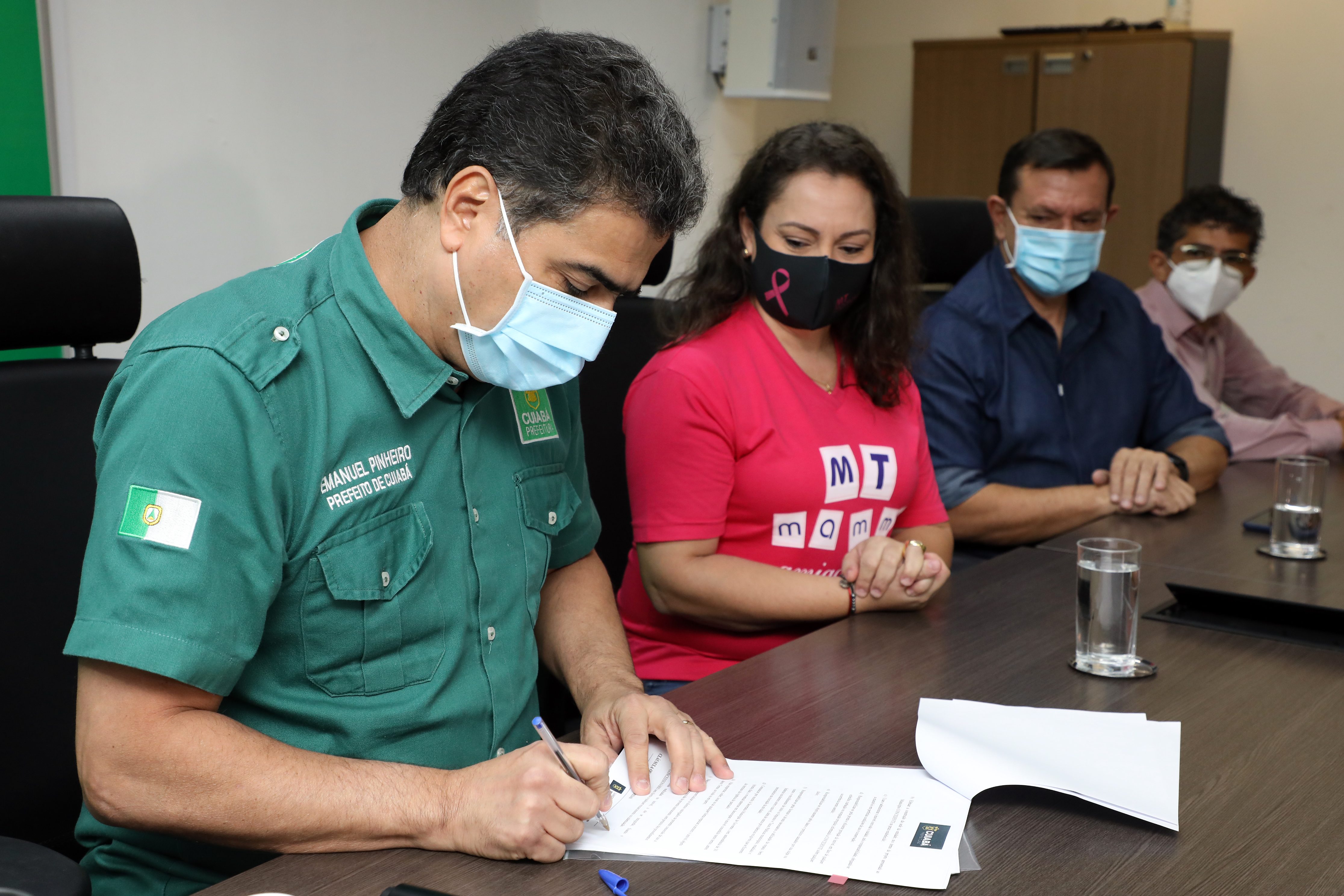 “São momentos como esse que fazem a diferença. É isso que representa uma gestão humanizada. Muito mais importante que as grandes edificações, viadutos e avenidas, é investir no ser humano, na saúde, na vida, o maior espetáculo existência. De que adiantaria tantas edificações físicas? Grandes obras, sem a humanização? Se faltar as pessoas que cuidam, que se dedicam a ajudar essas pessoas por devoção. E é só por amor que temos a MT Mamma. Aqui eu represento a primeira-dama, Márcia Pinheiro, que tanto trabalha e defende os que mais precisam”. A declaração foi feita pelo prefeito Emanuel Pinheiro no ato da assinatura do contrato de concessão de direito real de uso de imóvel público para construção da nova sede da Associação de Trabalhadores Voluntários contra o câncer de mama em Mato Grosso – MTmamma. O termo foi assinado na tarde desta quarta-feira (23), no auditório do Palácio Alencastro.