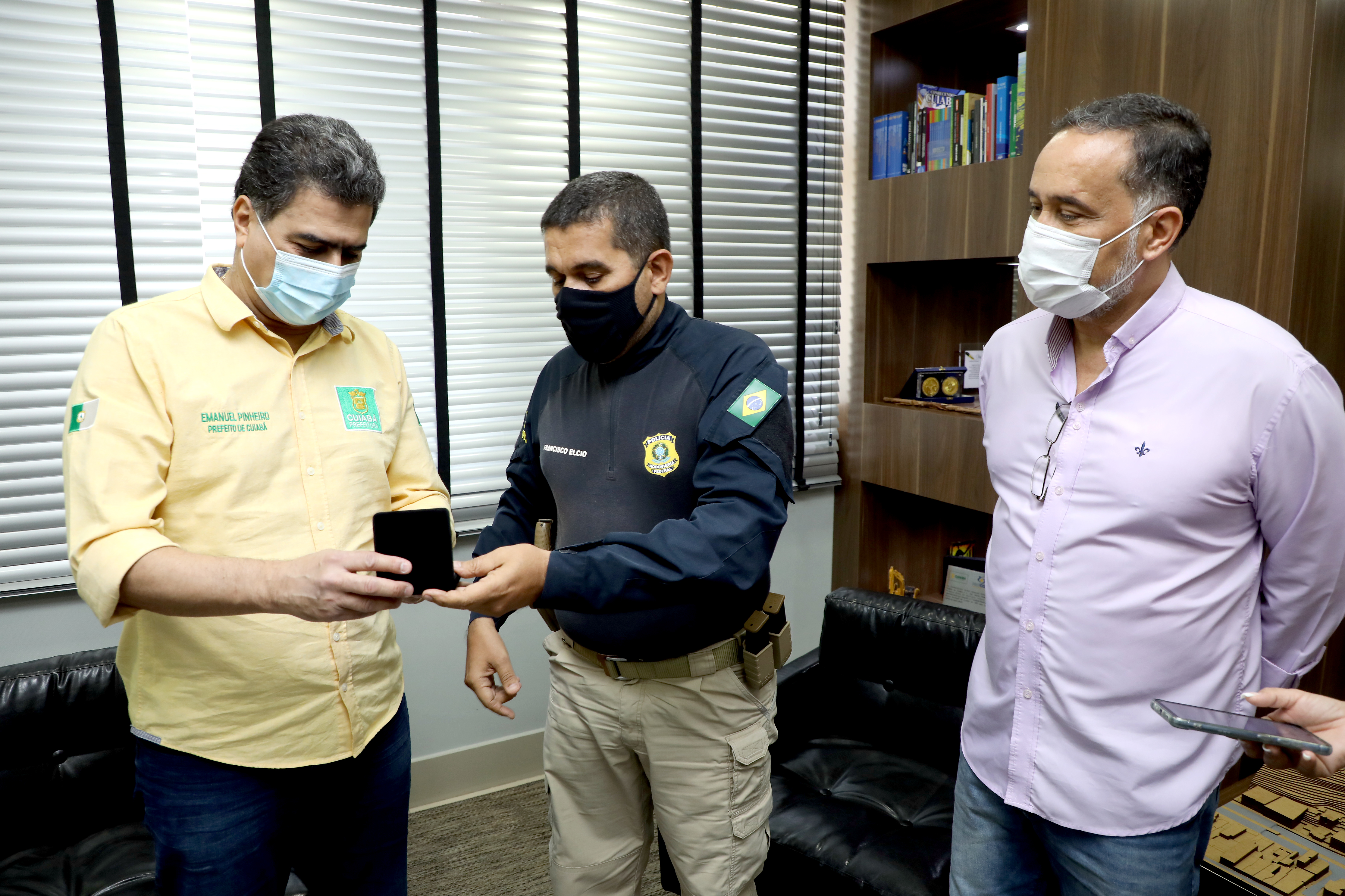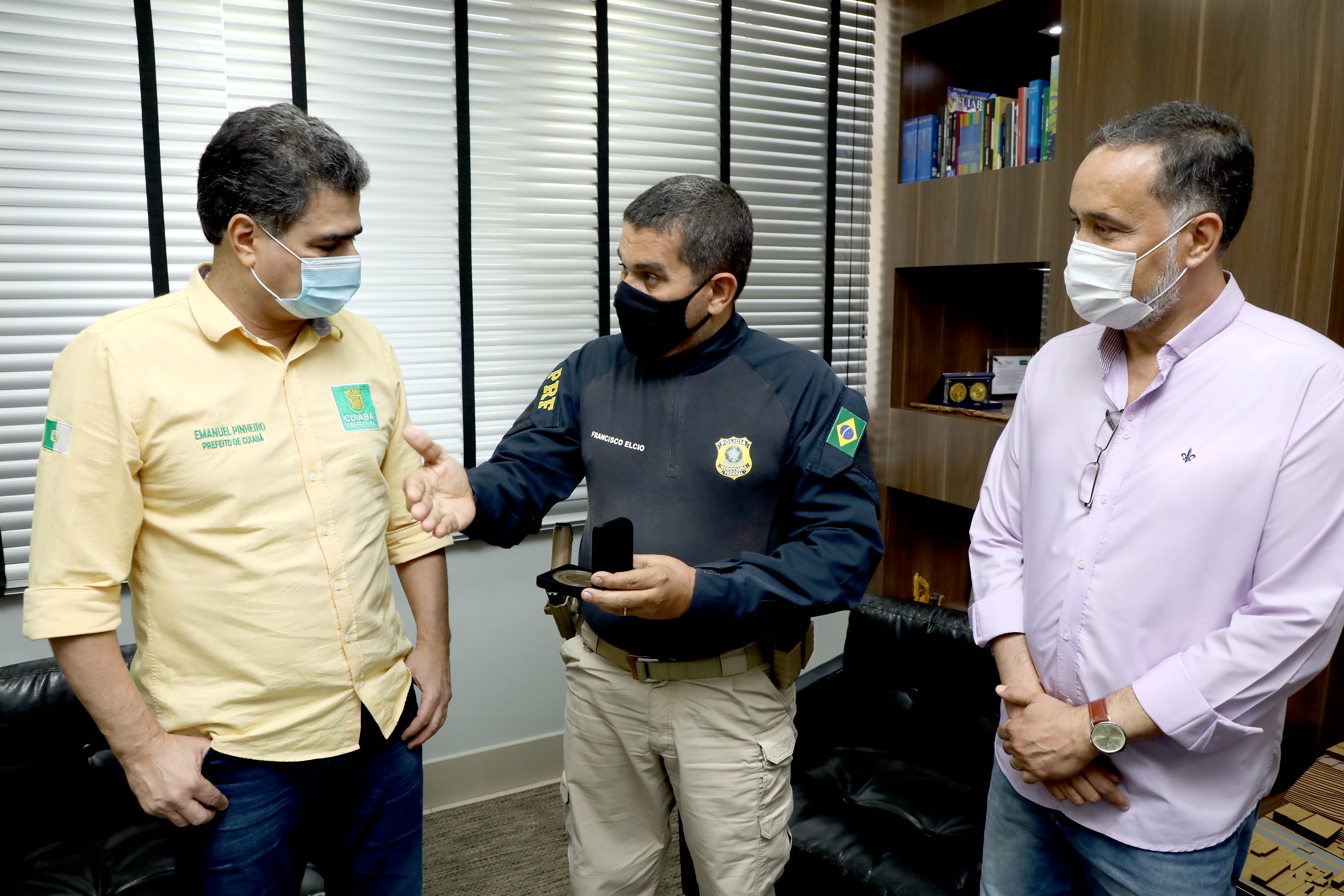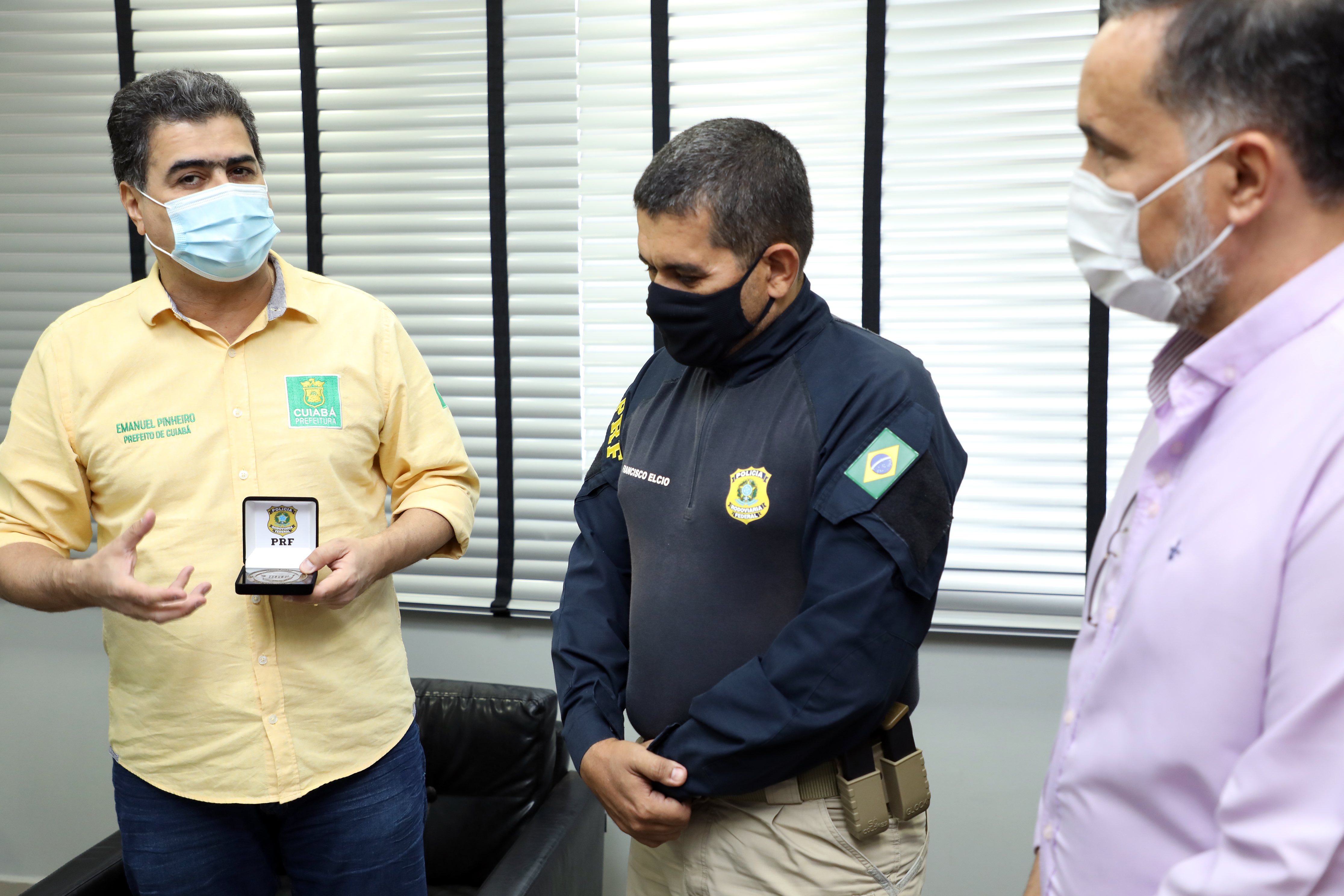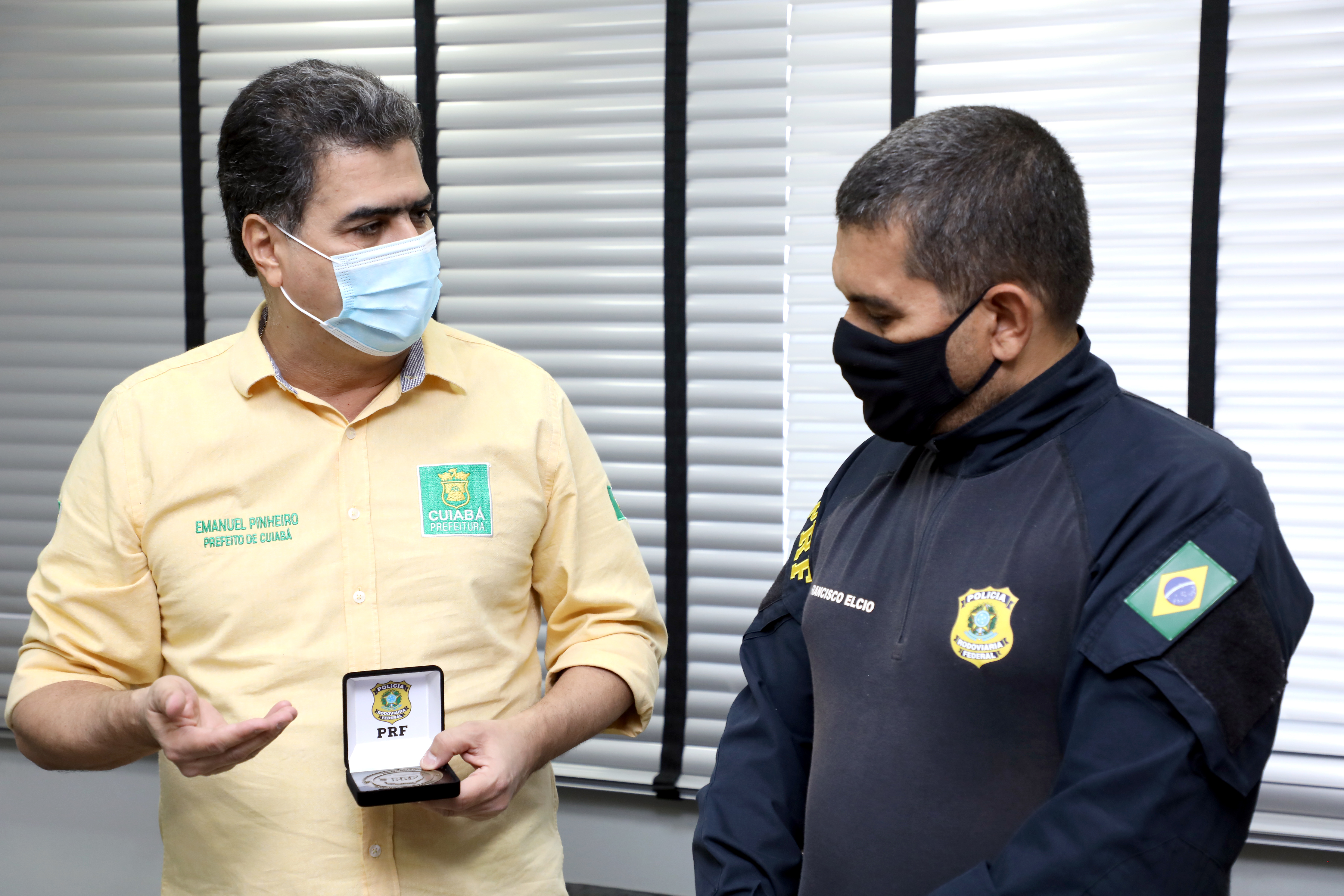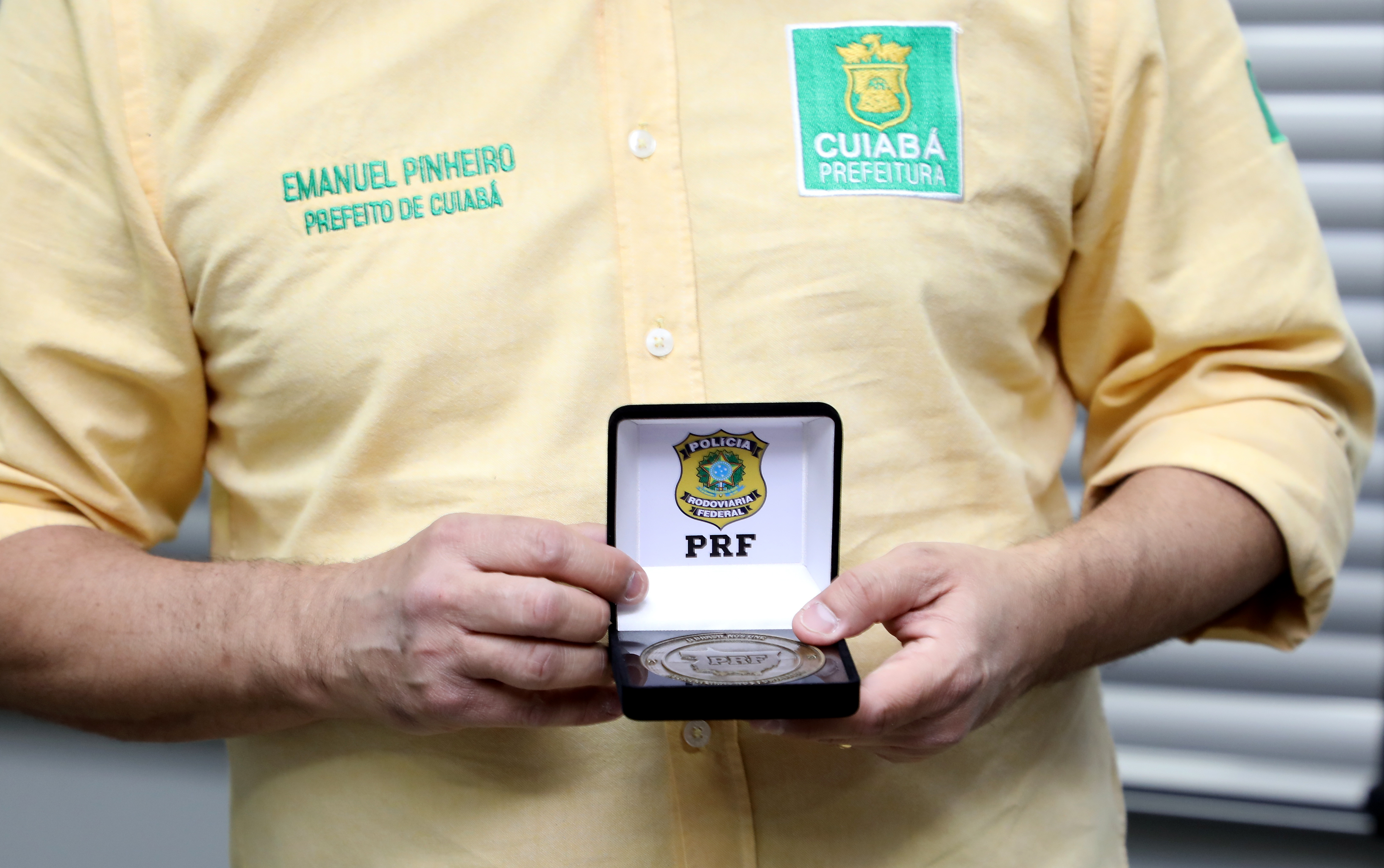 O prefeito de Cuiabá, Emanuel Pinheiro, foi homenageado nessa segunda-feira (27) pela Polícia Rodoviária Federal (PRF). No encontro realizado no Palácio Alencastro, o chefe do Executivo recebeu uma medalha pelos serviços públicos de excelência prestados na Capital, que contribui com a melhoria dos trabalhos da instituição policial.