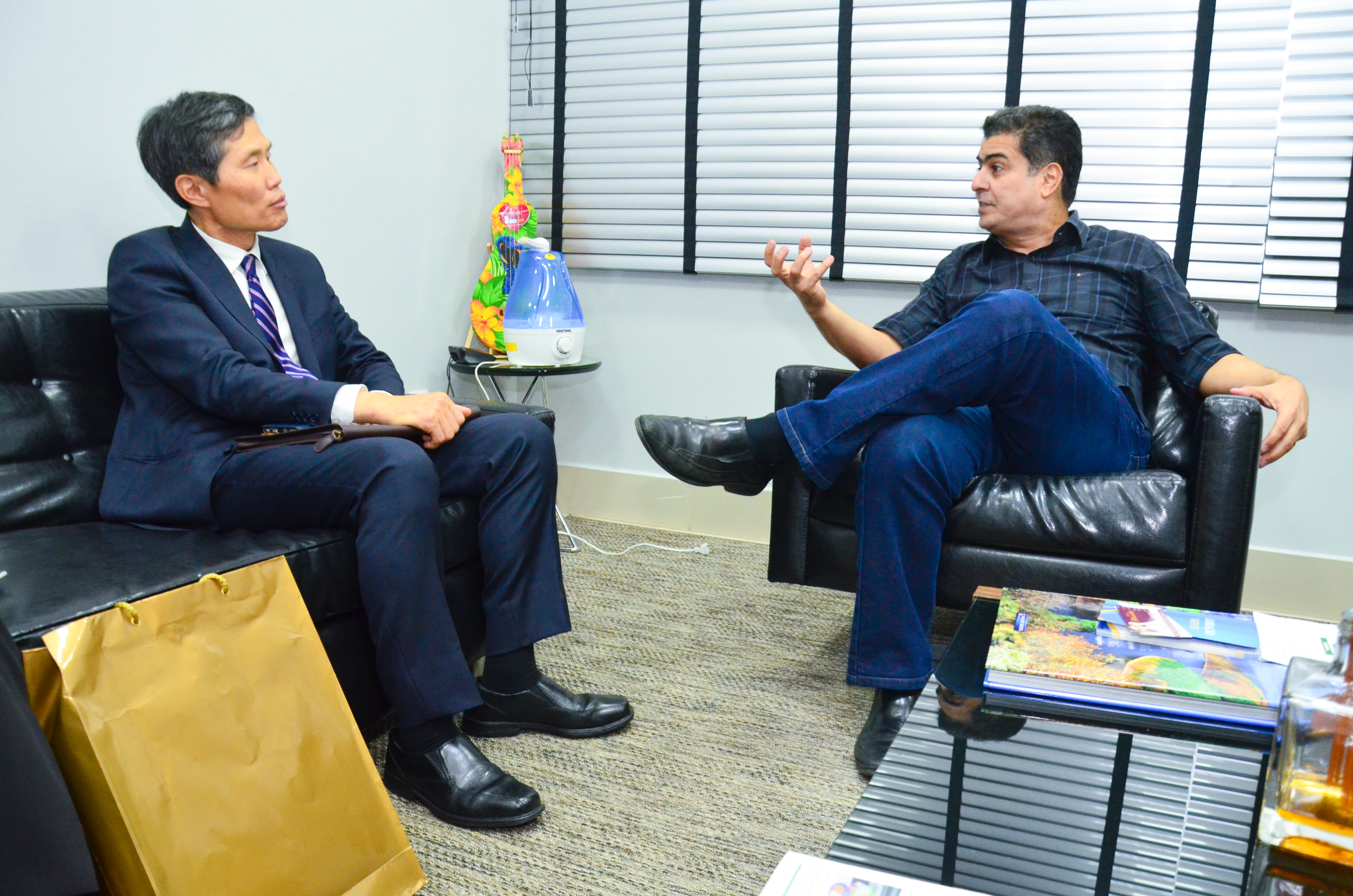 O prefeito Emanuel Pinheiro recebeu na tarde desta quinta-feira (31) a visita de cortesia do cônsul-geral da Coréia do Sul, Hak You Kim. O objetivo do encontro foi estreitar relações e discutir oportunidades de cooperação entre Cuiabá e a Coréia, como por exemplo, no setor do Turismo.