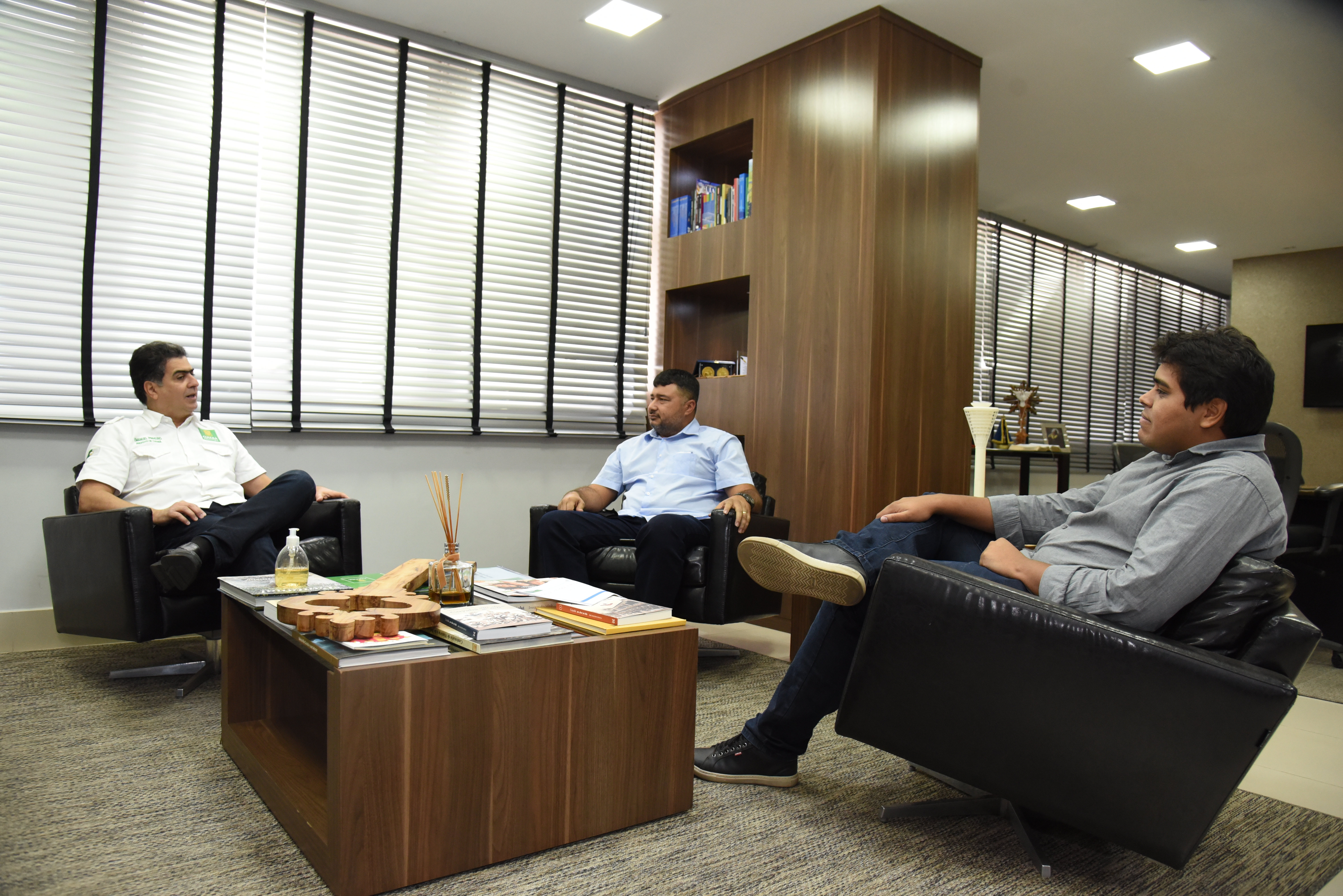O prefeito de Cuiabá, Emanuel Pinheiro, recebeu na manhã de terça-feira (10) uma visita de cortesia do presidente da Câmara Municipal de Diamantino, vereador Ranielli Patrick Arruda Lima (PDT) e do primeiro secretário vereador, Arnildo Gerhardt Neto (Podemos), em seu gabinete no Palácio Alencastro.
