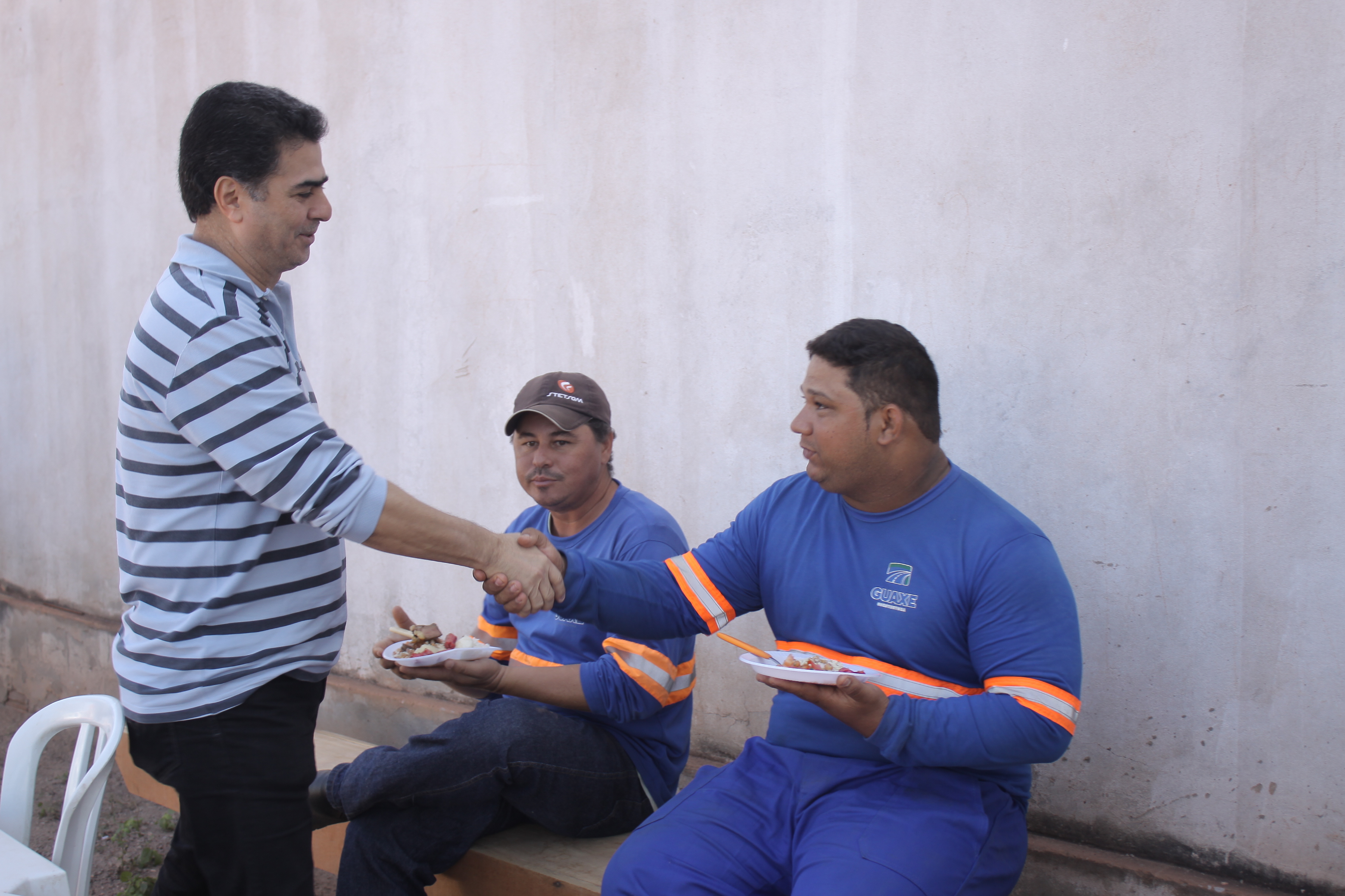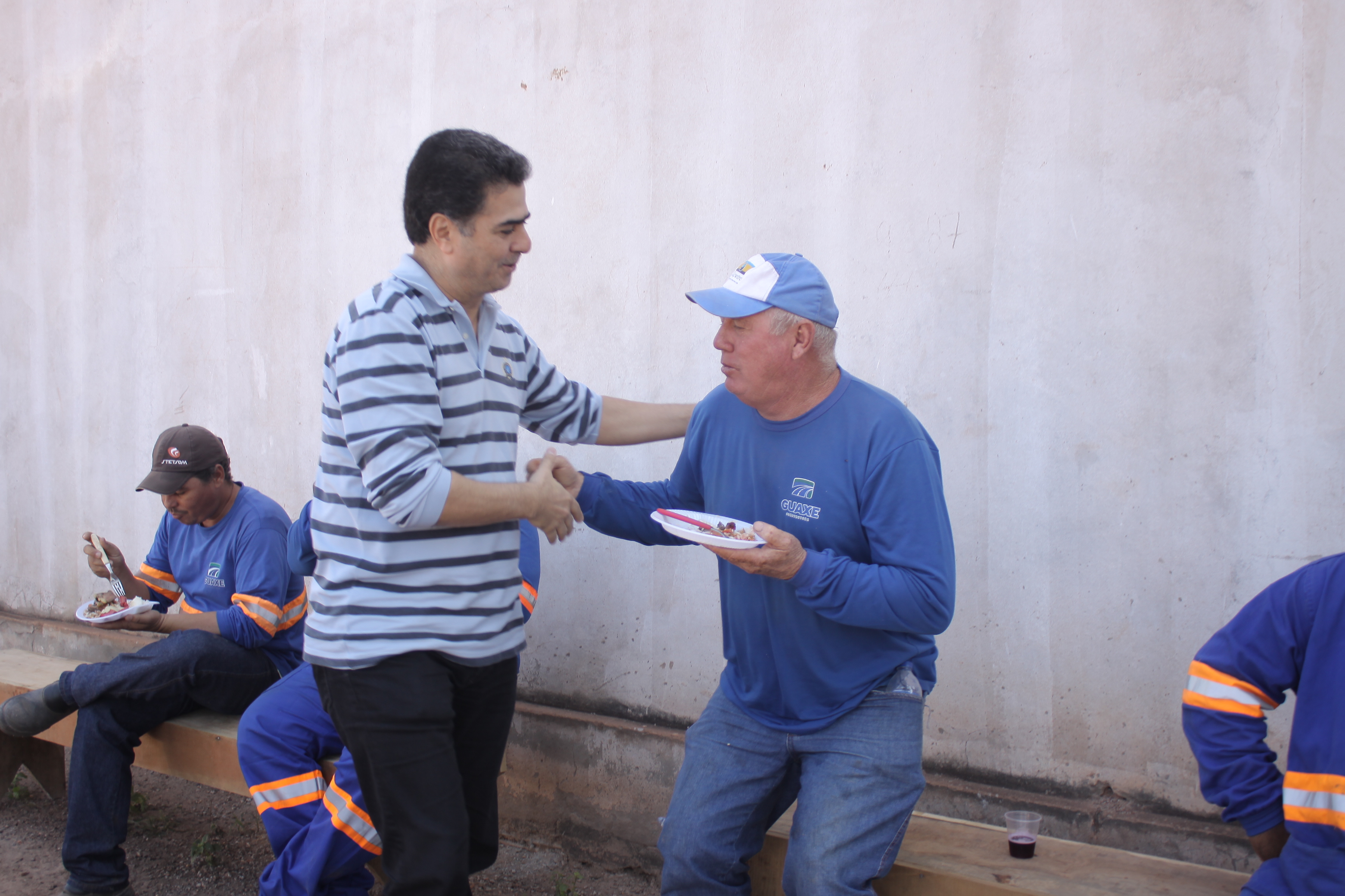 Cerca de 50 trabalhadores das obras de drenagem e pavimentação dos bairros Altos da Serra I e II e Doutor Fábio Leite I e II, foram homenageados, no último fim de semana, pelo prefeito de Cuiabá, Emanuel Pinheiro. O ato foi realizado durante um almoço ocorrido no sábado (16), que contou com as presenças dos secretários municipais de Obras Públicas, Vanderlúcio Rodrigues, e de Agricultura, Trabalho e Desenvolvimento Econômico, Vinicius Hugueney, além dos vereadores Misael Galvão, Elizeu Nascimento, Juca do Guaraná, Paulo Araújo, Sargento Joelson, e Renivaldo Nascimento.