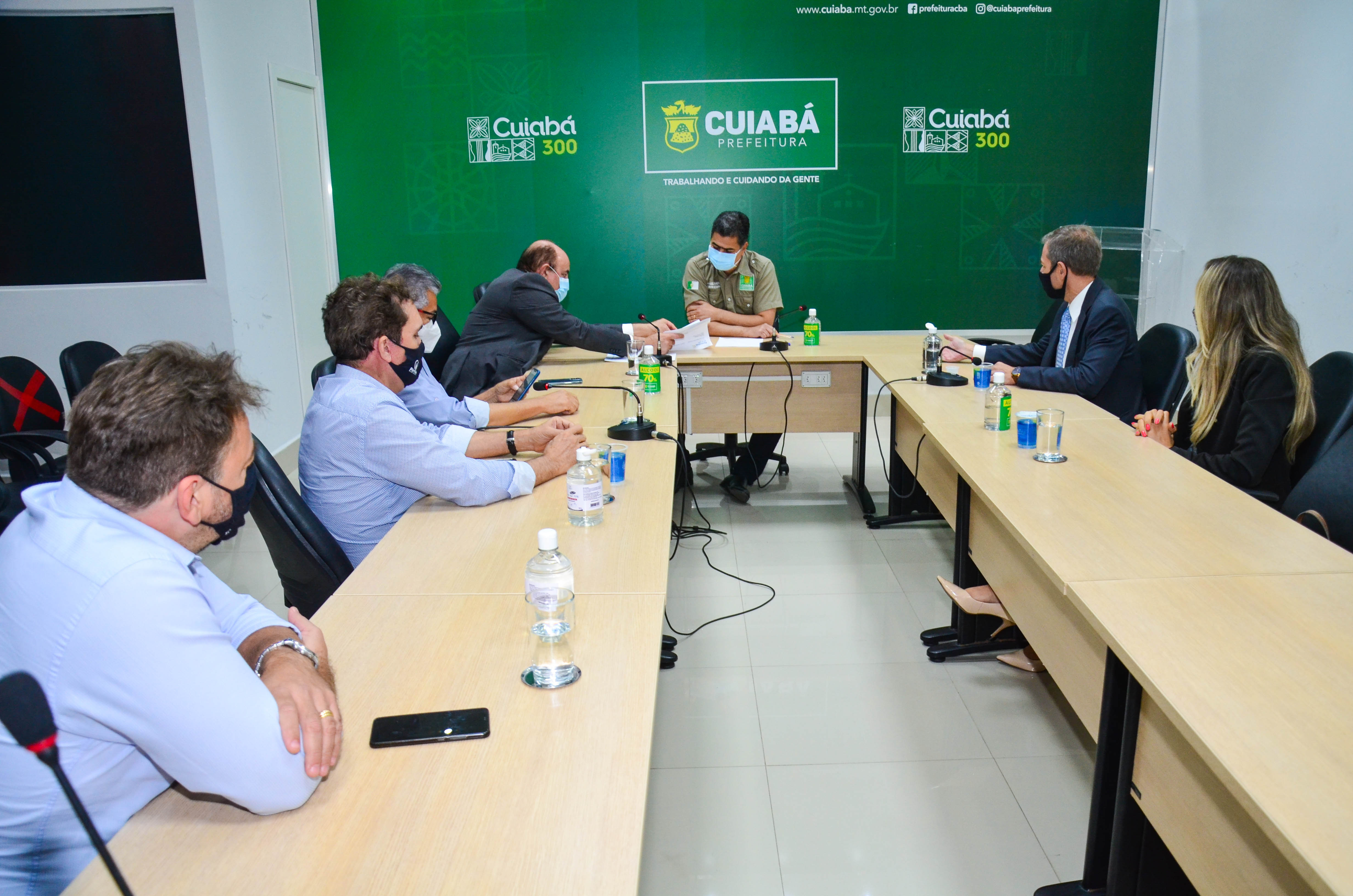 O prefeito Emanuel Pinheiro recebeu na tarde desta terça-feira (22), visita do presidente da Federação do Comércio de Bens, Serviços e Turismo do Estado de Mato Grosso - Fecomércio-MT, José Venceslau de Souza Júnior e representantes do seguimento comercial e da construção civil. O debate foi realizado no Salão Nobre do Palácio Alencastro.