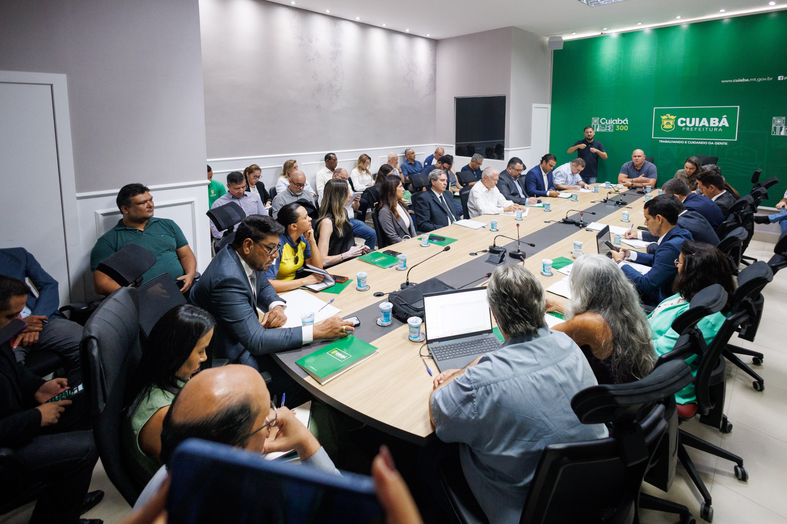 O prefeito de Cuiabá, Abilio Brunini, reuniu todos os secretários municipais na manhã desta segunda-feira (10) para discutir as metas e entregas previstas para os primeiros 100 dias de gestão. O encontro, que também contou com a presença dos secretários adjuntos, teve como foco principal a organização e o planejamento estratégico das ações que serão implementadas nesse período.
