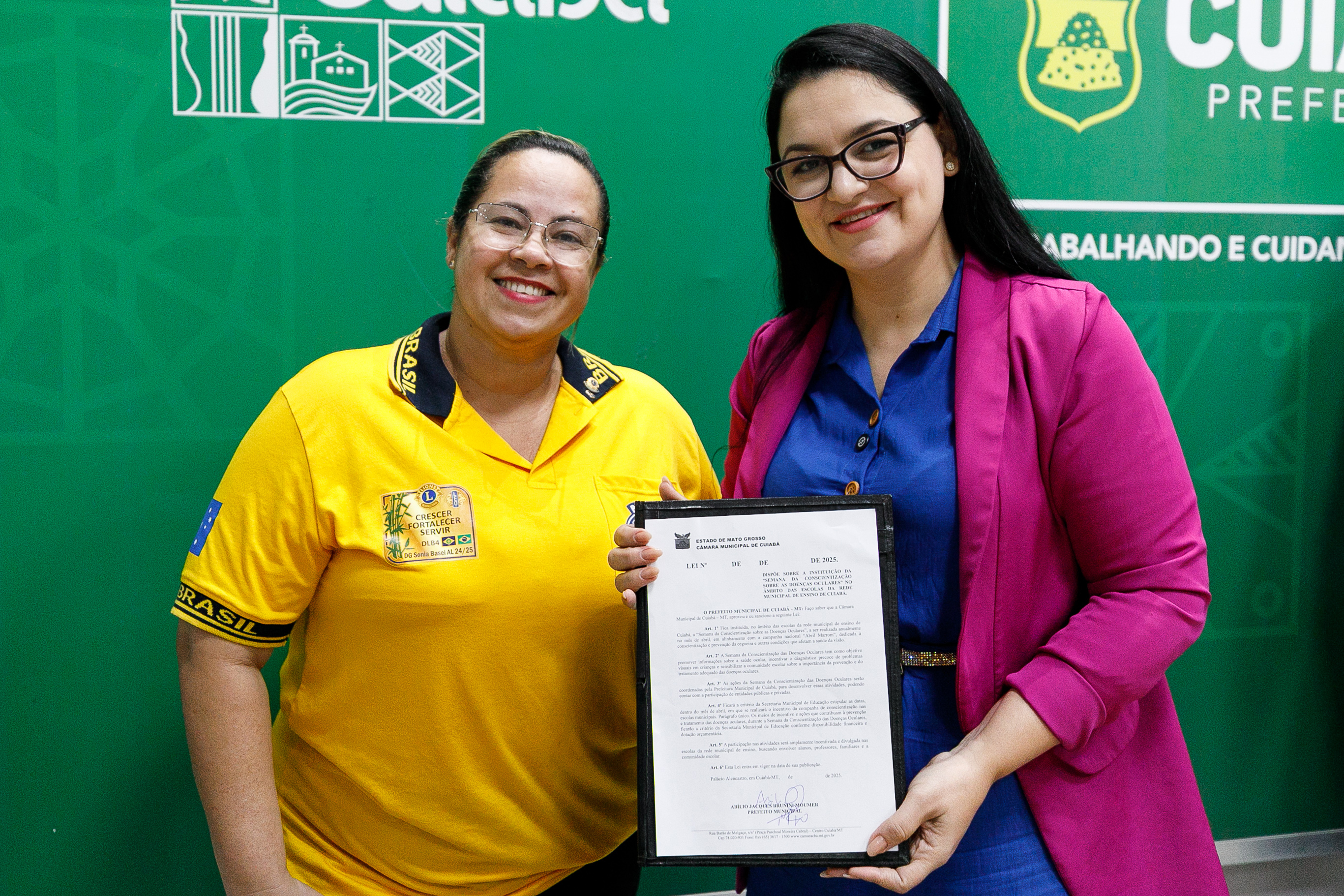 O prefeito de Cuiabá, Abilio Brunini, sancionou a primeira lei de autoria da vereadora Samantha Iris. A nova legislação institui a "Semana da Conscientização sobre as Doenças Oculares" no calendário oficial das escolas municipais, com o objetivo de promover informações sobre saúde ocular e incentivar o diagnóstico precoce de problemas visuais em crianças.