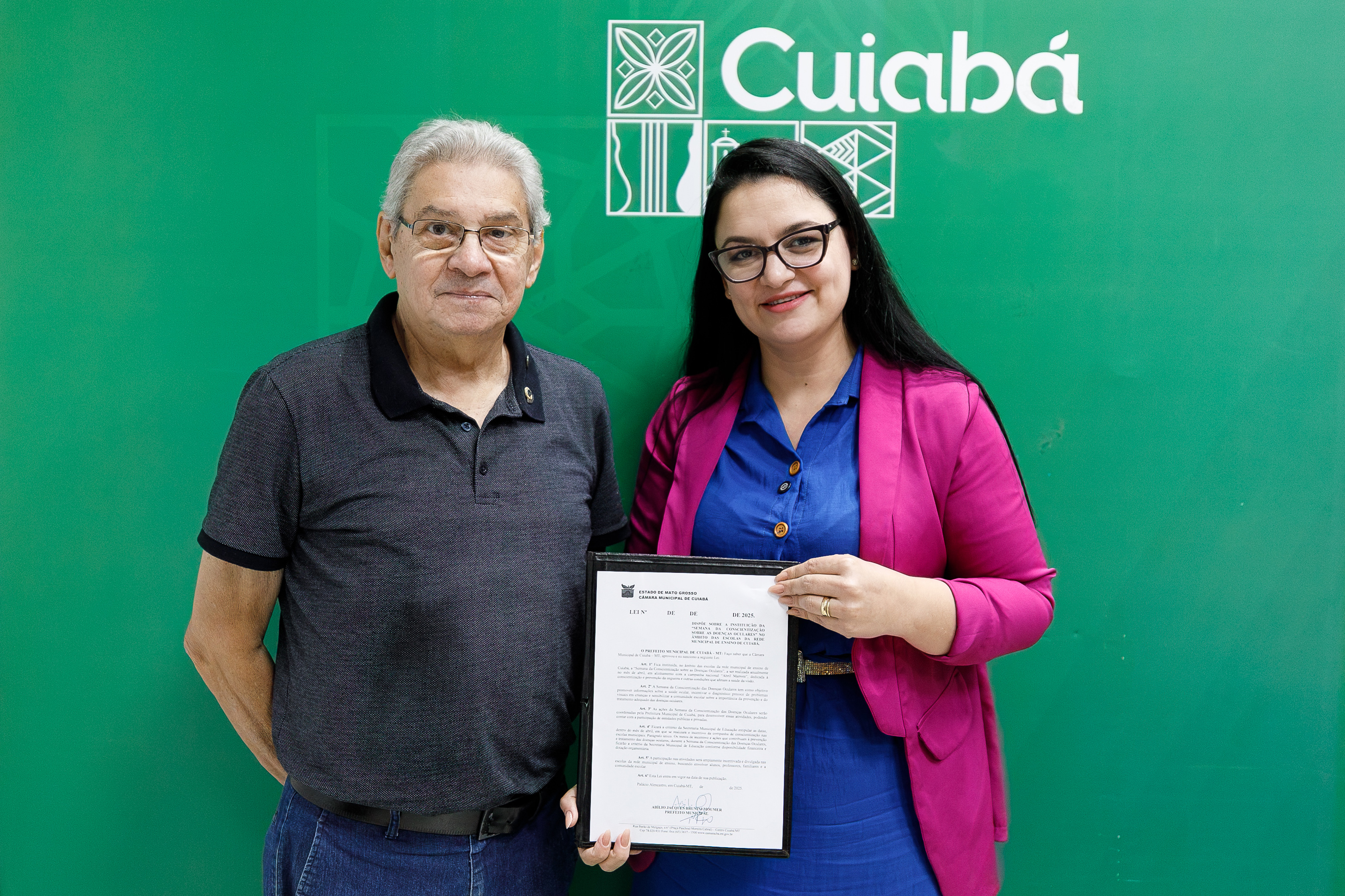 A sanção da lei ocorreu no Salão Nobre da Prefeitura de Cuiabá, na noite de terça-feira (26), e contou com a presença de Thiago Boava, viúvo da deputada federal Amália Barros (em memória). A iniciativa da vereadora Samantha busca homenagear a trajetória da parlamentar, que era conhecida por sua luta em prol da saúde ocular.