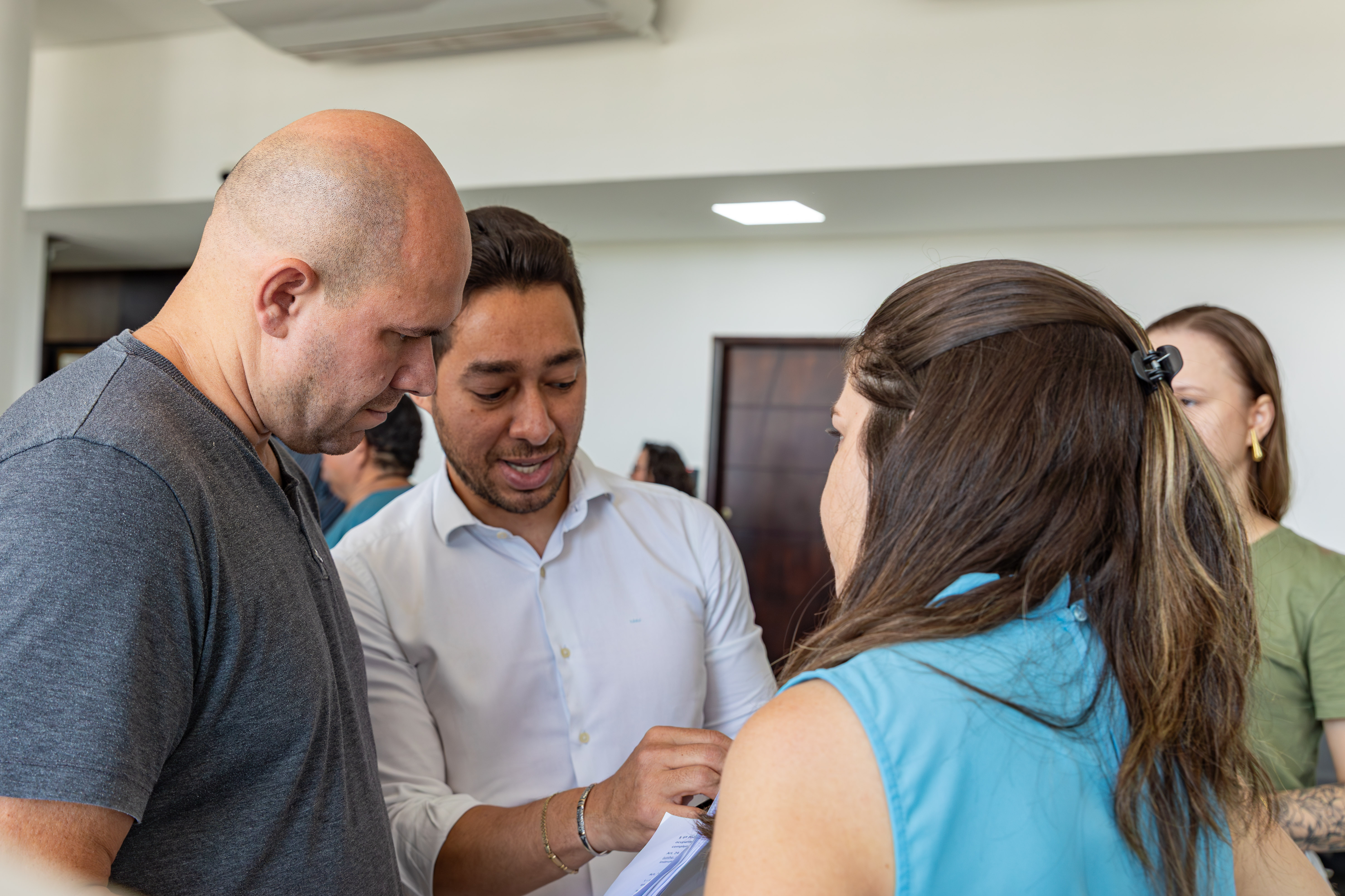Durante a reunião, o prefeito Abilio Brunini garantiu que a Prefeitura vai atuar de forma firme e responsável para impedir que as famílias sejam prejudicadas e para assegurar o direito à moradia.