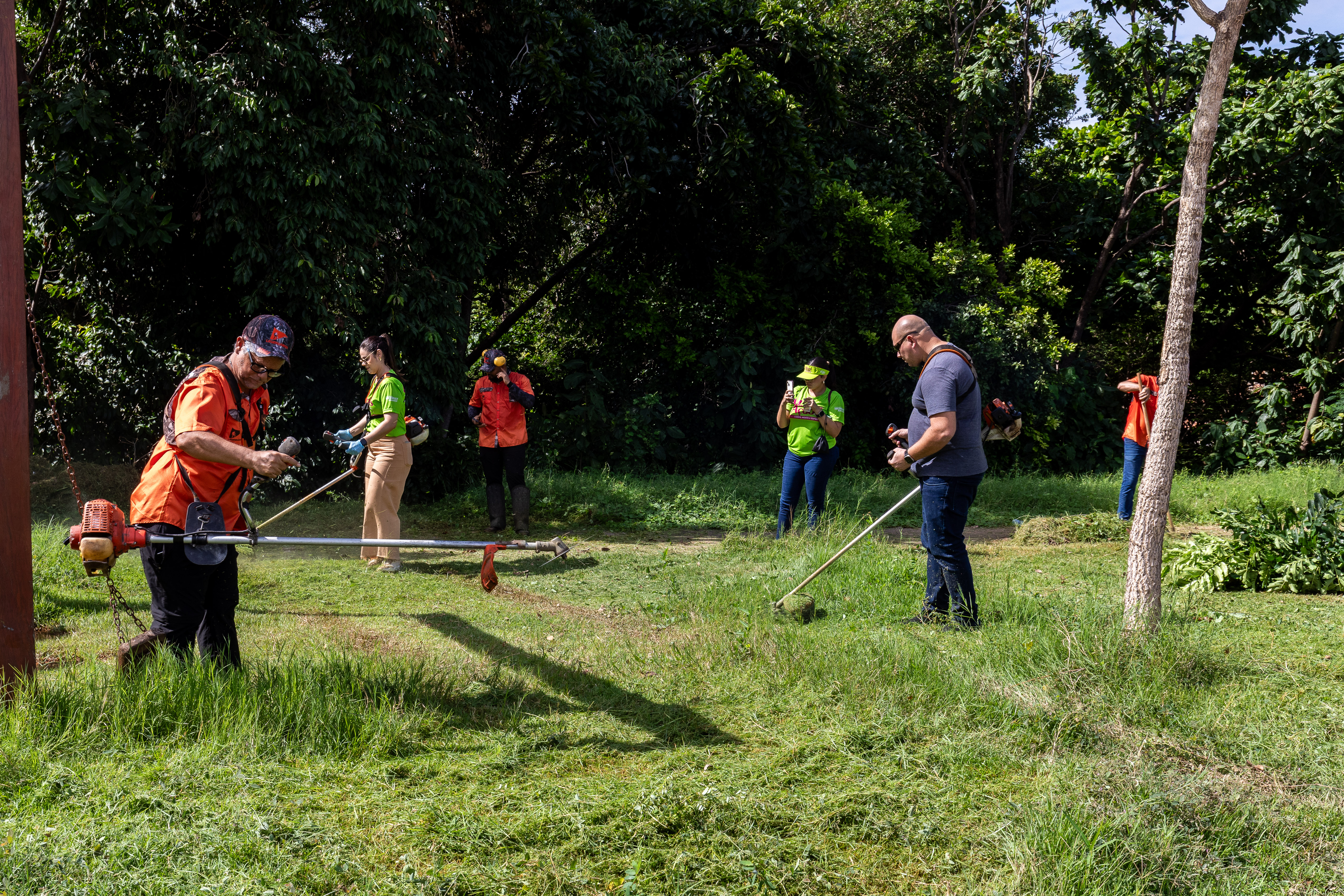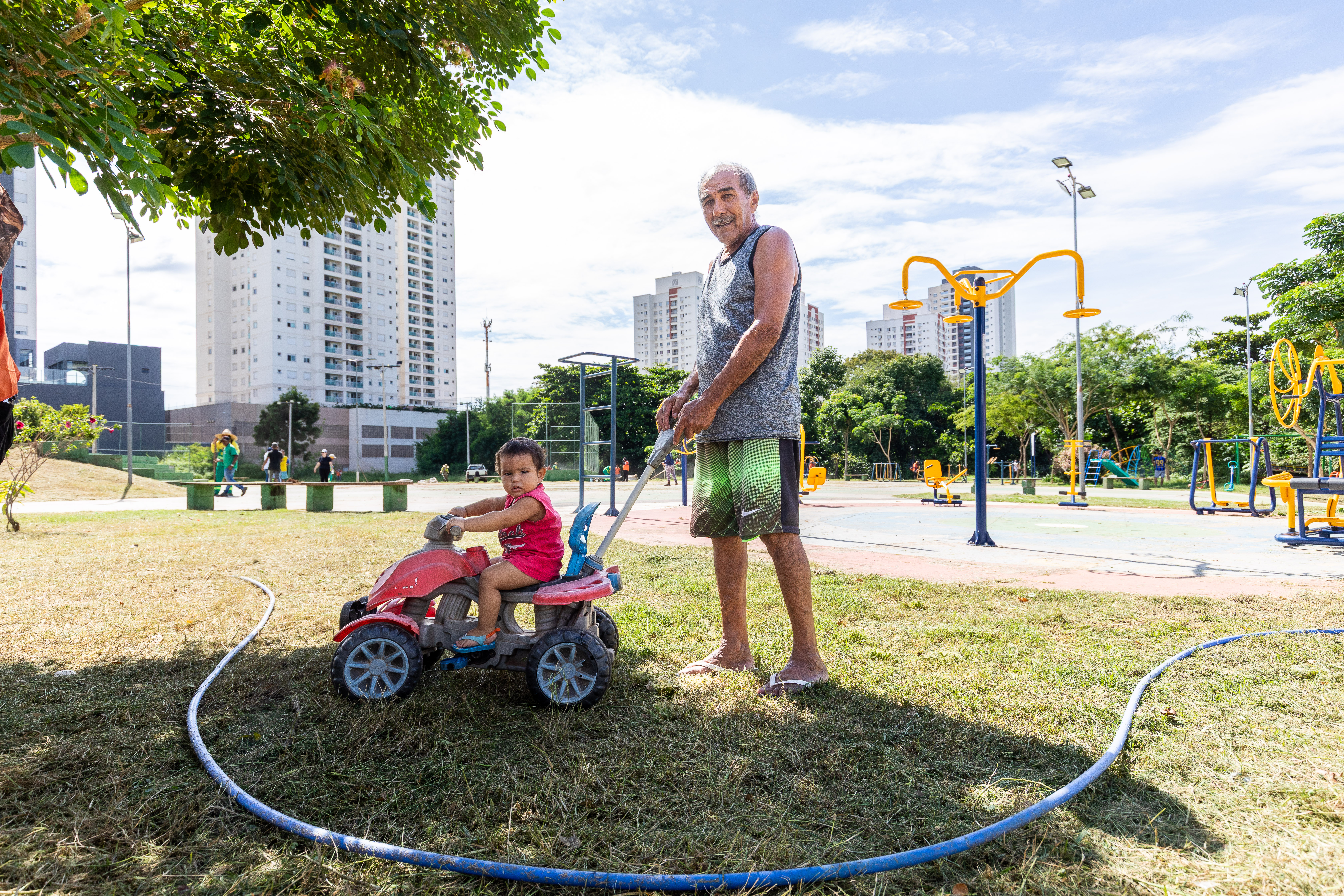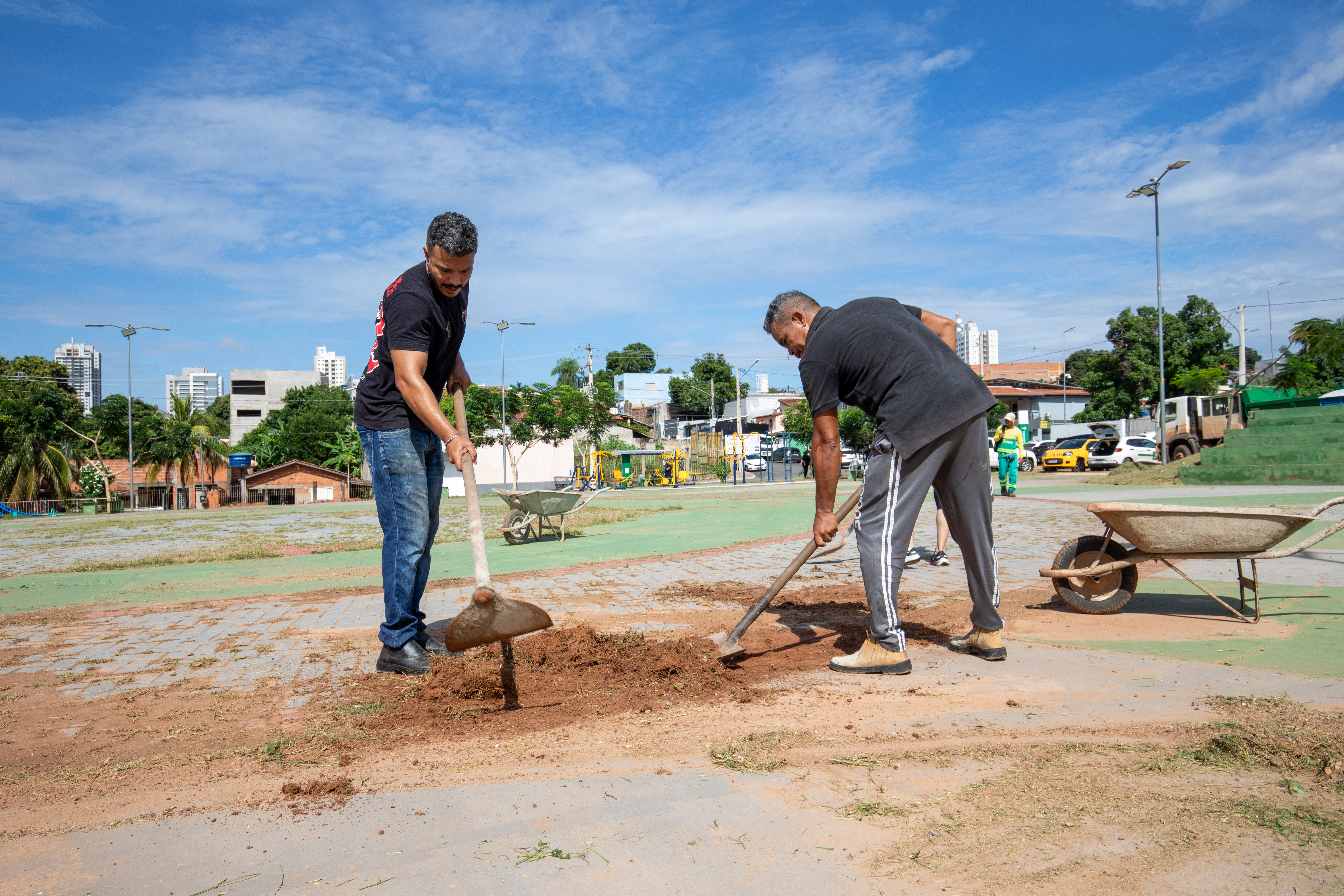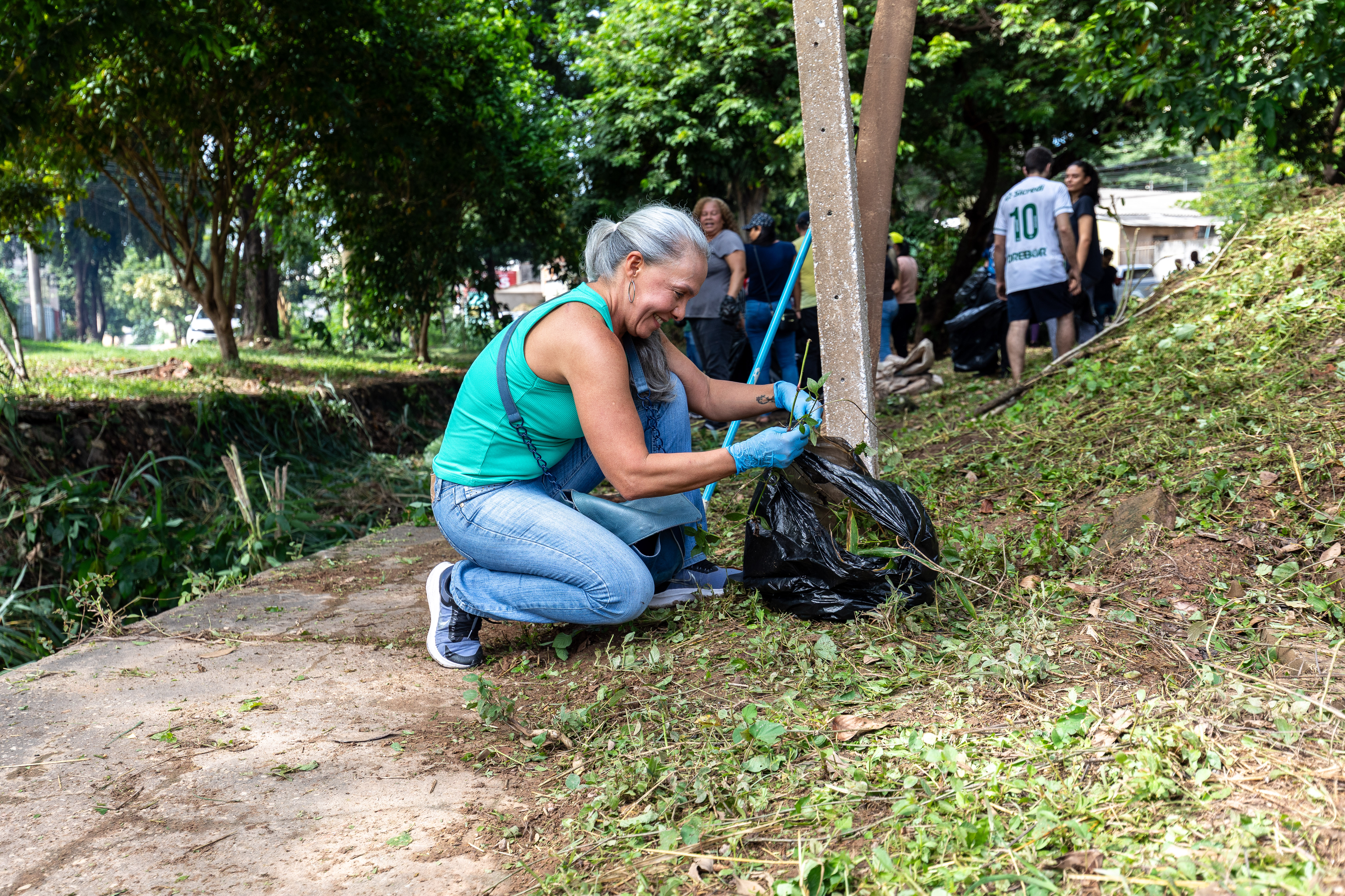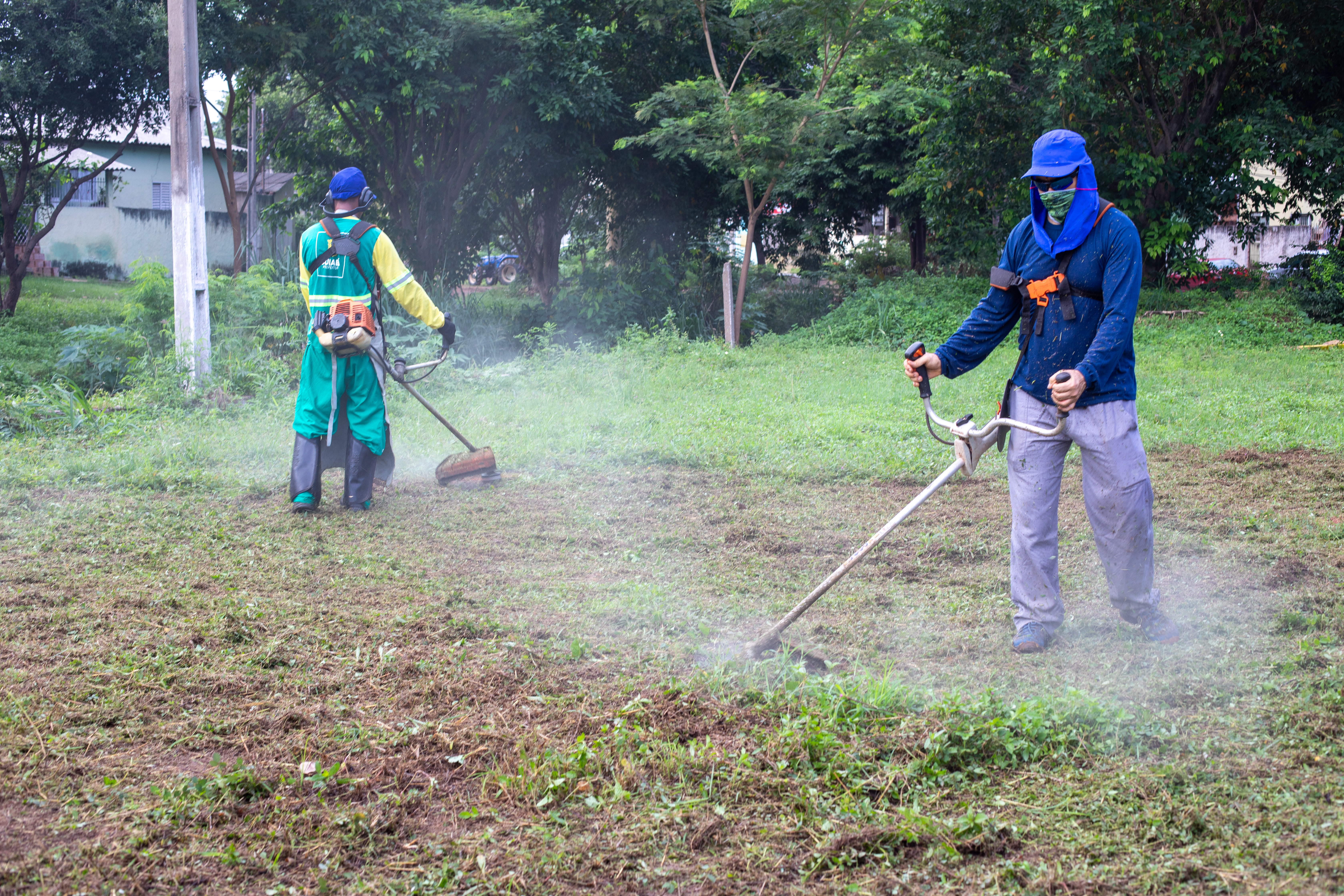 Na imagem principal, Abilio está com uma roçadeira ao lado de outros servidores e voluntários promovendo a limpeza do mato nas praças da Capital. Nas imagens da galeria, várias fotos ilustrando ao mutirão de limpeza com secretários de gestão, a primeira-dama Samantha Iris entre outros fazendo serviços de jardinagem.