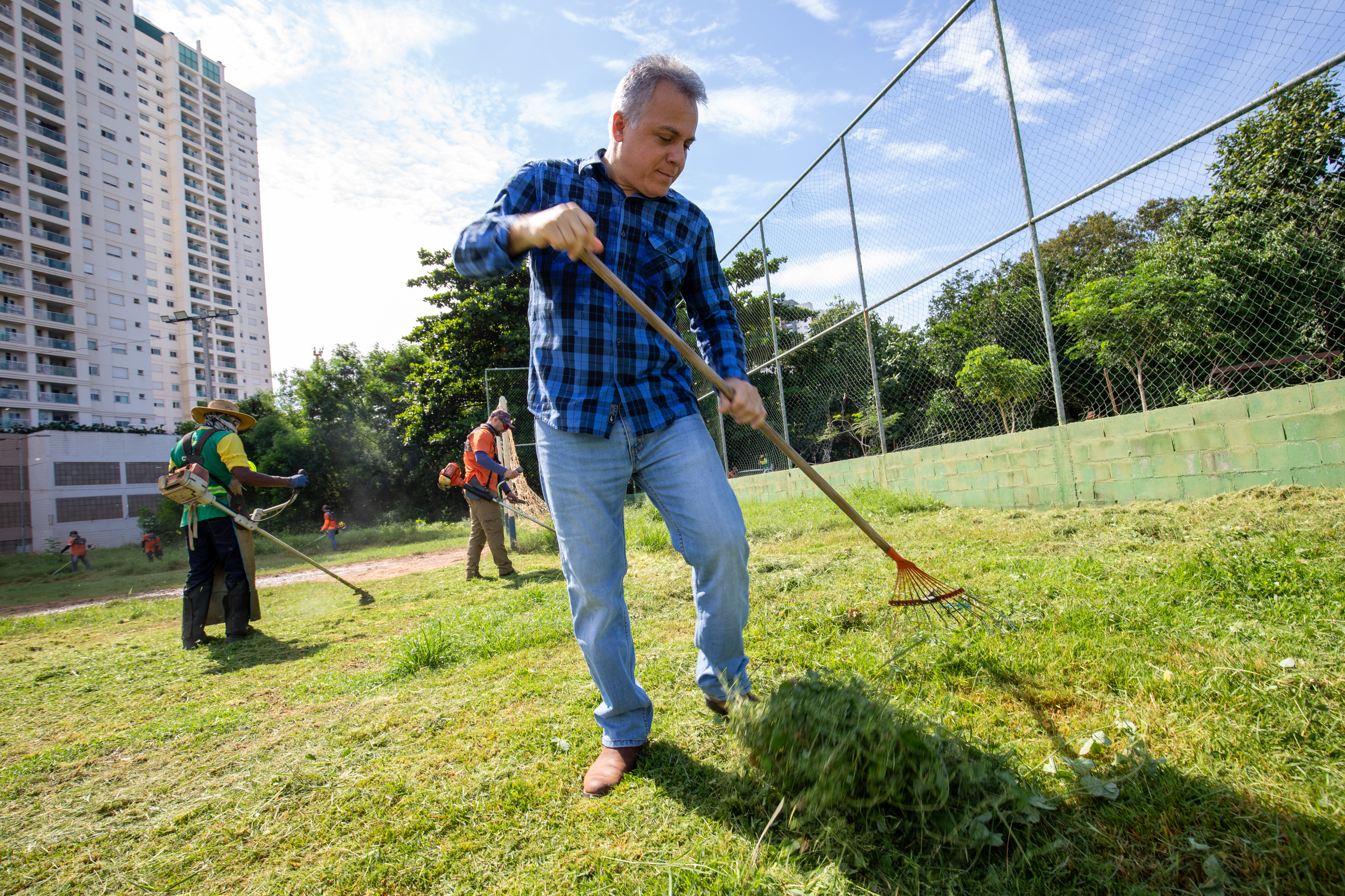 O prefeito de Cuiabá, Abilio Brunini, colocou a mão na massa durante um grande mutirão de limpeza em comemoração aos 306 anos da capital mato-grossense nesta terça-feira (8). Ao lado de servidores e voluntários, Abilio ajudou a roçar o mato, recolher lixo e revitalizar praças em diversas regiões da cidade, numa mobilização que envolveu todas as secretarias municipais em mais de 50 bairros.