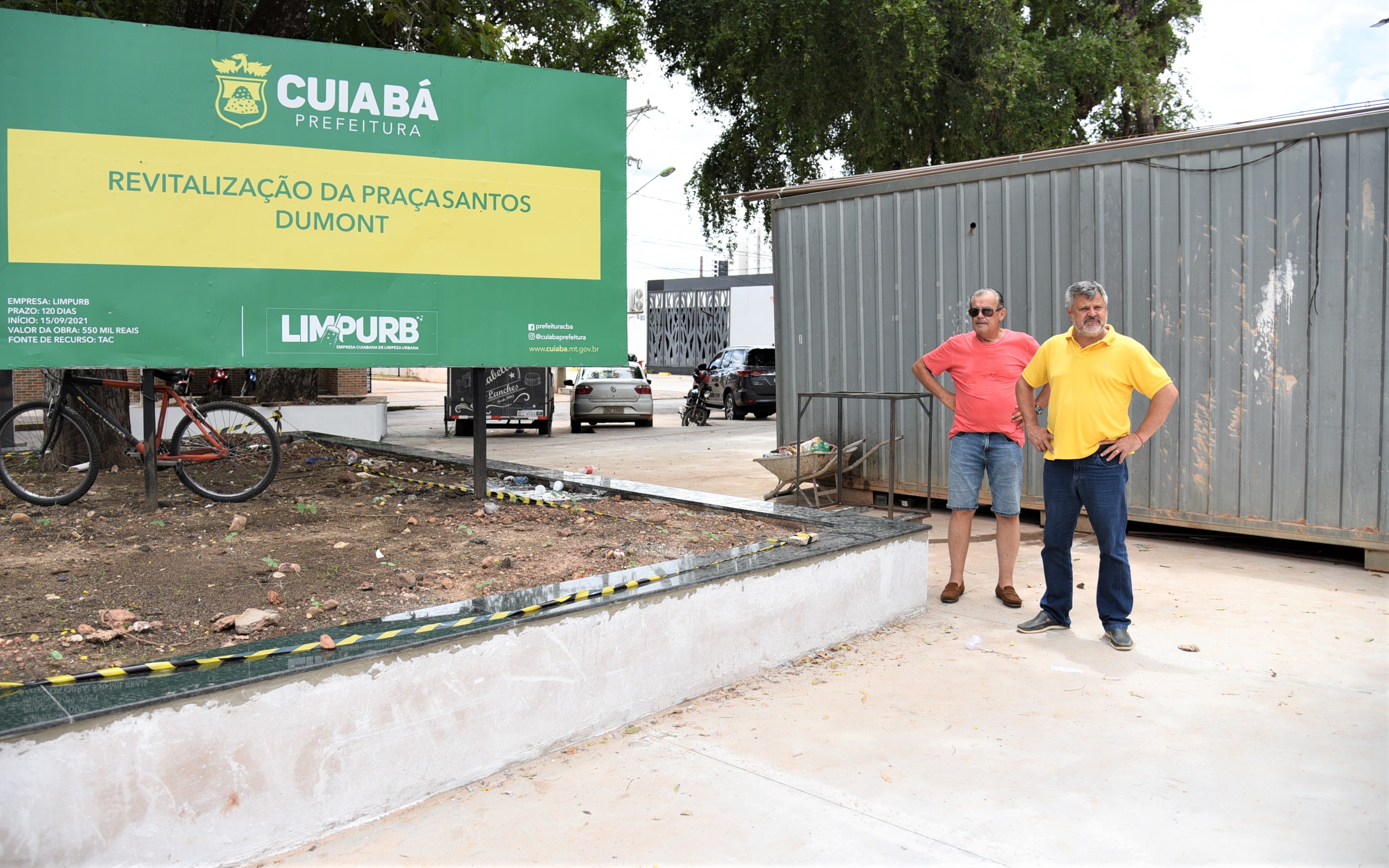 O prefeito em exercício, José Roberto Stopa vistoriou, no sábado (19), as obras de reconstrução da Praça Santos Dumont. Os trabalhos ma gestão Emanuel Pinheiro seguem em ritmo avançado, com investimentos de aproximadamente R $550 mil. A entrega está prevista para ocorrer em abril, um verdadeiro presente à população cuiabana, em alusão ao aniversário de 303 anos de Cuiabá, celebrado este ano.