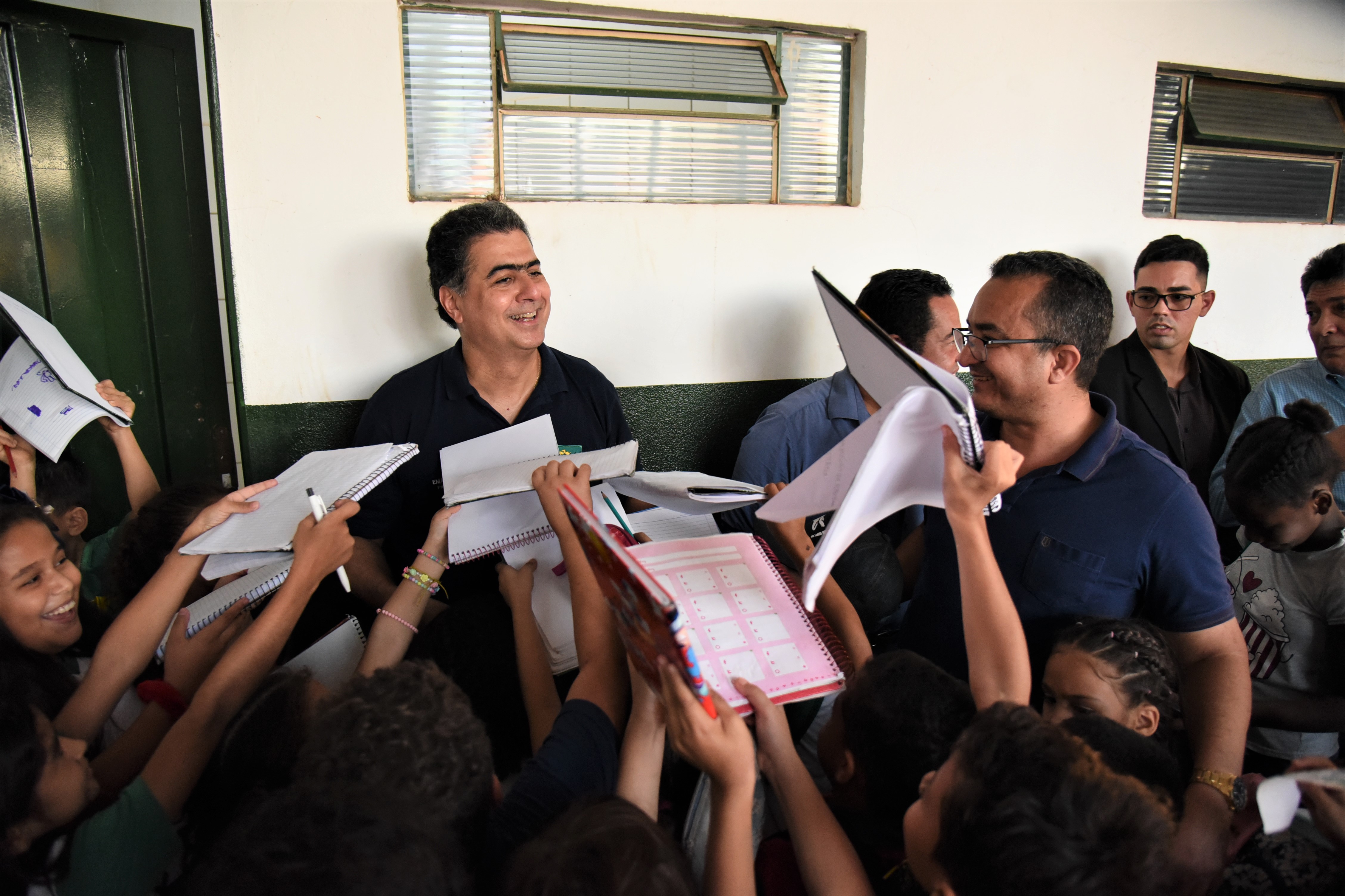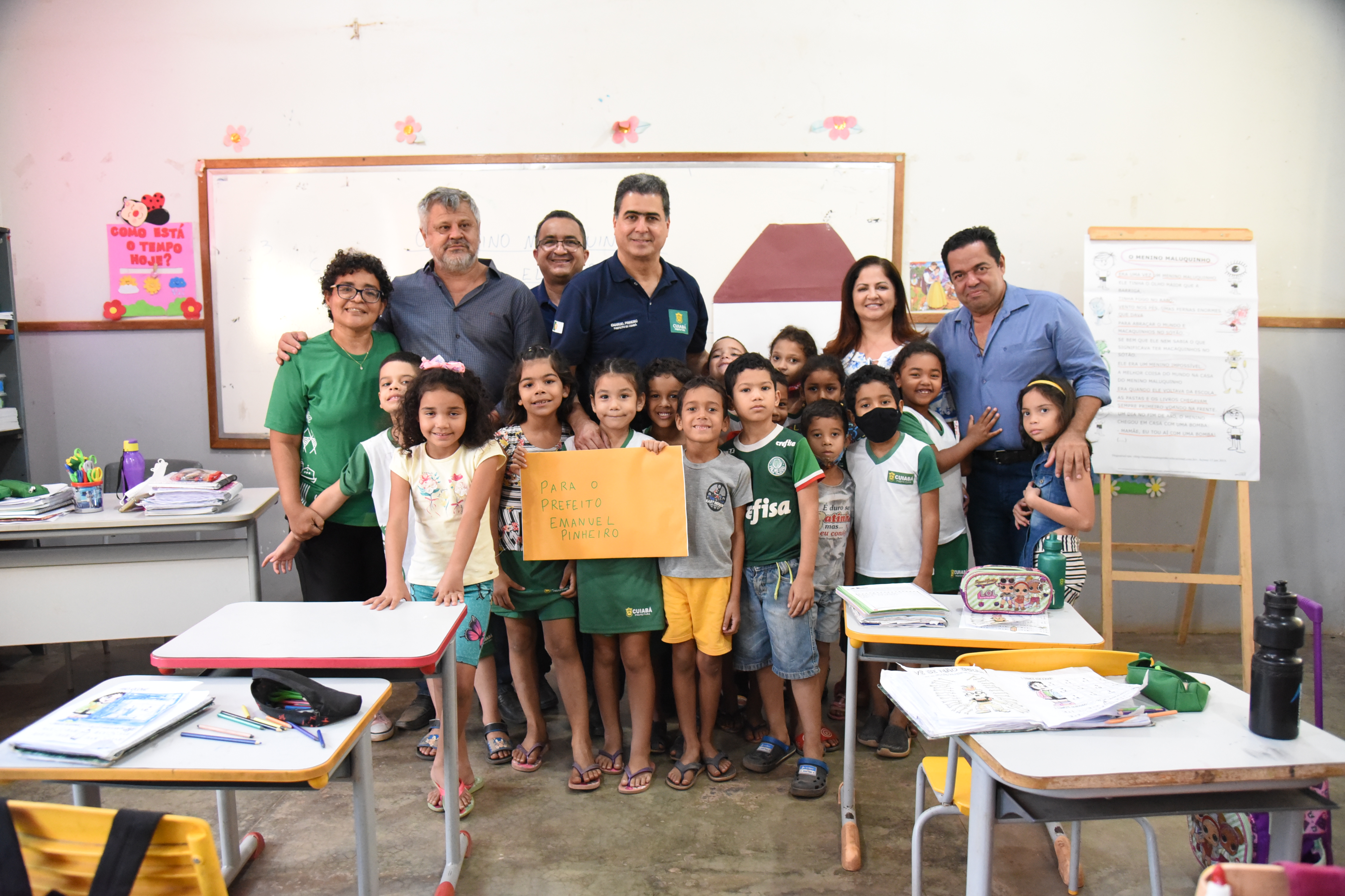 Integrando uma série de ações na região do Real Parque, o prefeito Emanuel Pinheiro realizou uma visita à Escola Municipal de Educação Básica - EMEB Profª Joana Dark da Silva na quinta-feira (26). Na ocasião, o gestor foi calorosamente recebido pelos alunos da unidade de ensino, que fizeram apresentações, entregaram cartinhas e até pediram autógrafos ao chefe do Executivo Municipal.