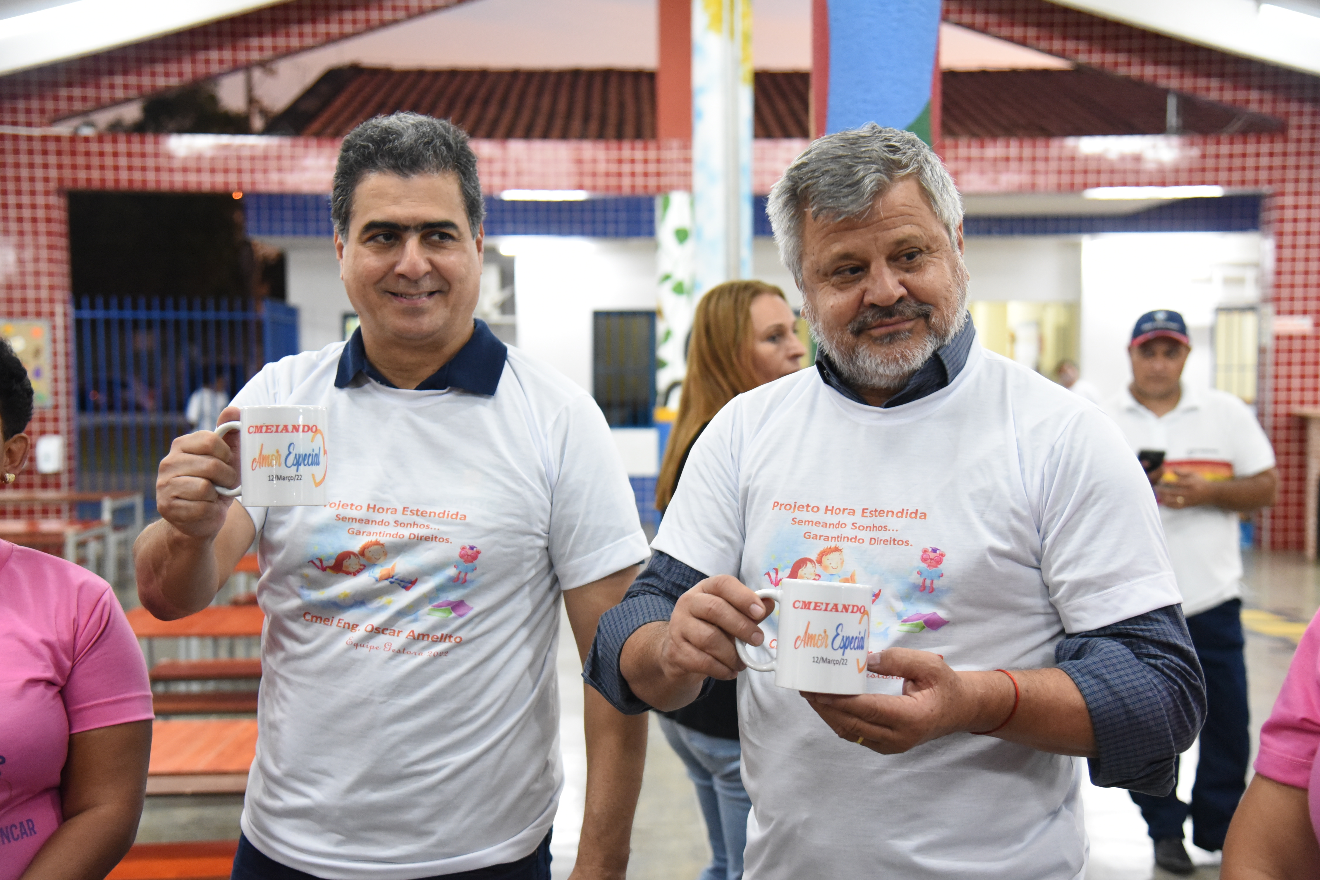 Em seguida, Pinheiro se dirigiu ao Centro Municipal de Educação Infantil (CMEI) Engenheiro Oscar Amélito, uma unidade referência pela implantação do programa Hora Estendida. Por meio dele, famílias com jornada de trabalho incompatíveis com o encerramento das atividades educacionais puderam deixar seus filhos a por mais tempo na escola.